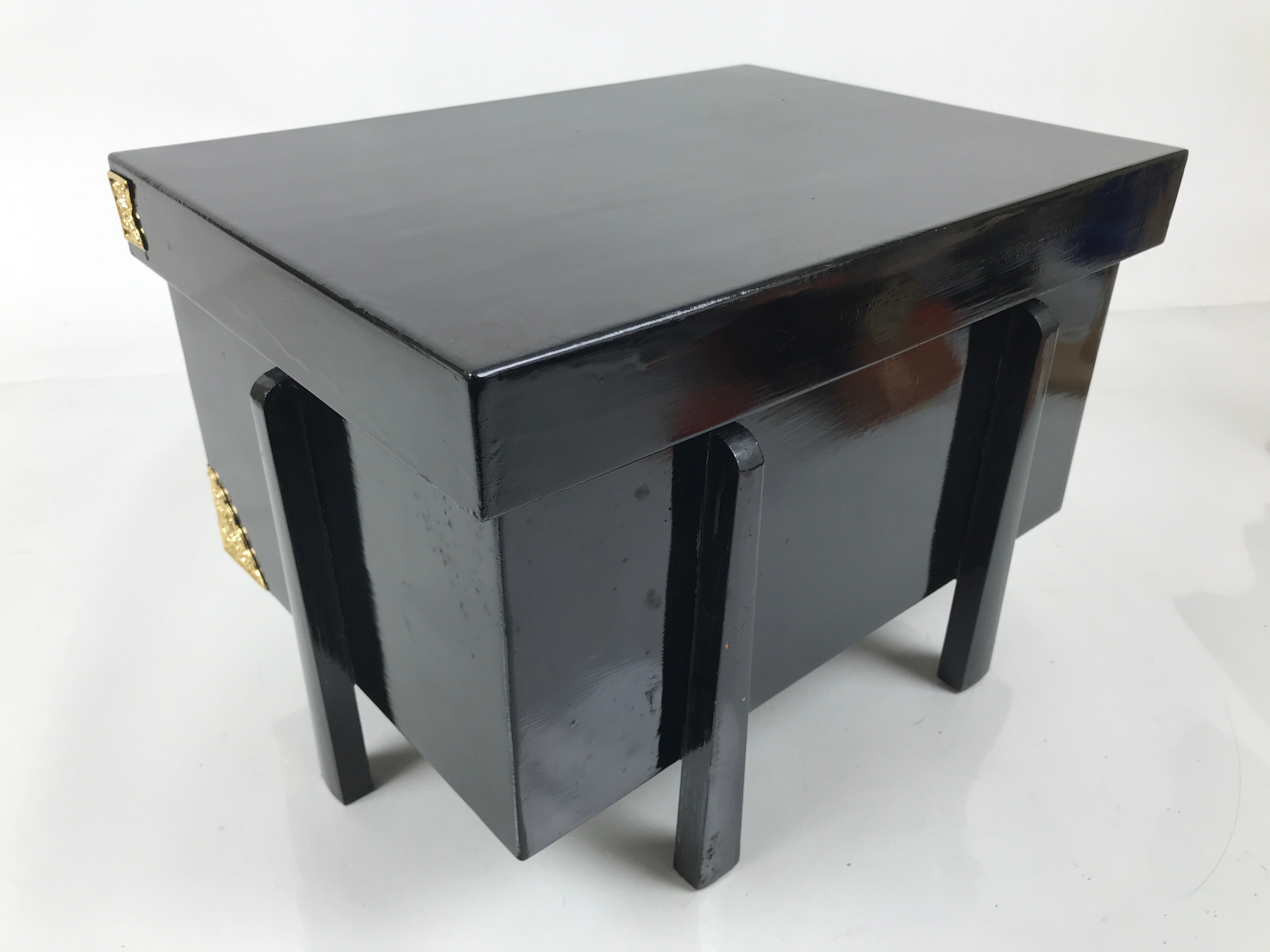 • Good condition considering age. Some light scratches on black box. Black lacquer cracking around box legs. Paper box lid torn on corners. Wear and tear due to age. Please see the photos carefully.