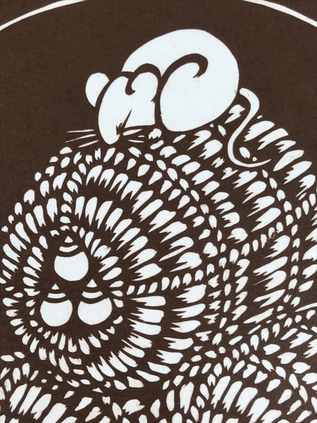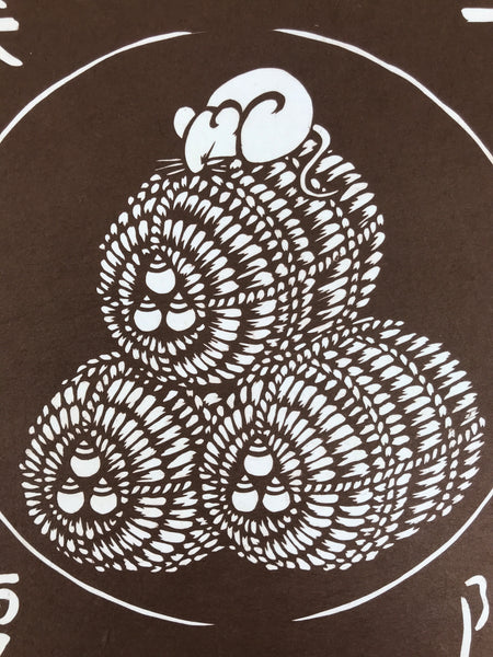 Japanese Katagami Shikishi Art Board Vtg Mouse Nezumi Zodiac Rice Barrel A720