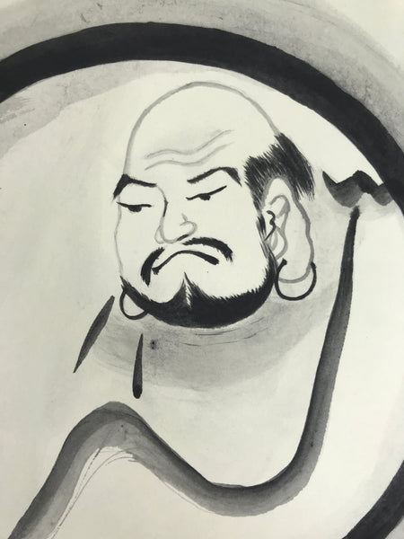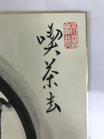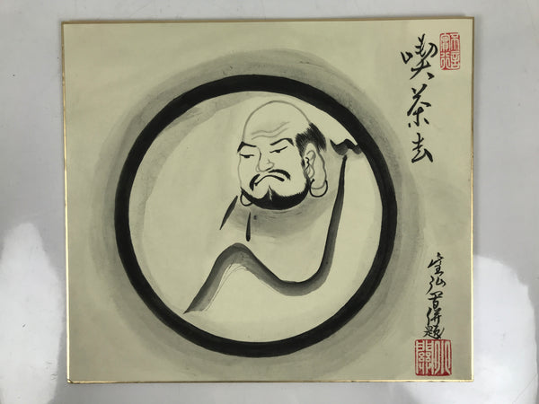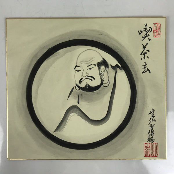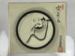 Japanese Shikishi Art Board Painting Vtg Daruma Portrait Zen Buddhist Black A713