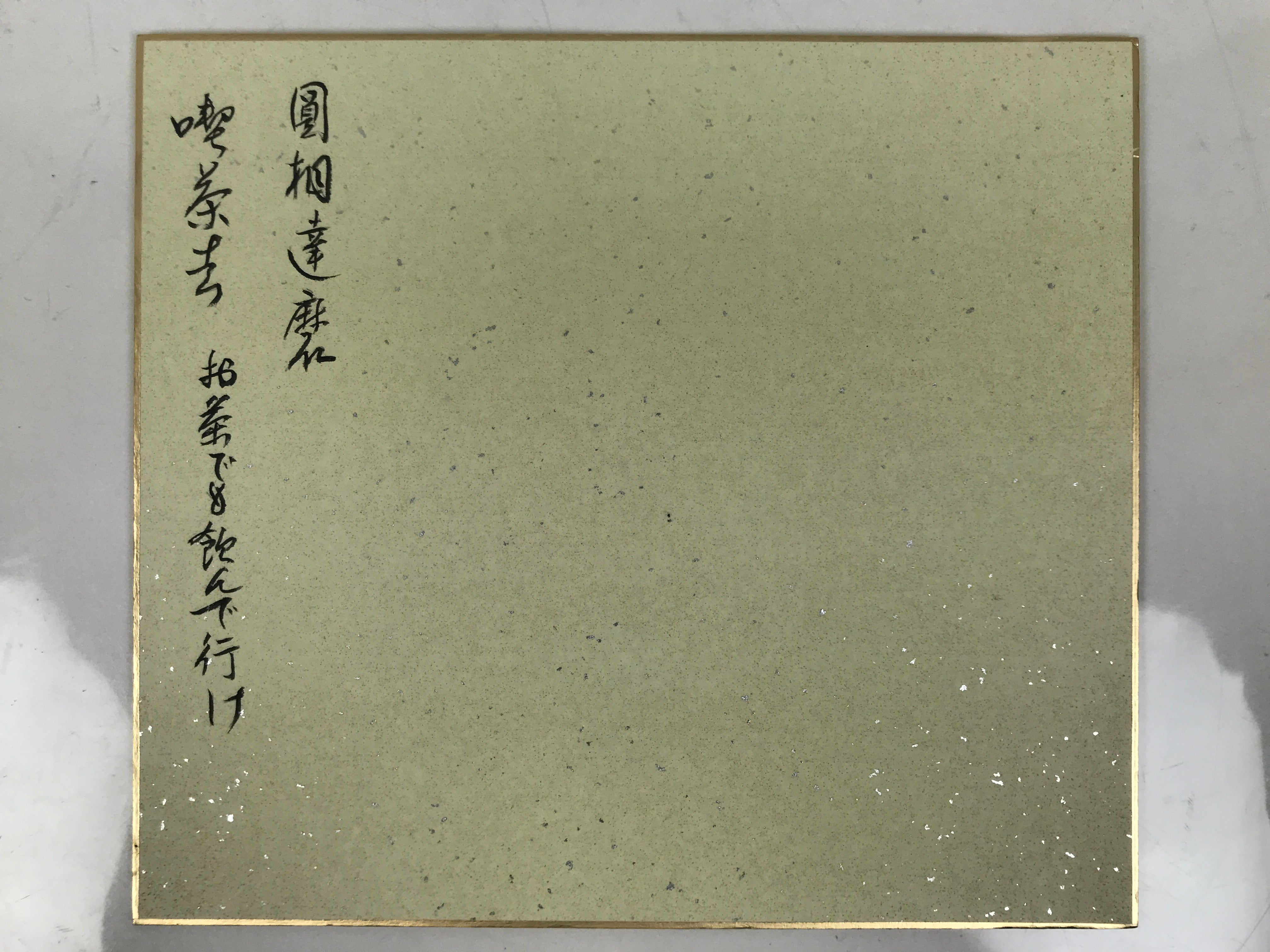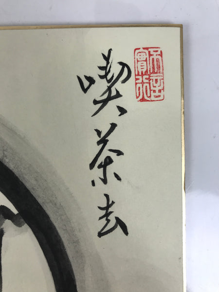 • Writing on back: 圓相 enso painting of circle in the Zen style, 達磨 daruma, 喫茶去 kissako, お茶でも飲んで行け Would you like to have some tea?