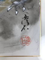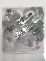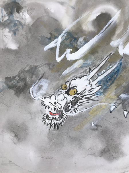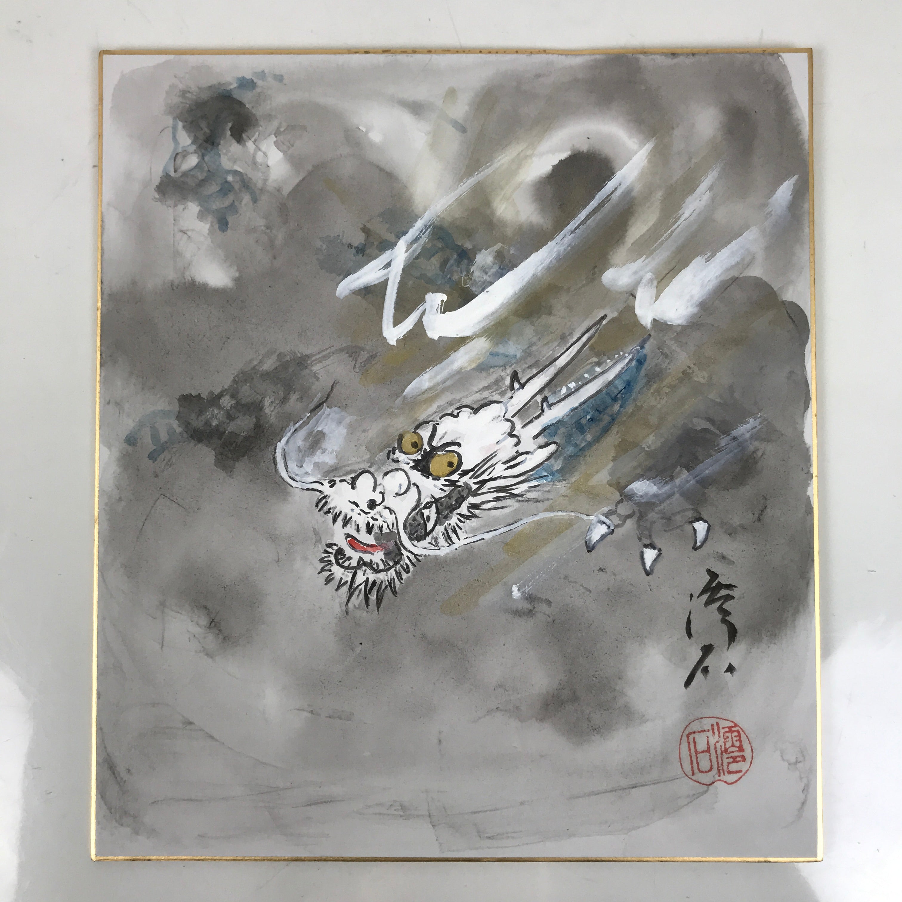 Japanese Shikishi Art Board Painting Vtg Dragon Head Zodiac Cloud Gray A715