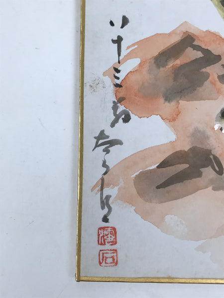Japanese Shikishi Art Board Painting Vtg Tiger Zodiac Mountain Yellow Red A718