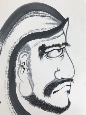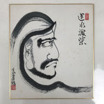 Japanese Shikishi Art Board Painting Vtg Daruma Profile Buddhist Black A722