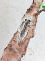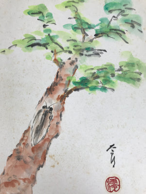 Japanese Shikishi Art Board Painting Vtg Pine Tree Cicada Summer Green A726