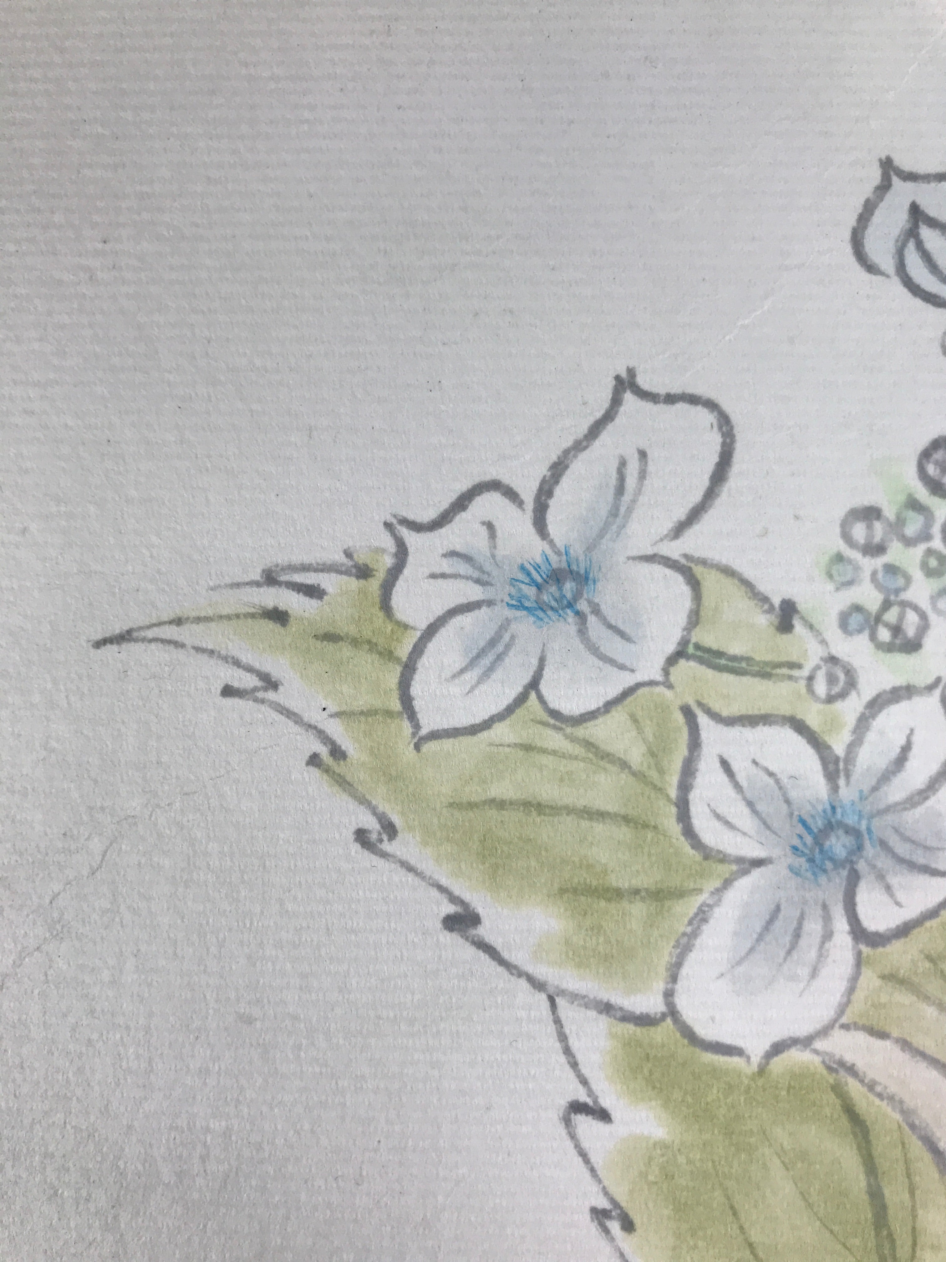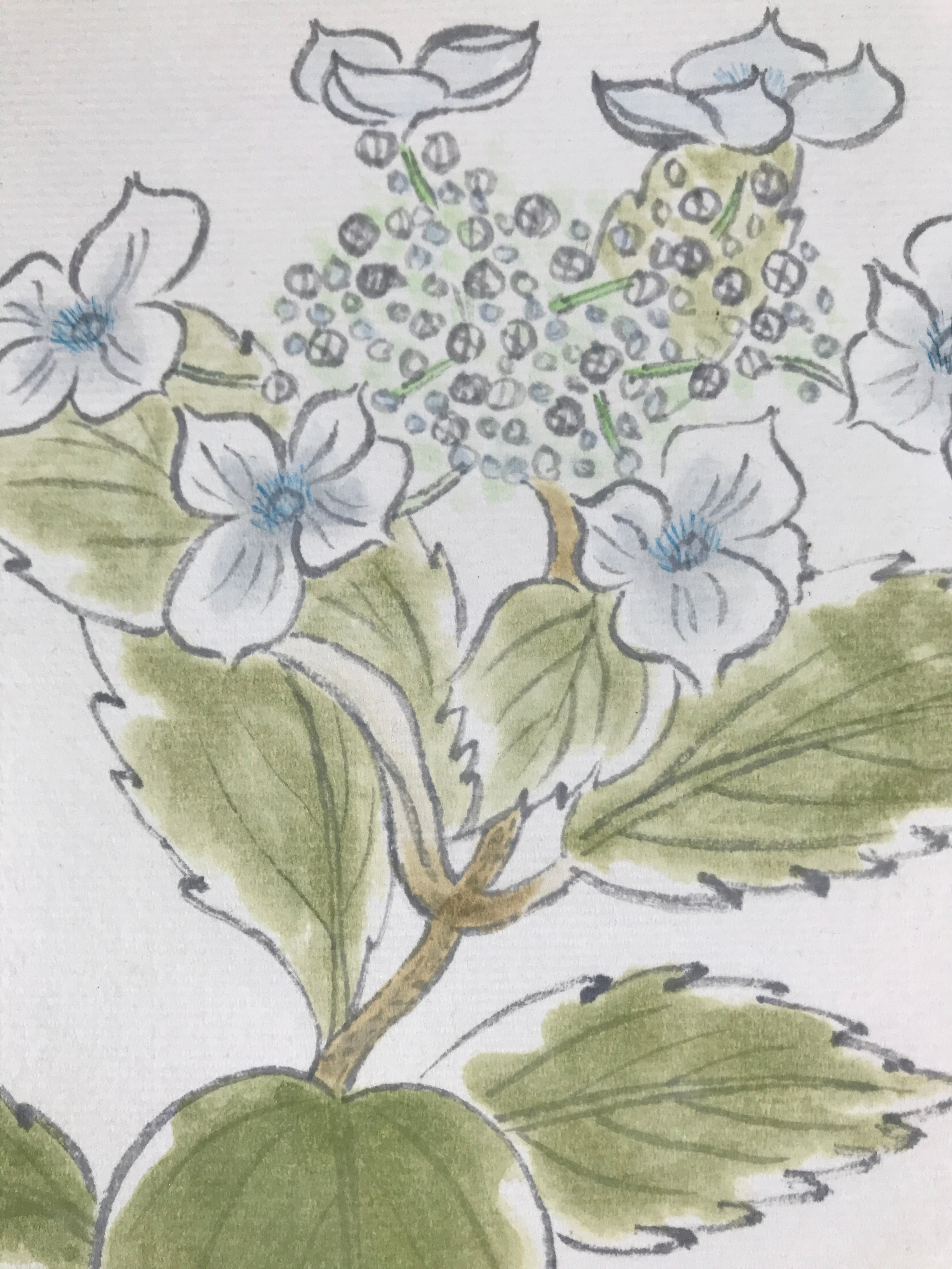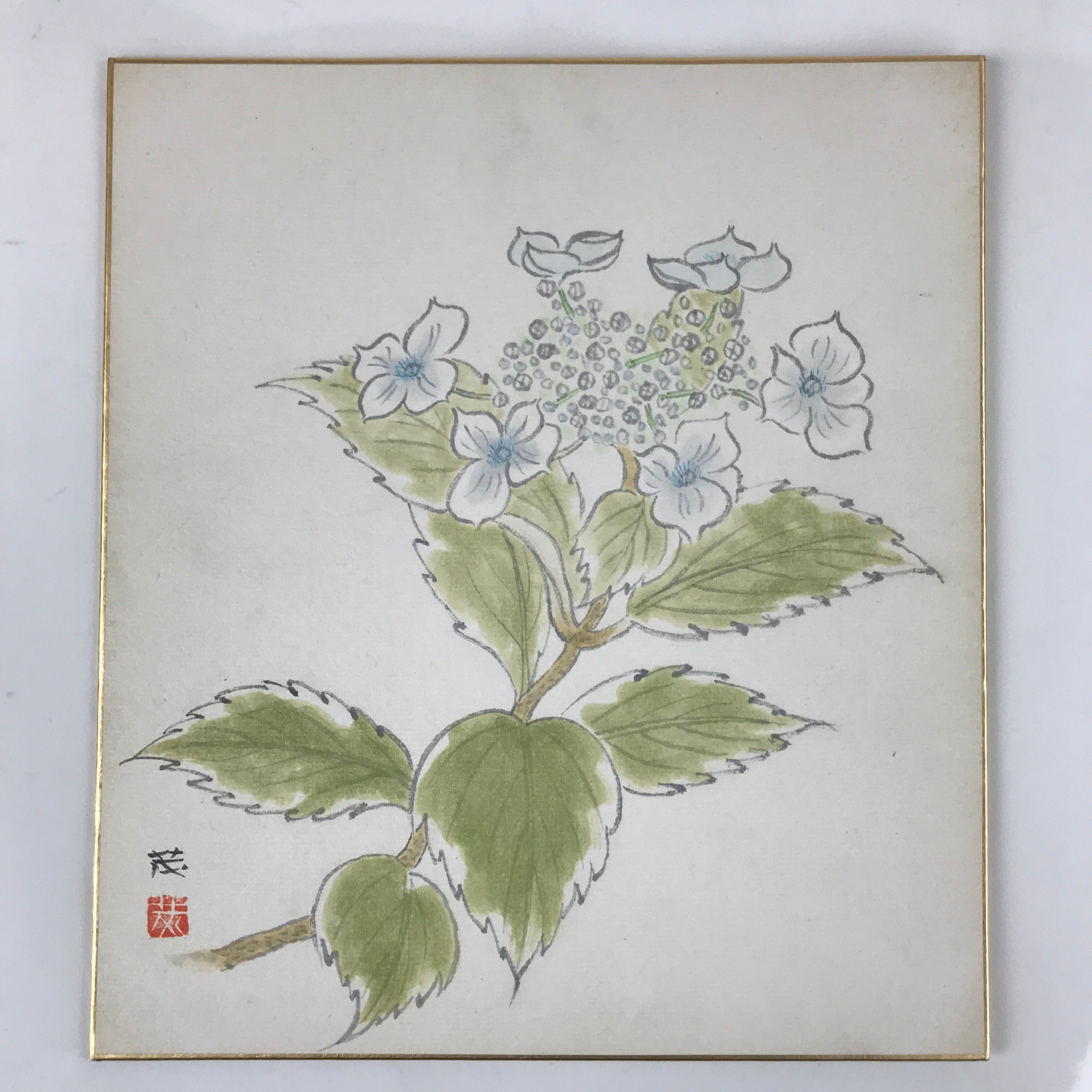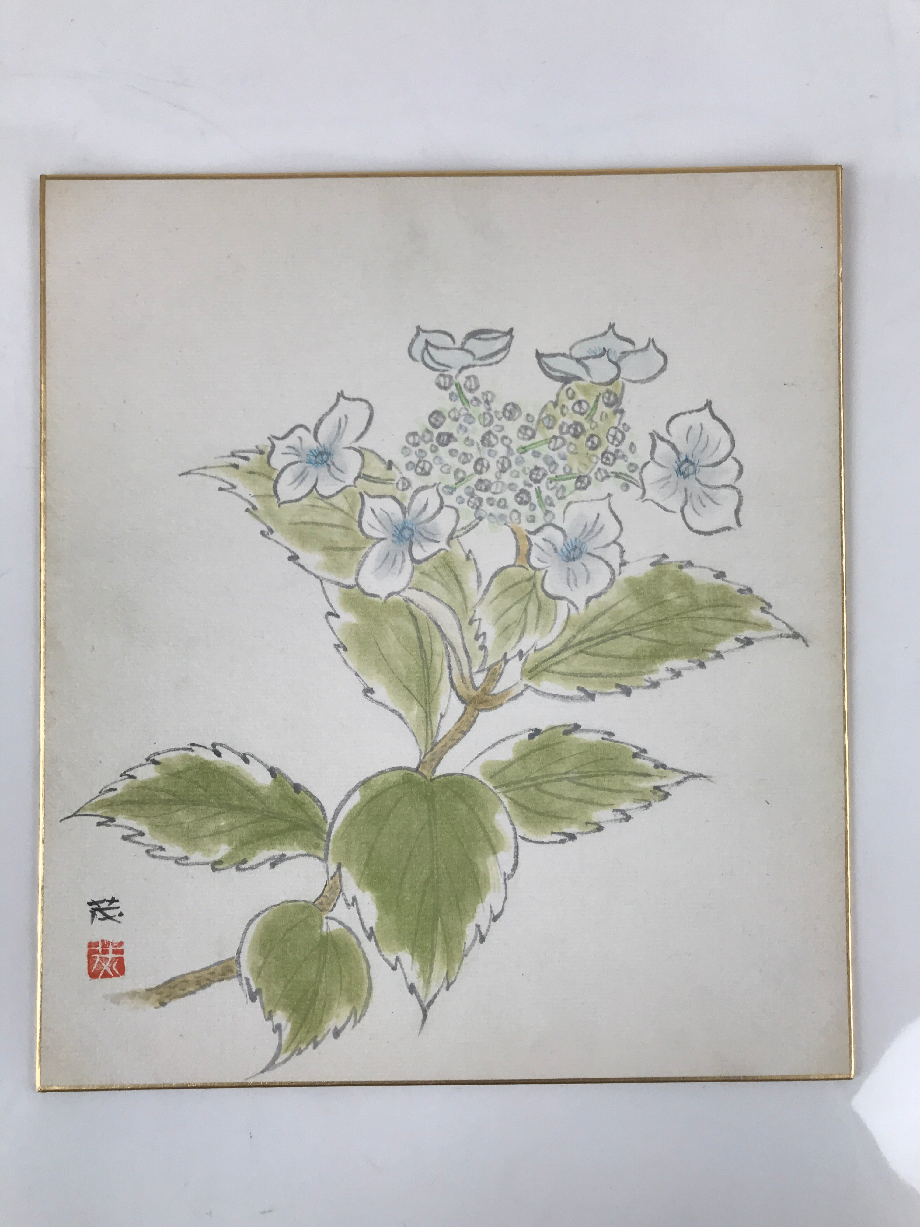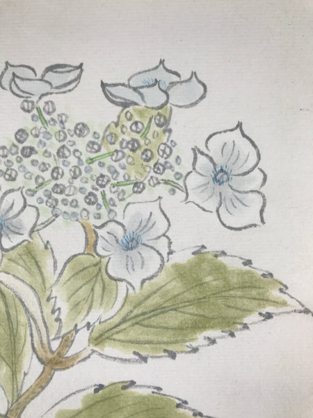 Japanese Shikishi Art Board Painting Vtg Blooming Blue Hydrangea Ajisai A658