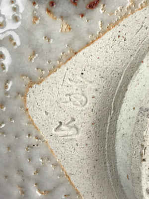 This is a Japanese vintage green tea bowl, Matcha Chawan. This is a Shino ware bowl. It is a white glaze applied over the design drawn in brown. Green tea bowls are not only for drinking tea these are also for appreciating tea bowls as works of art. These have various sizes and styles. Shallow bowls are used in summer which is for the tea to cool quickly, and deep bowls are used in winter to keep the tea hot for a longer time.