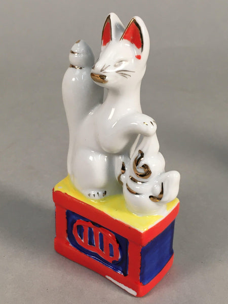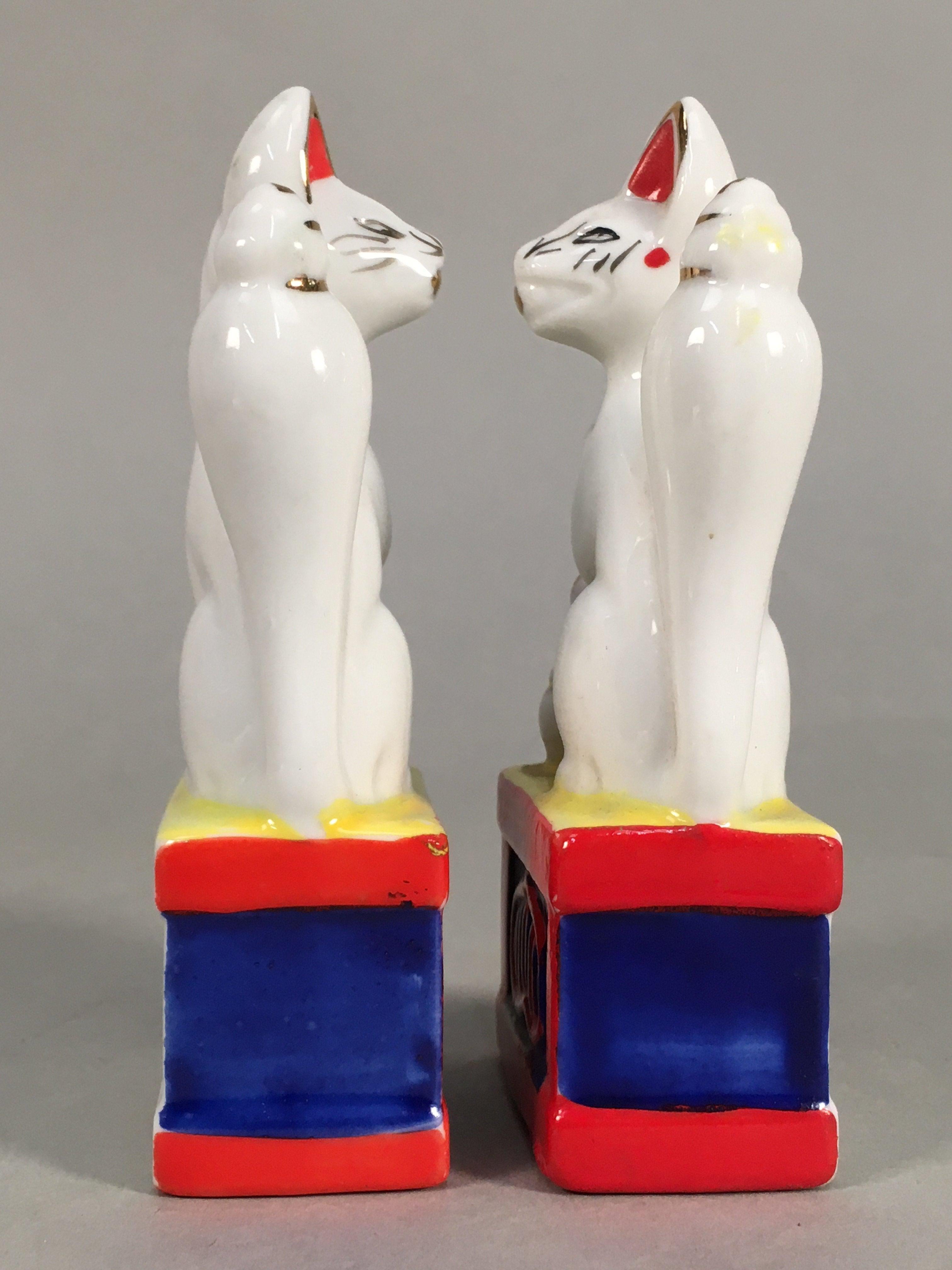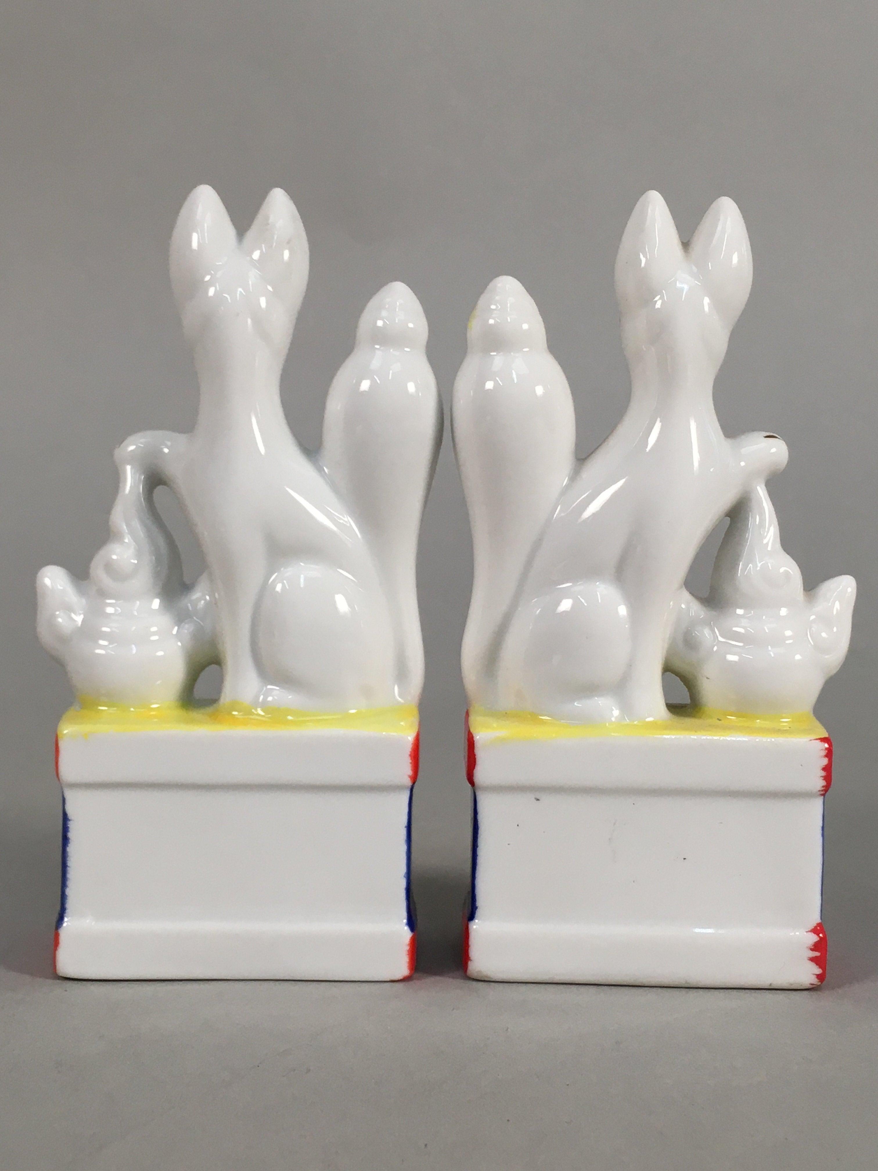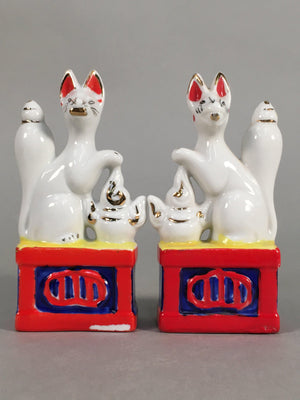 Vtg Japanese Shinto Altar Fitting Fox Figurine Pair Inari Shrine