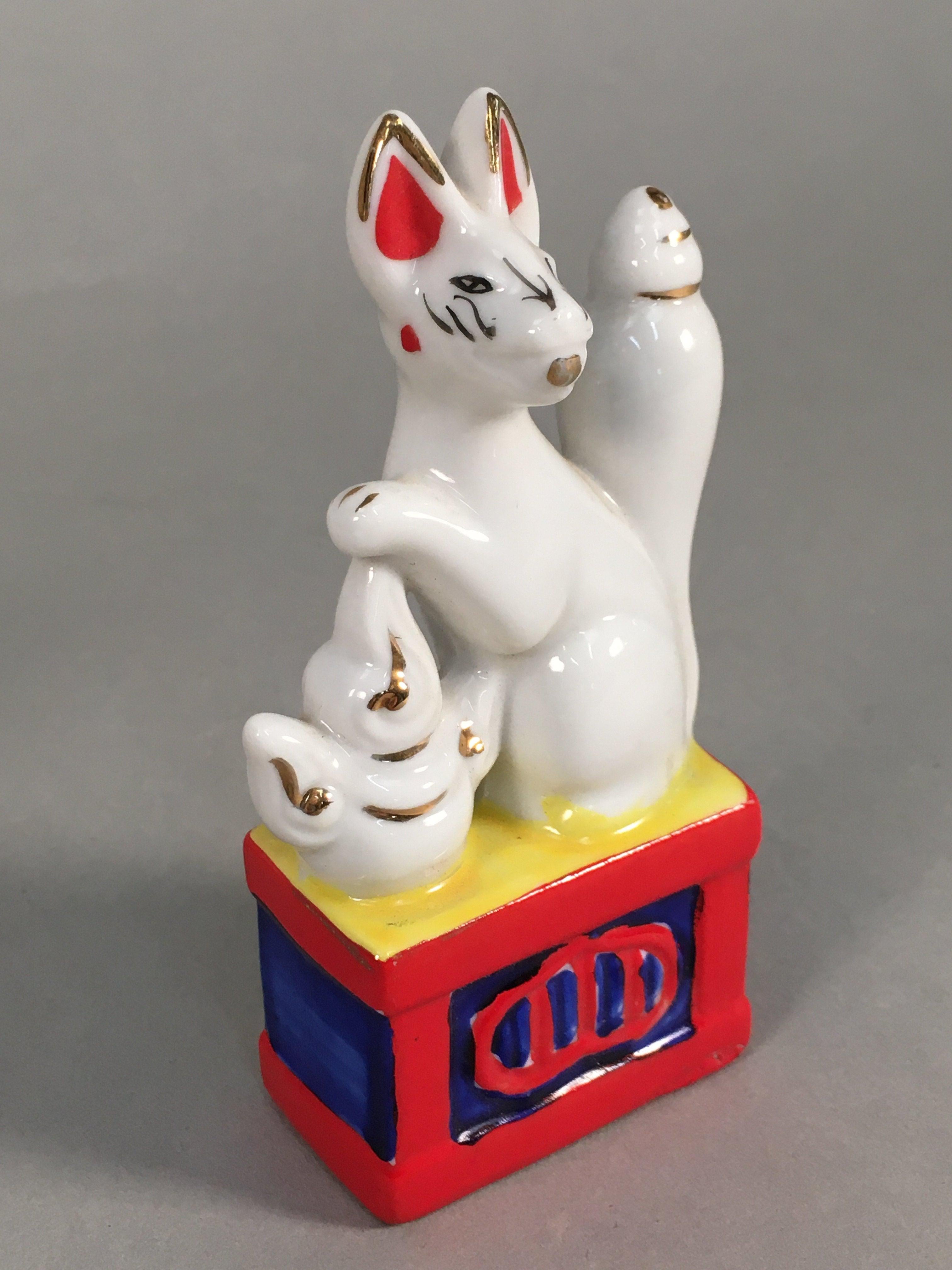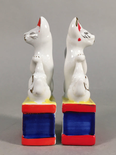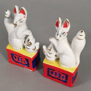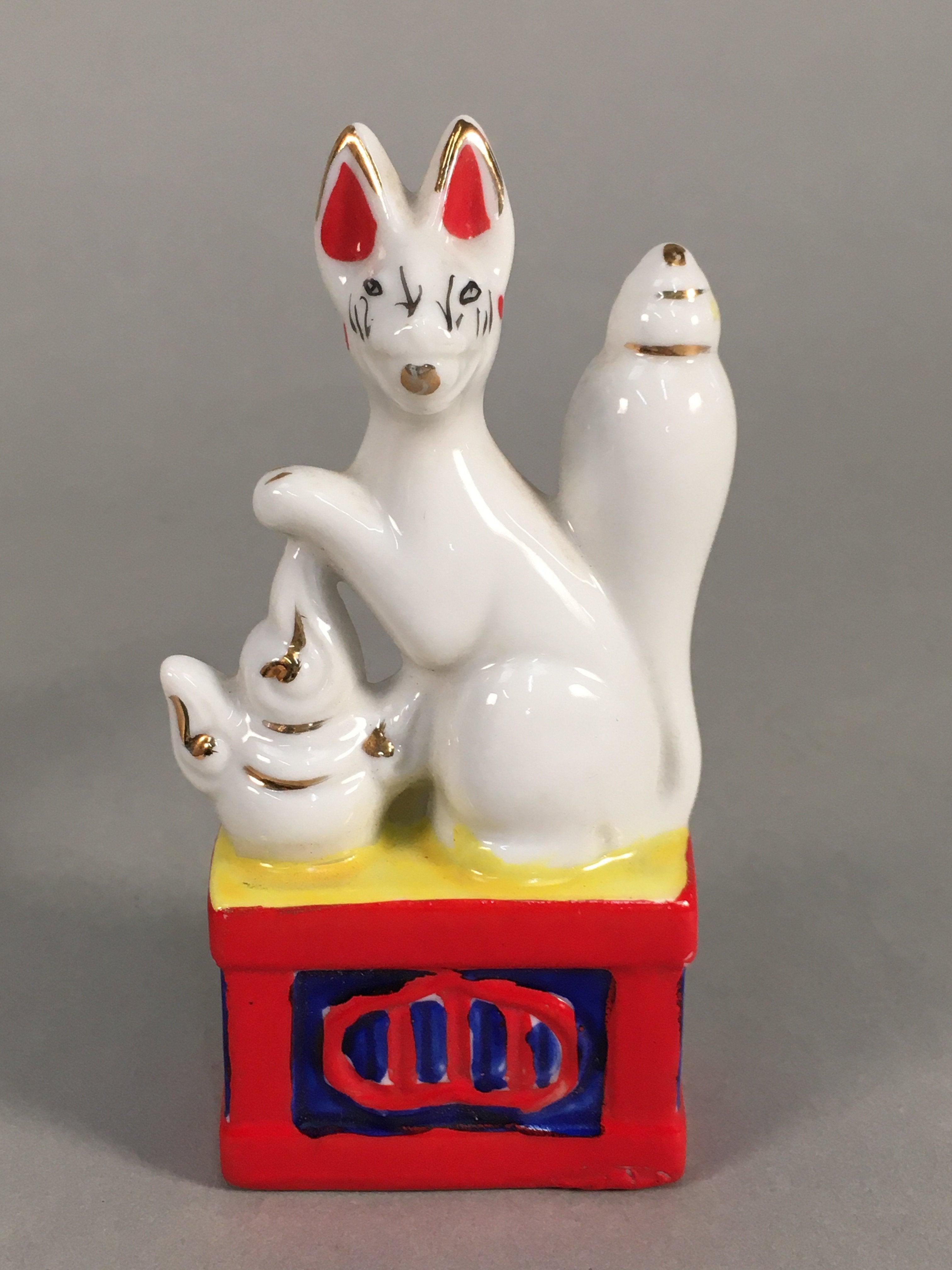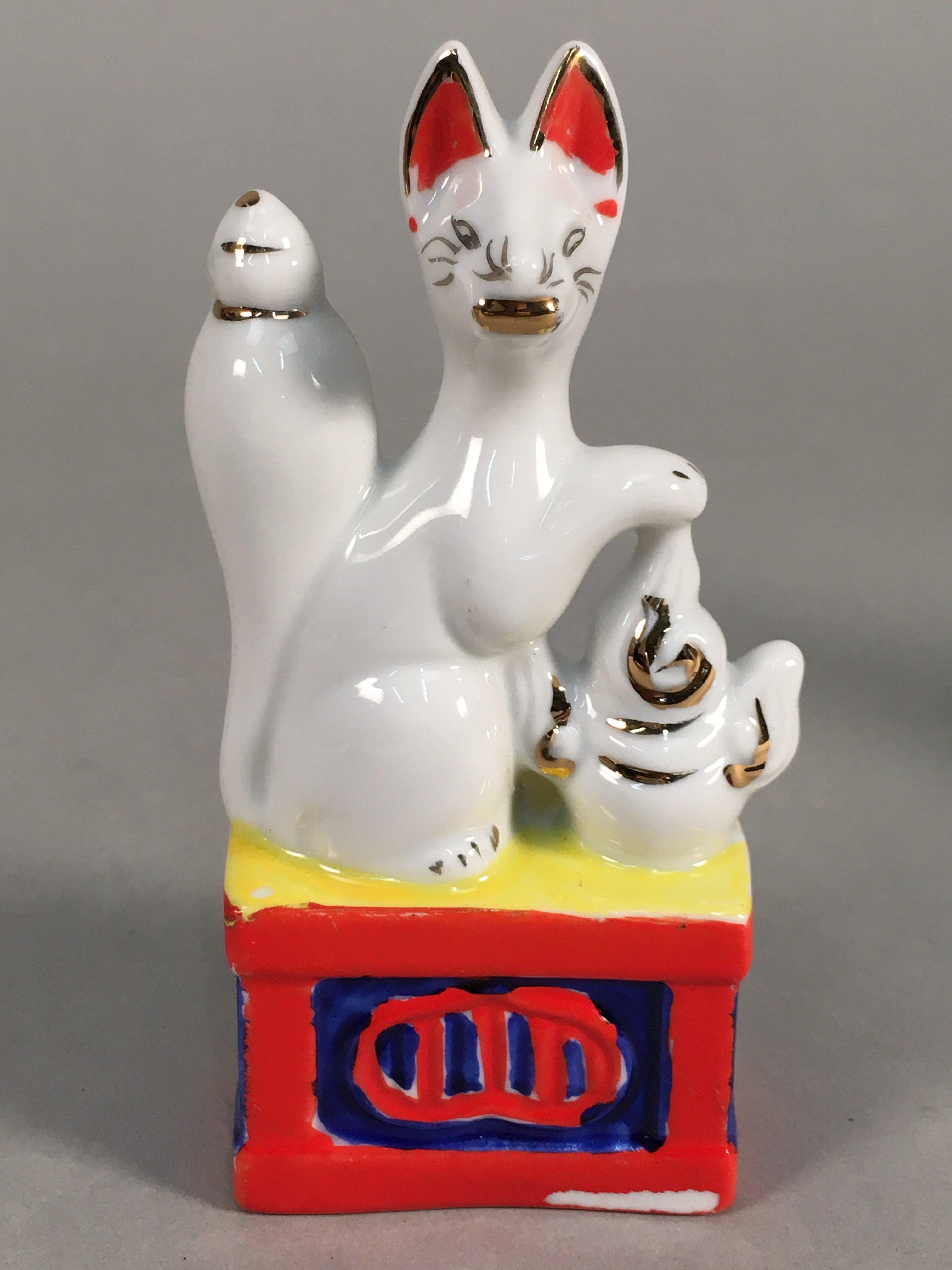 Vtg Japanese Shinto Altar Fitting Fox Figurine Pair Inari Shrine