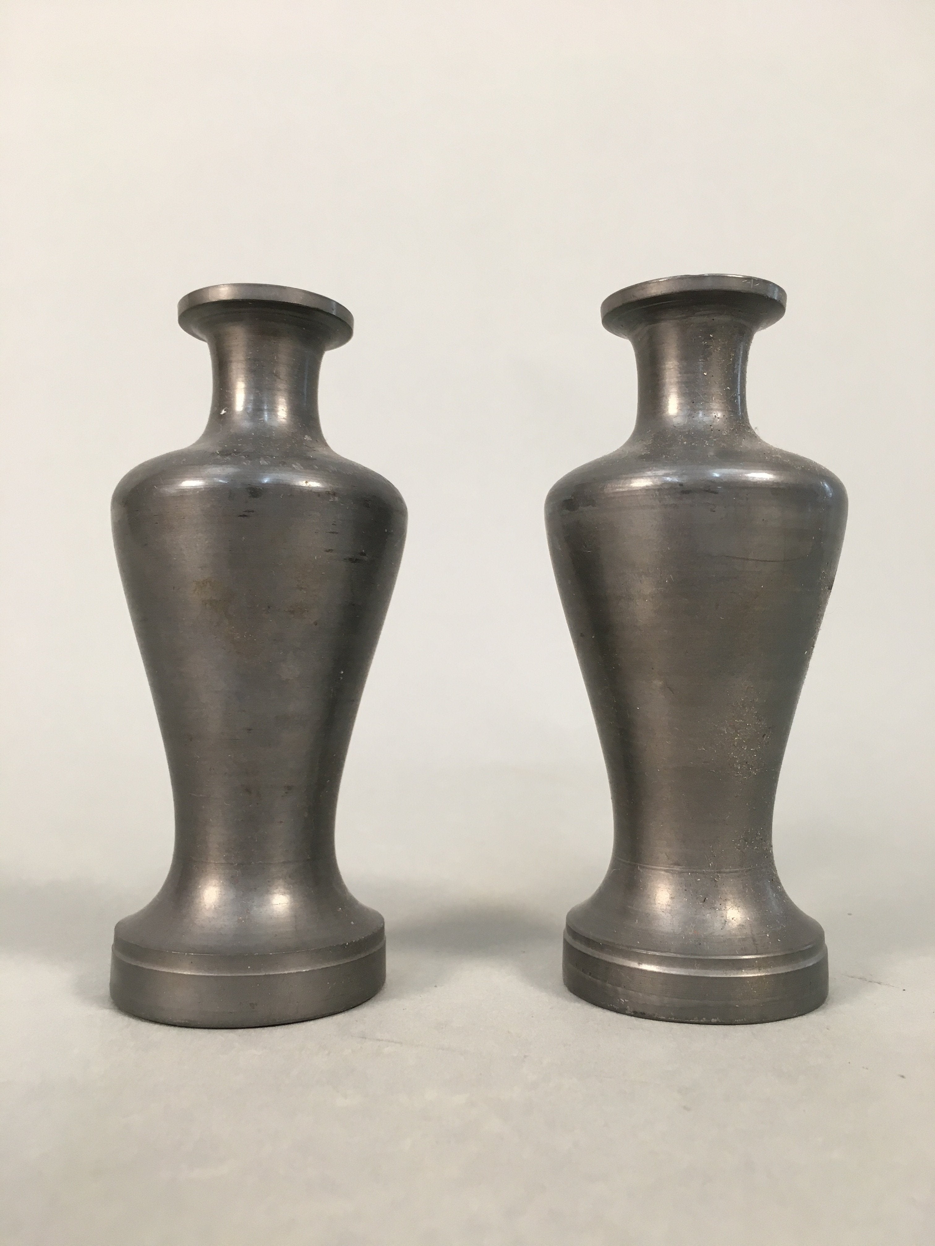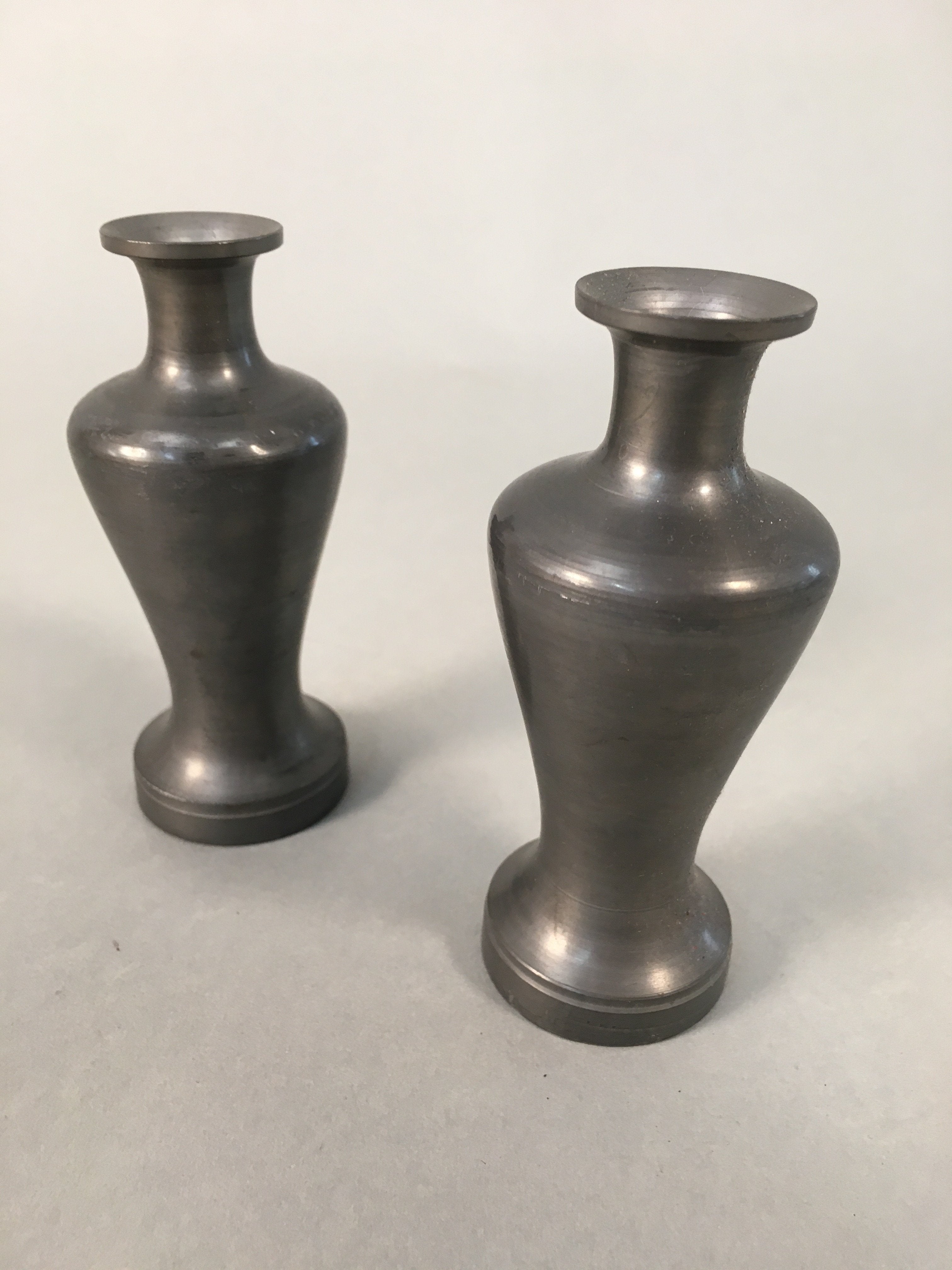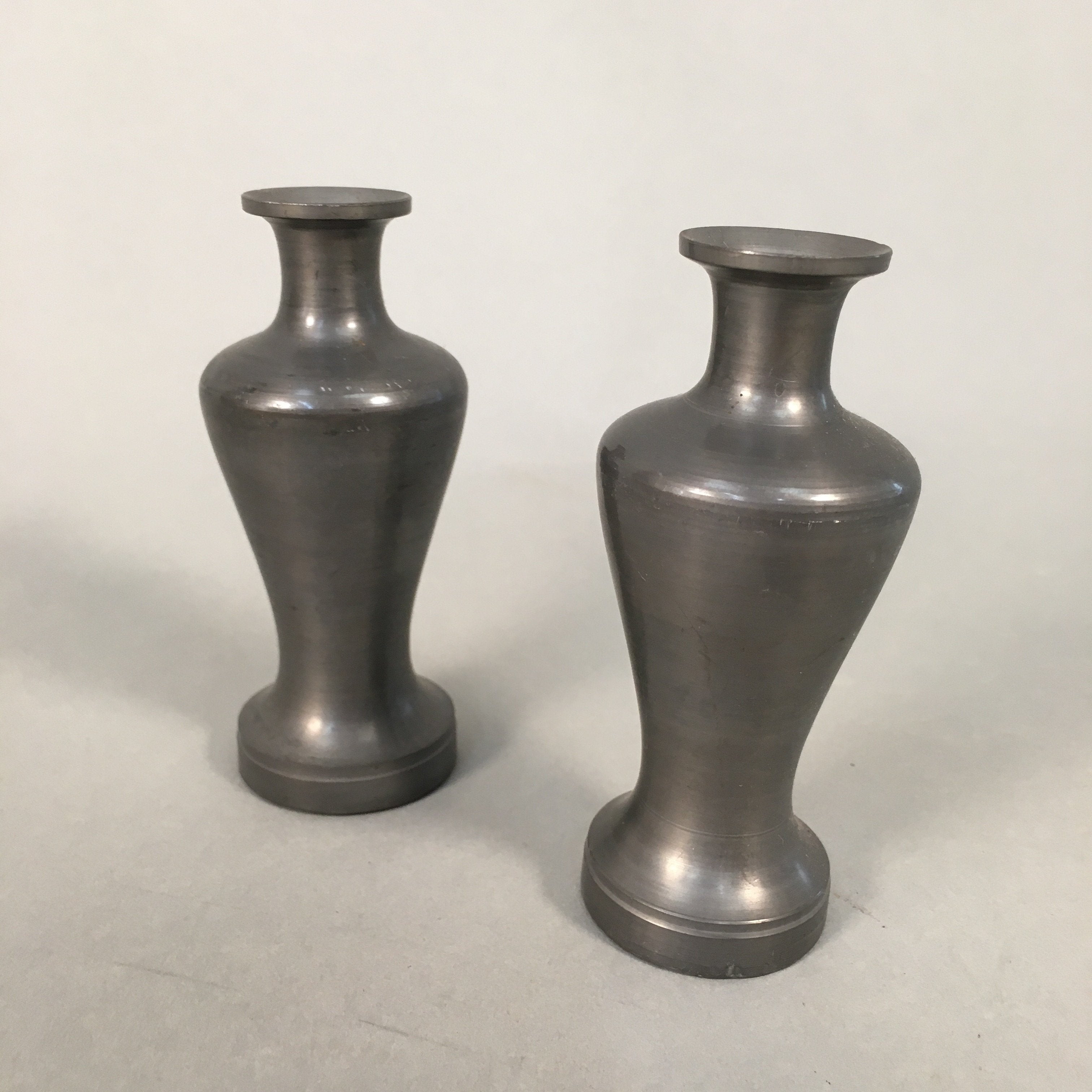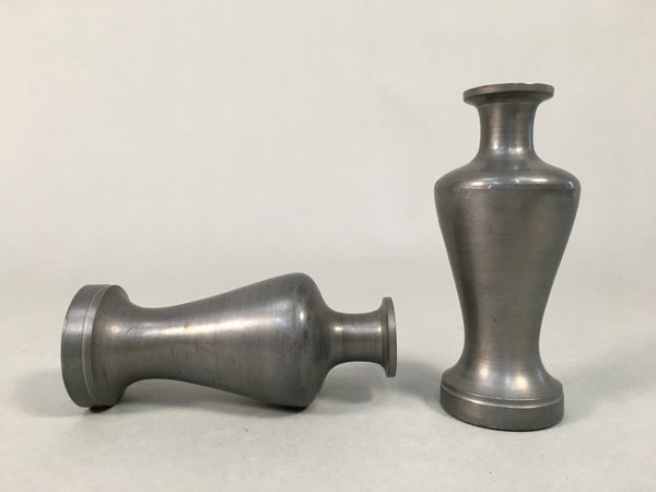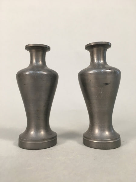 Japanese Shinto Sake Bottle Pair Vtg Metal Heishi Kamidana Tokkuri BU327