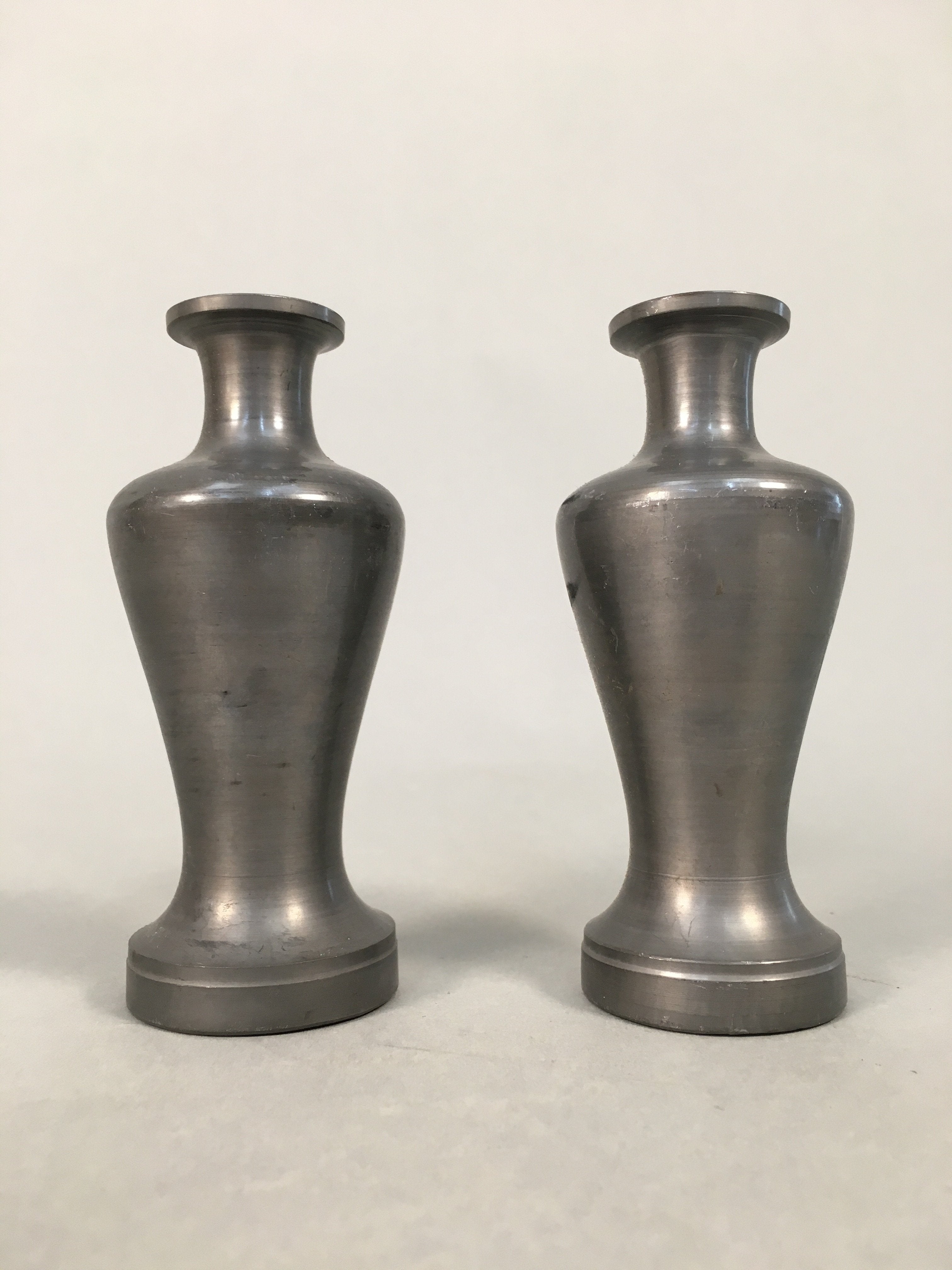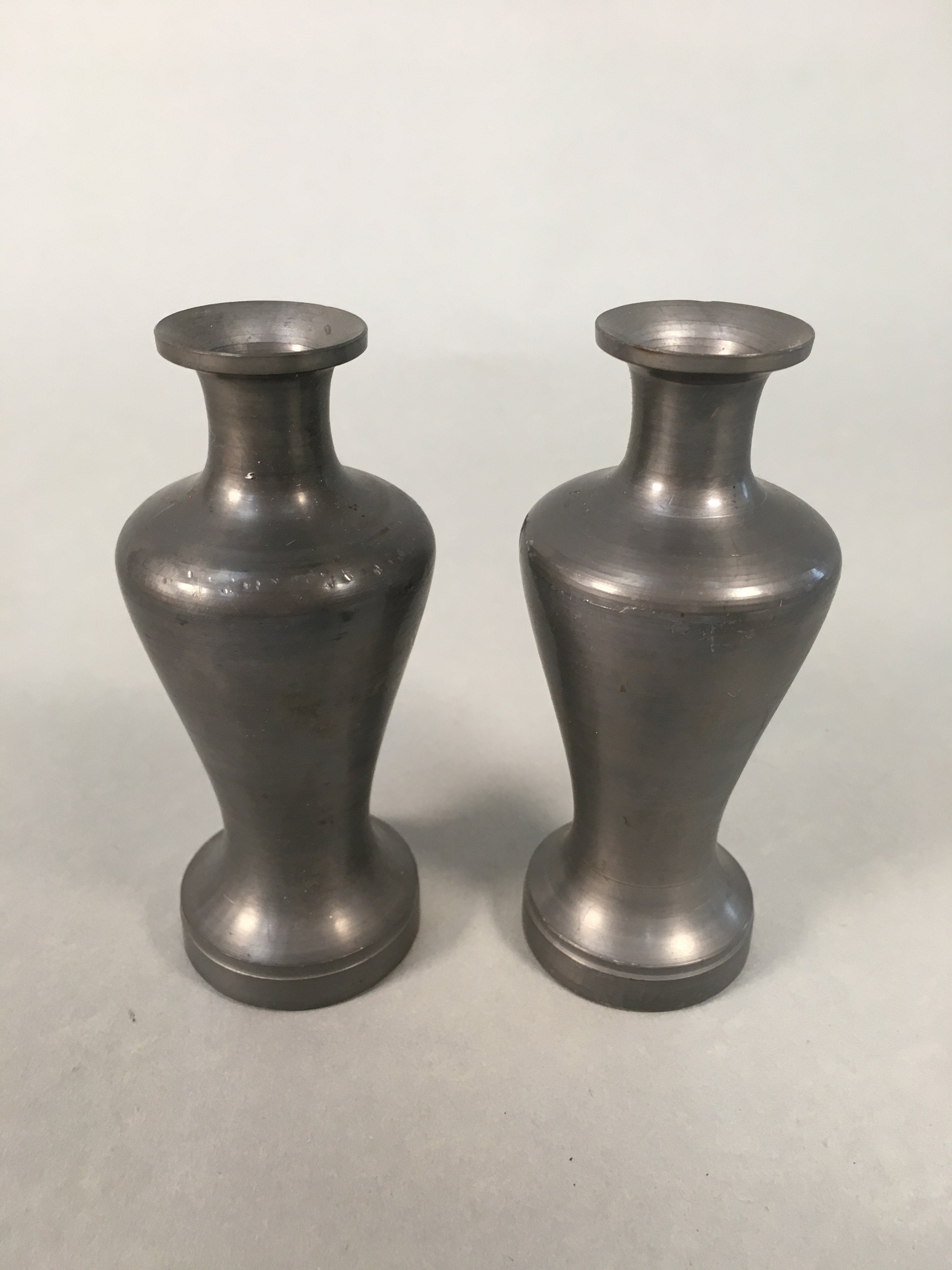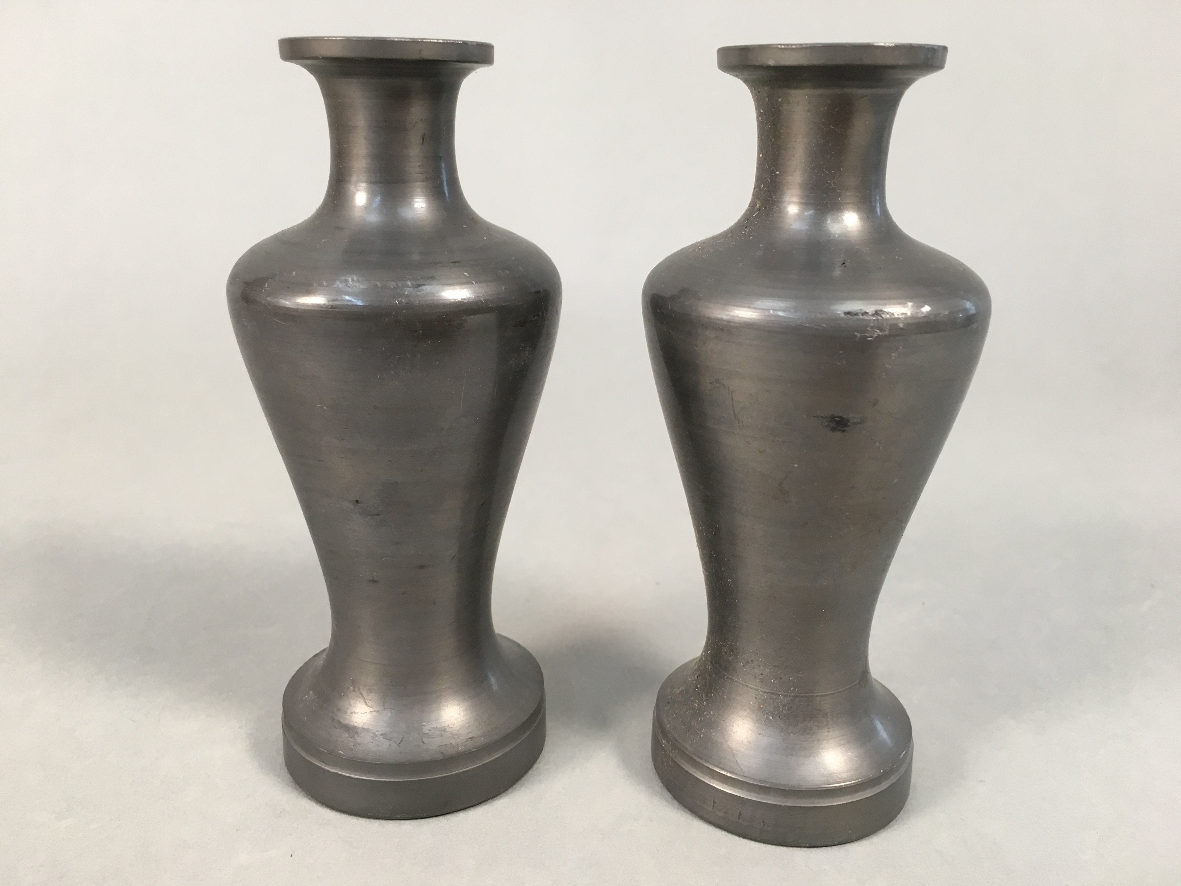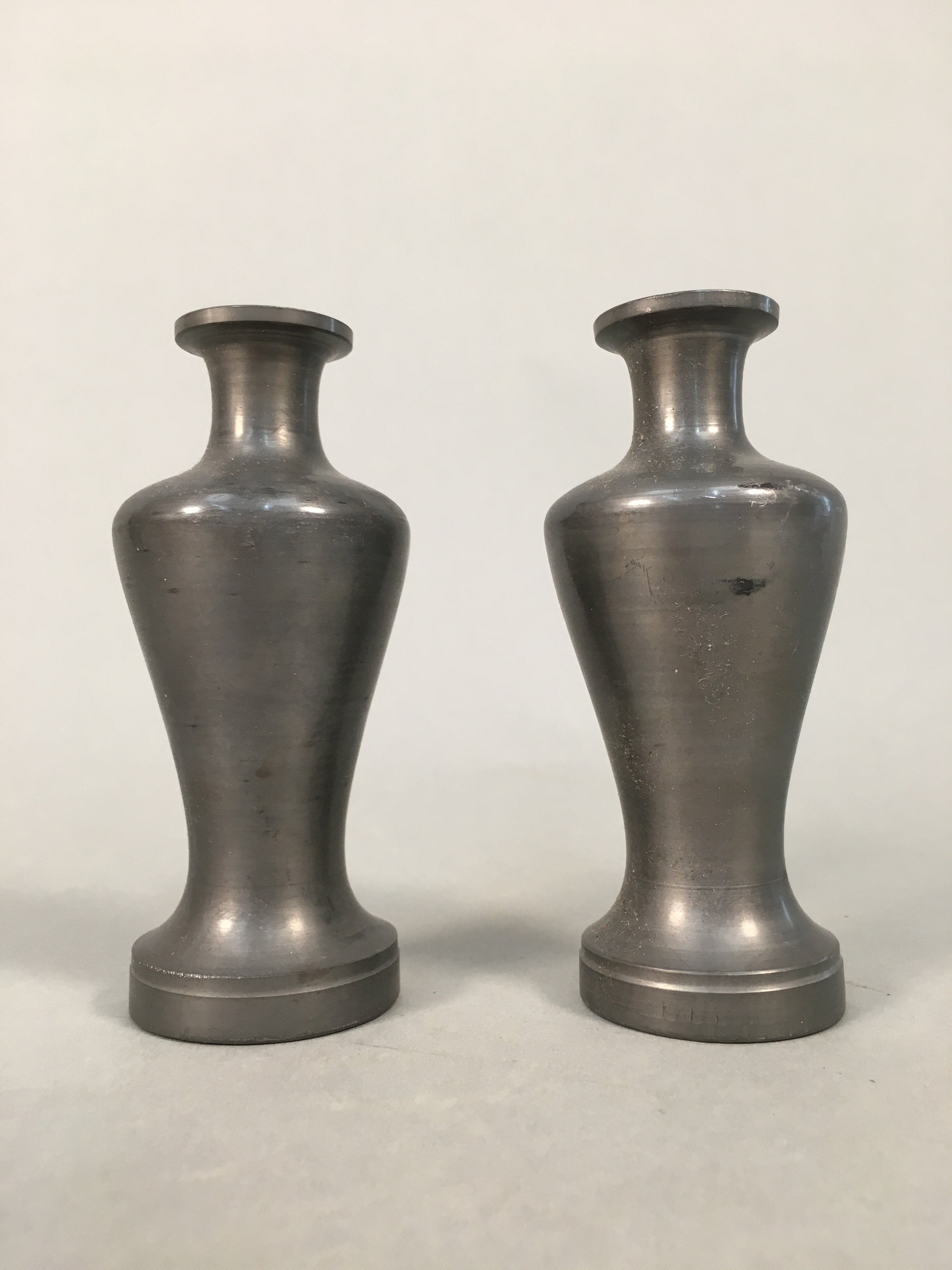 Japanese Shinto Sake Bottle Pair Vtg Metal Heishi Kamidana Tokkuri BU327