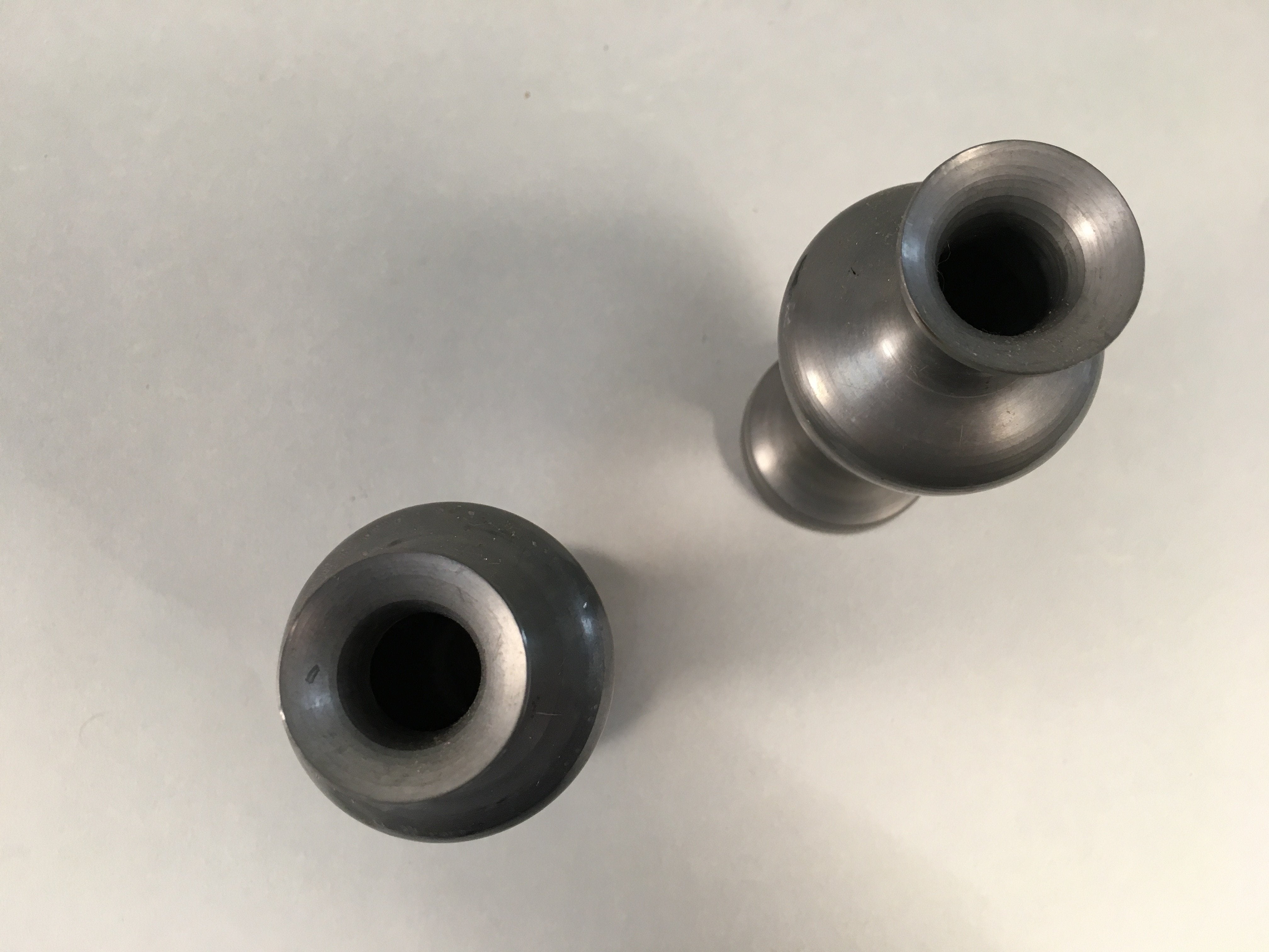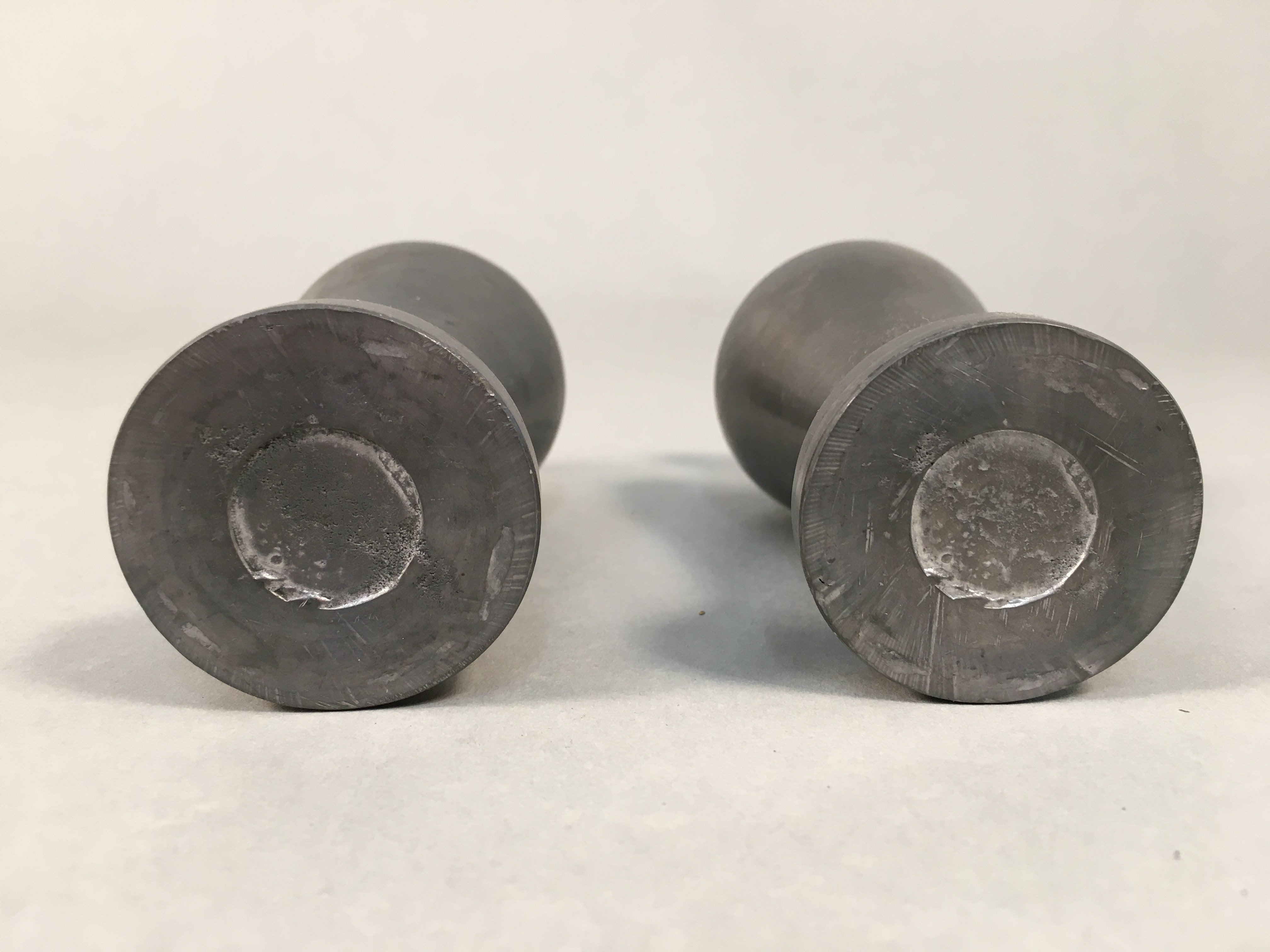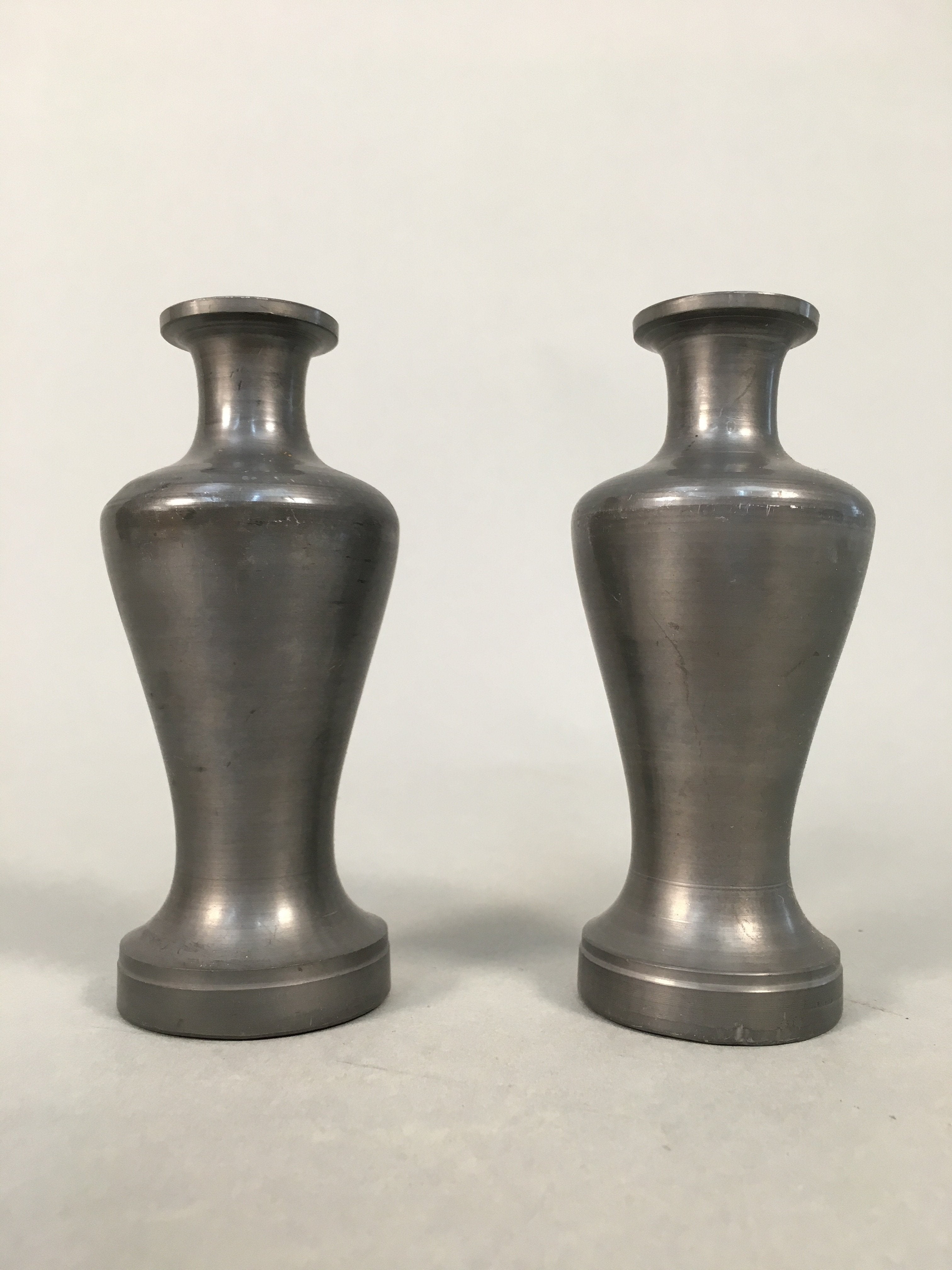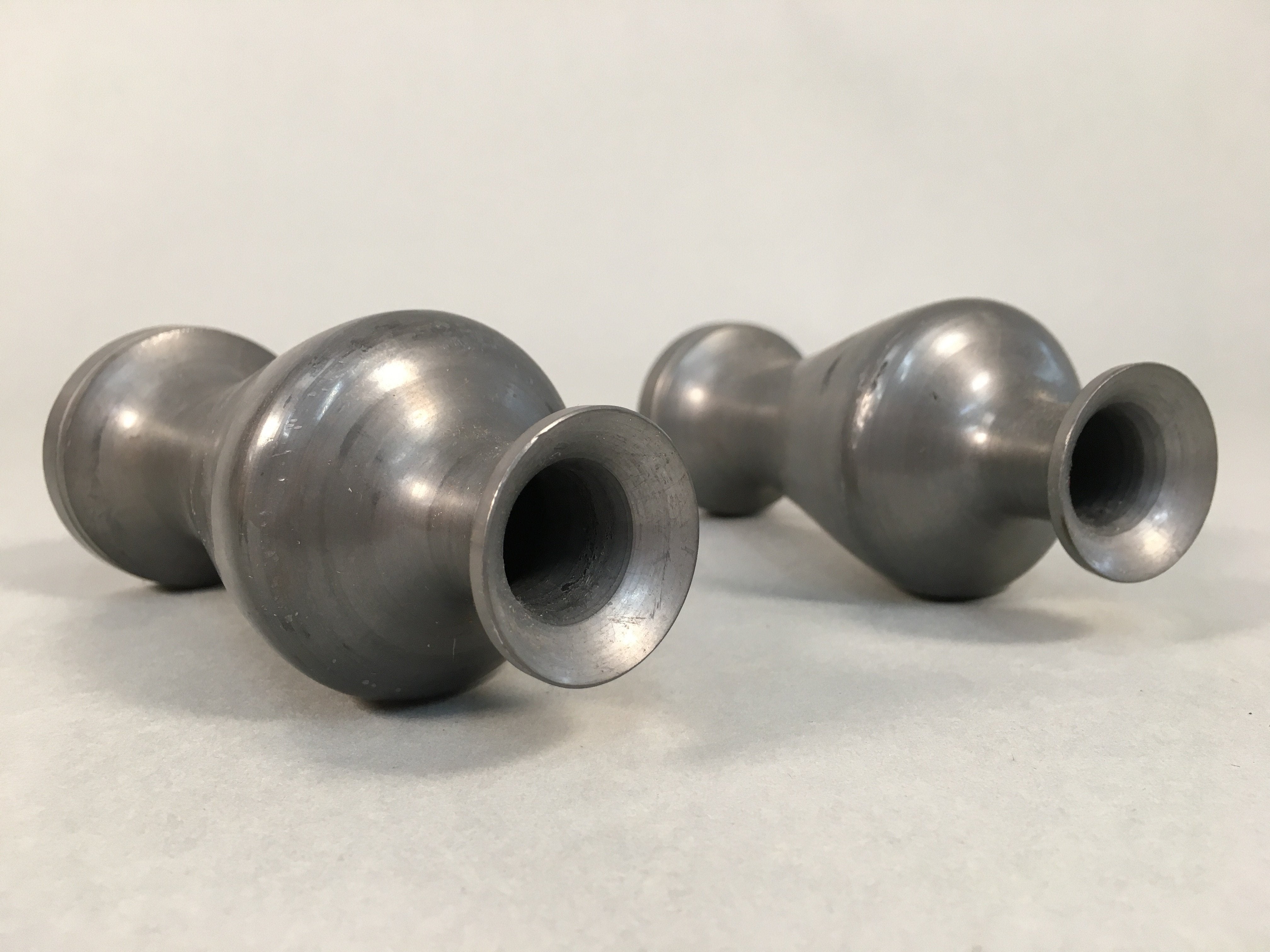 Japanese Shinto Sake Bottle Pair Vtg Metal Heishi Kamidana Tokkuri BU327