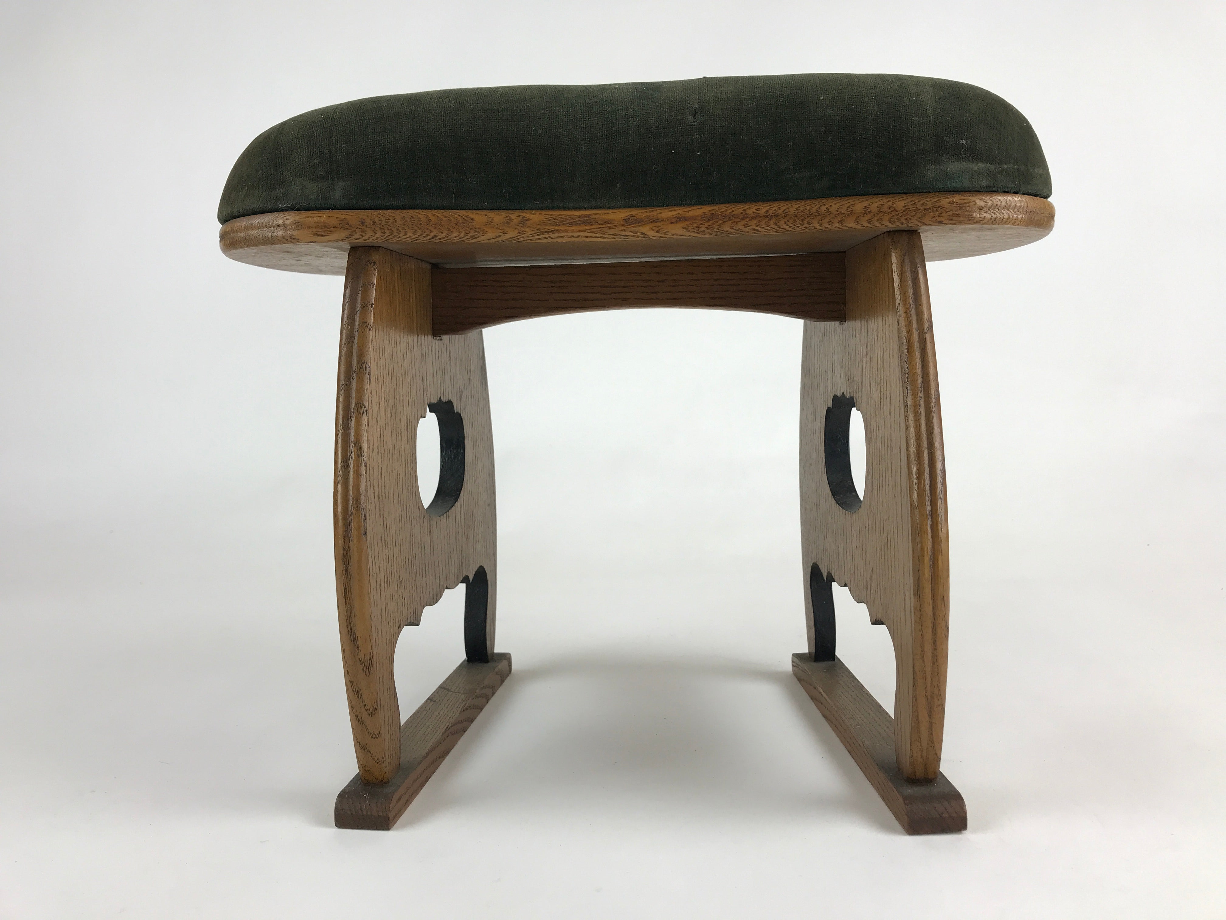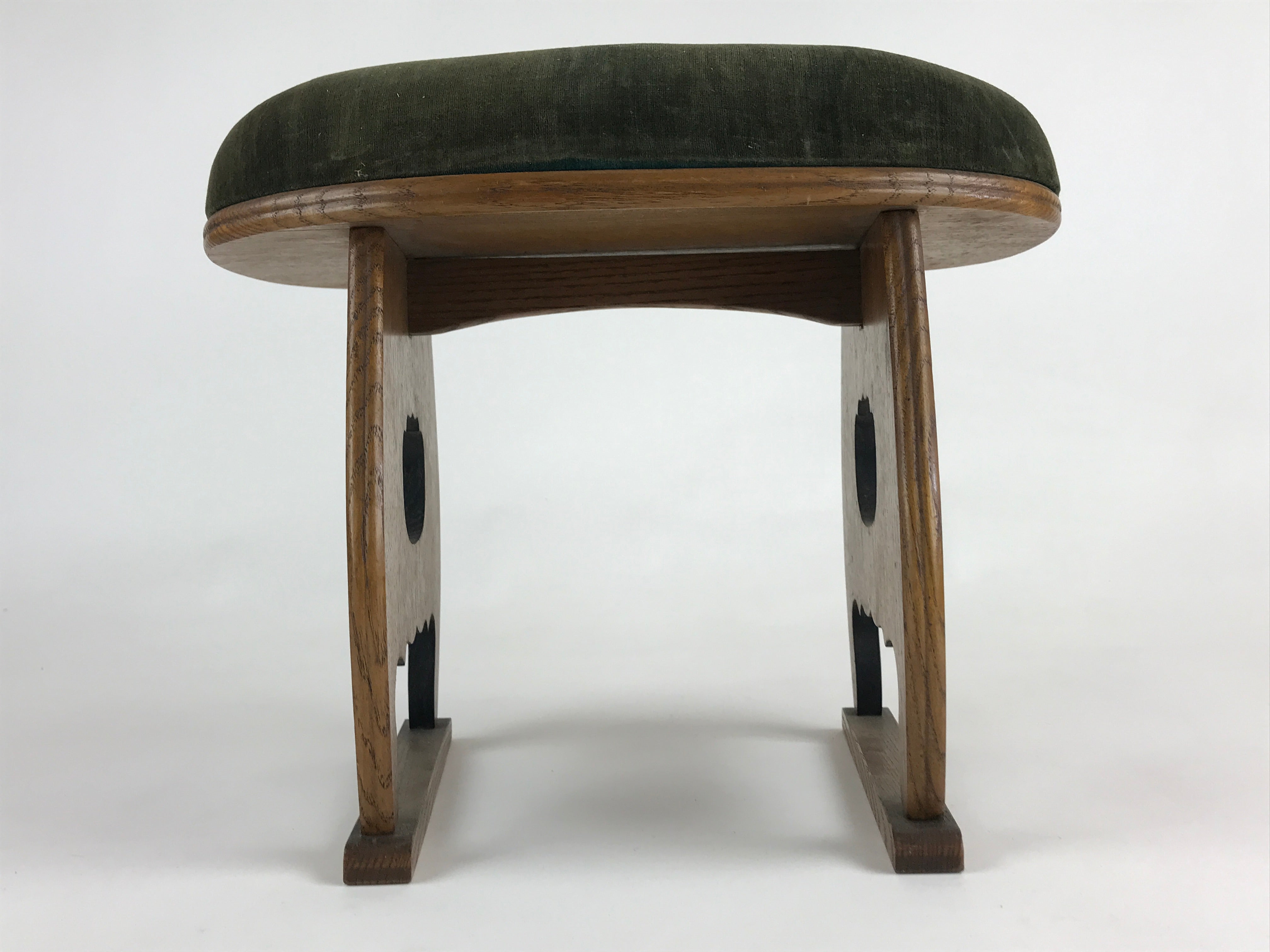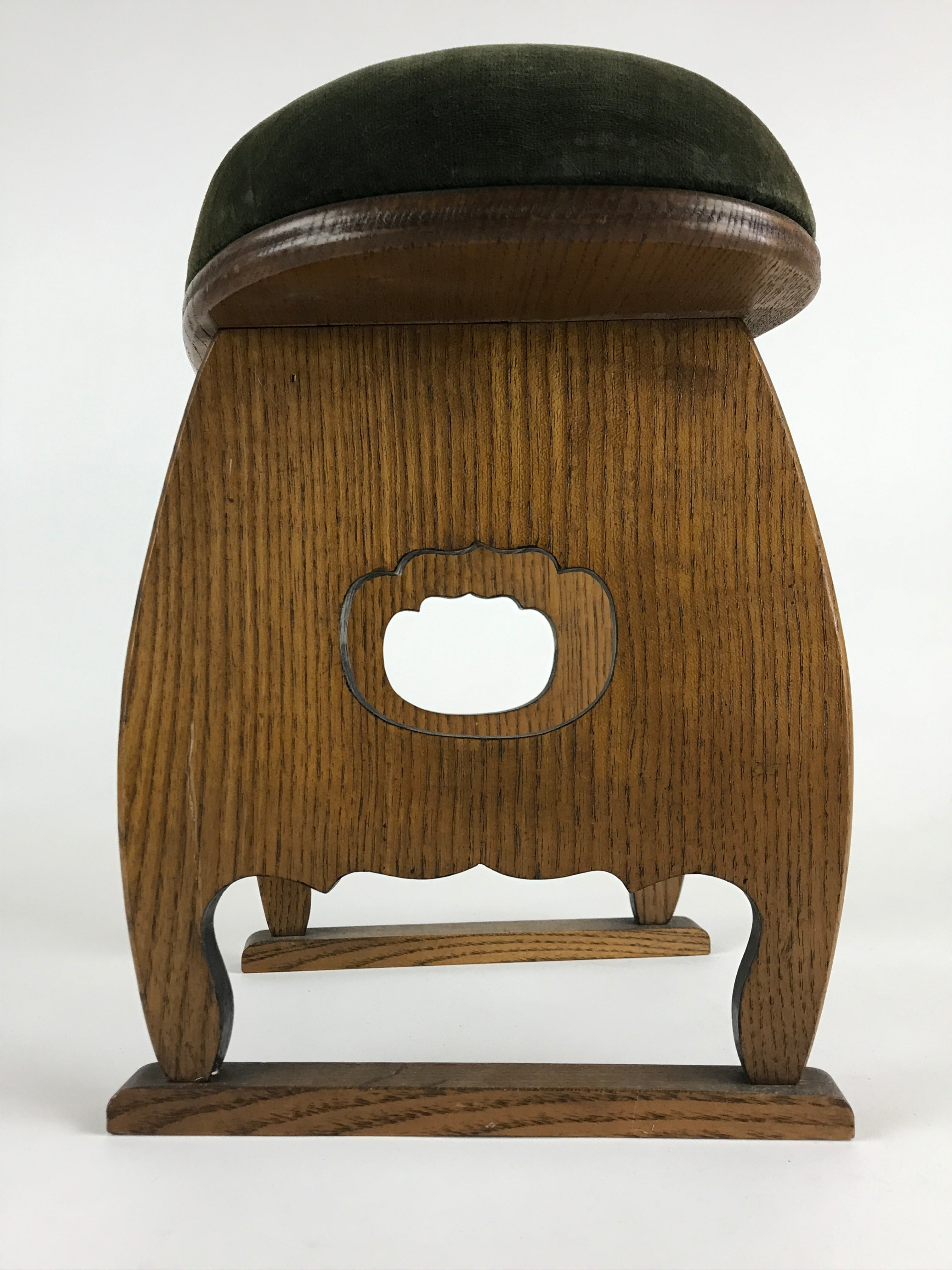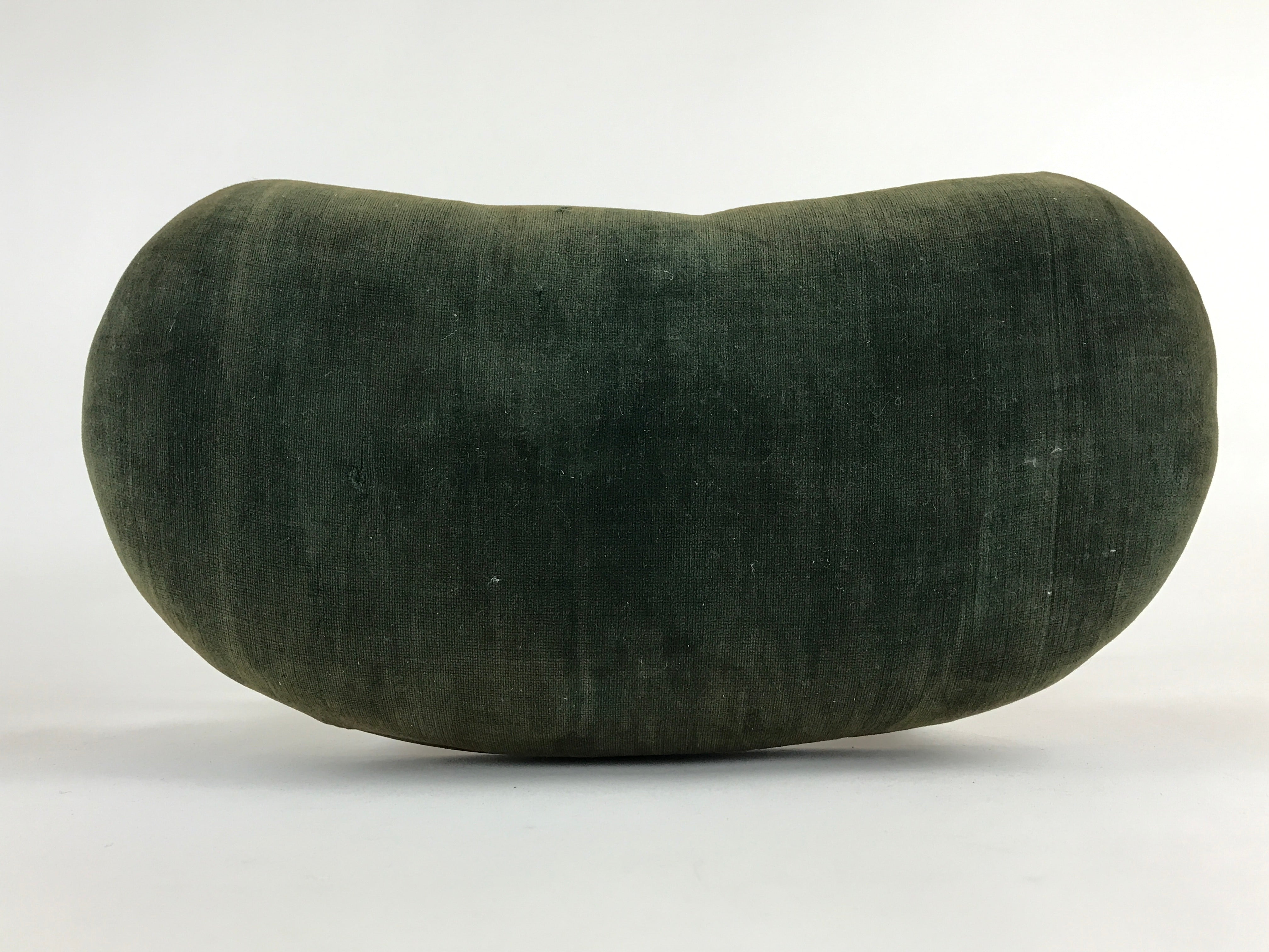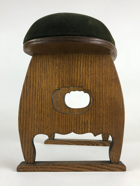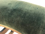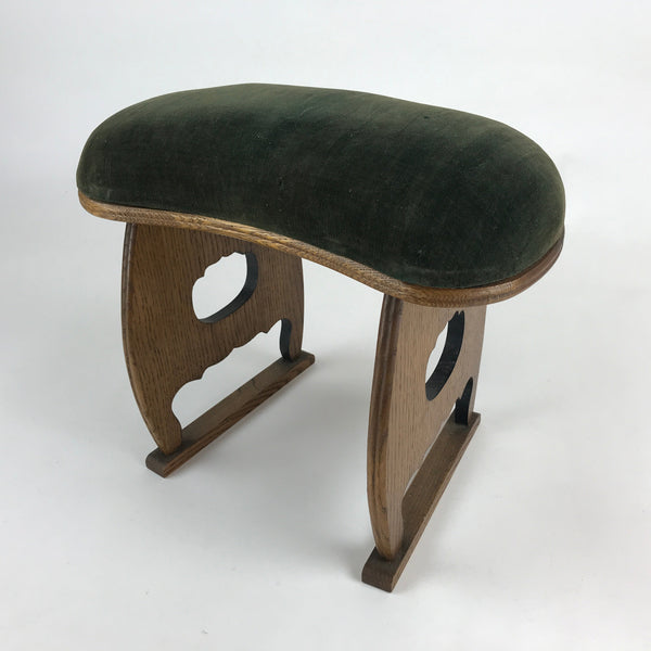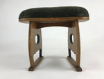 This is a vintage wooden armrest with a green cushion top. This armrest is called a Kyoosoku in Japanese. The legs are flat so that the tatami mats are not damaged.
