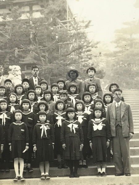 Japanese Showa School Trip Photograph Student Kiyomizu Temple Black White PH158