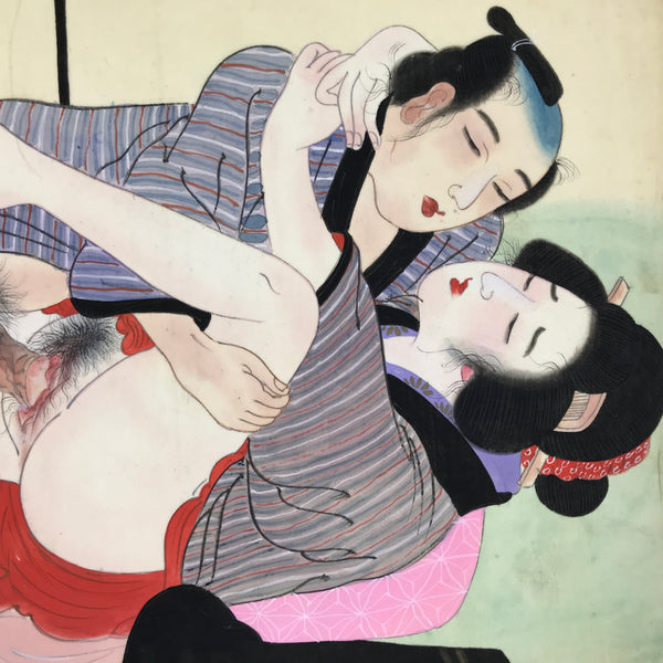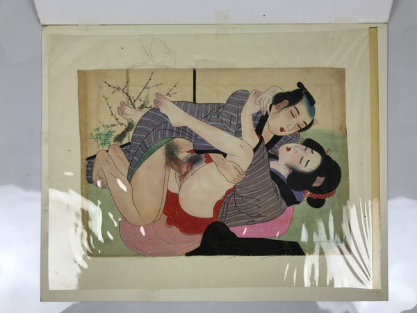 Japanese Shunga Erotic Art Vtg Handpainted Toyokuni III Hiroshige Utagawa FL497