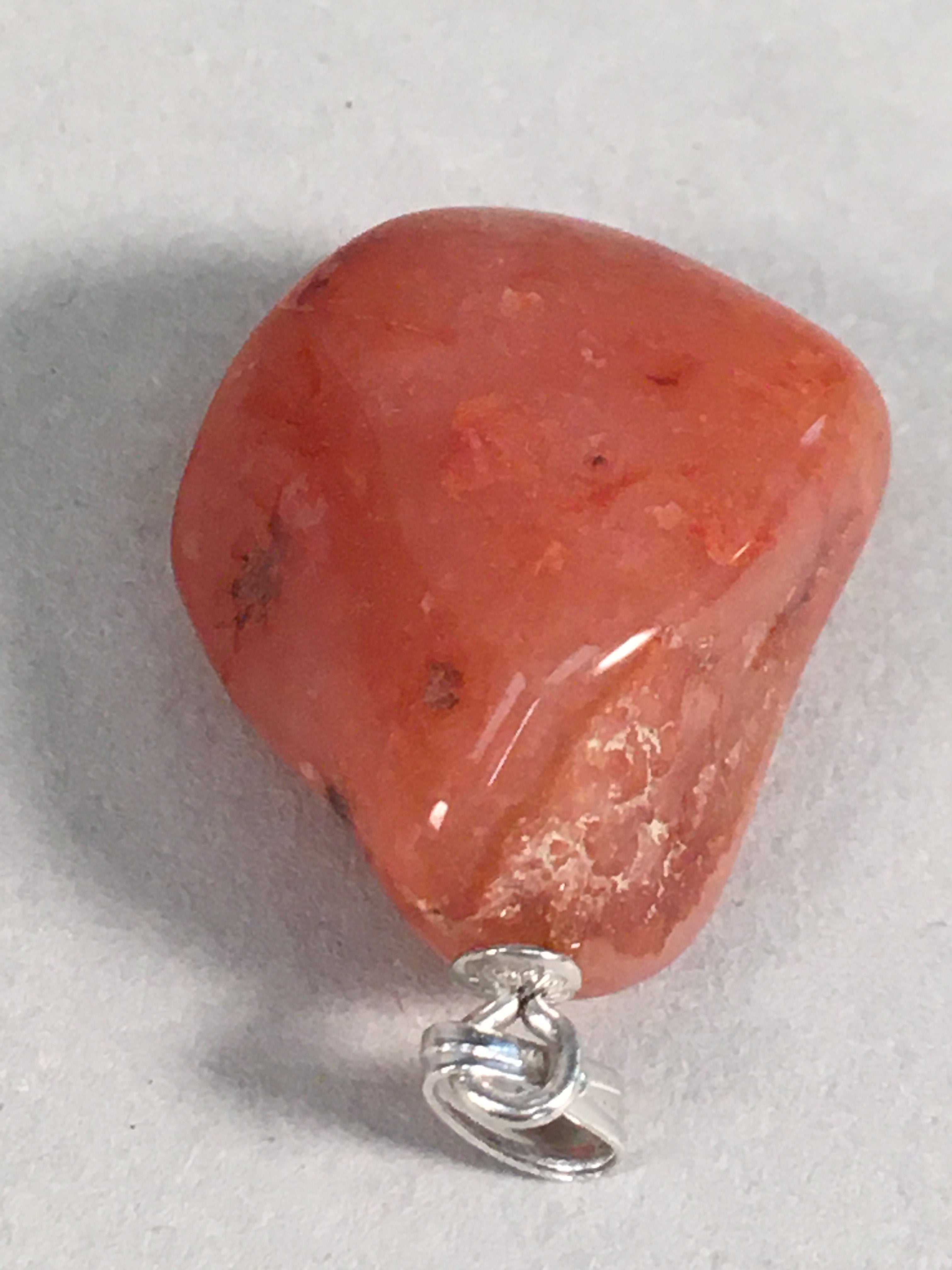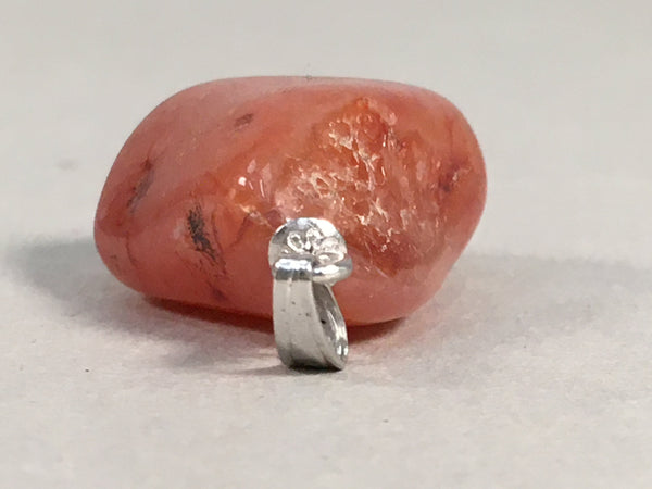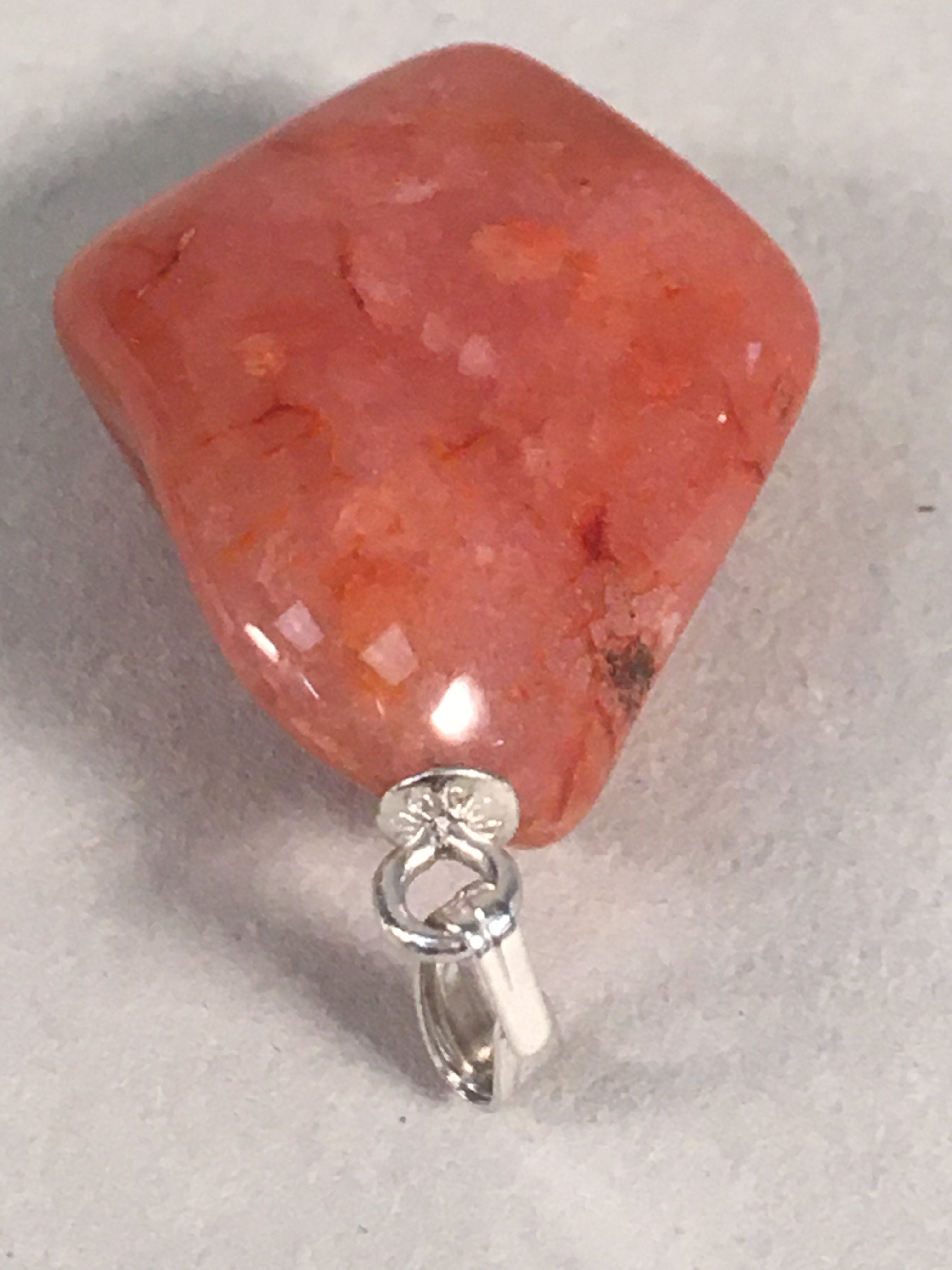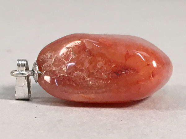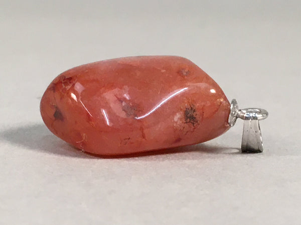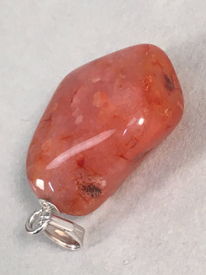 Japanese Stone Pendant Vtg Red Shiny Natural Brown Silver Parts JK55