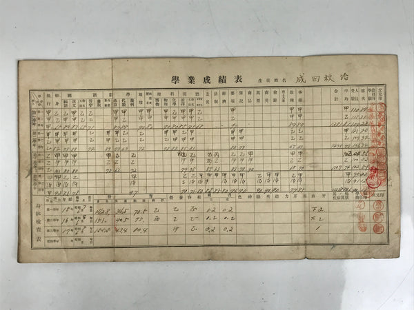 Vintage Japanese Student Record Report Card