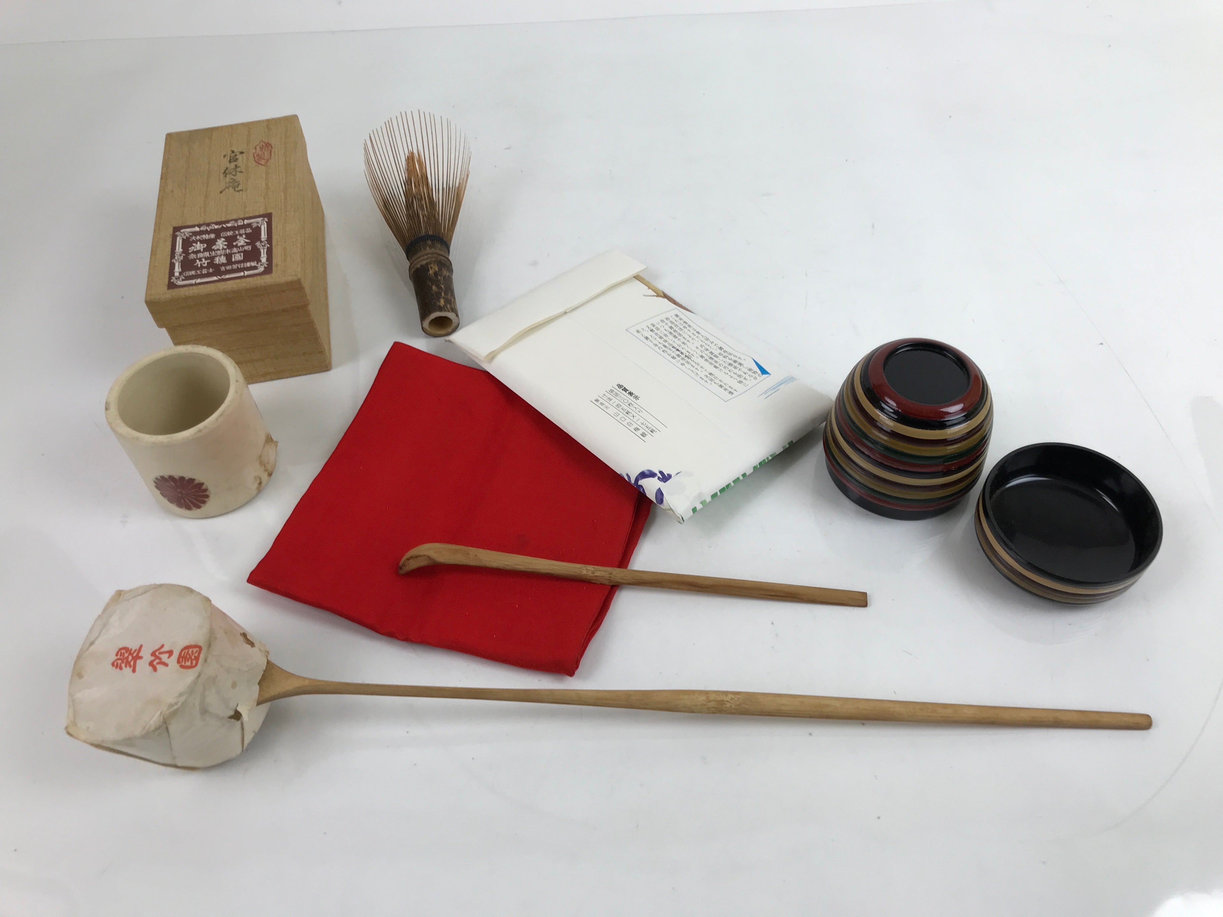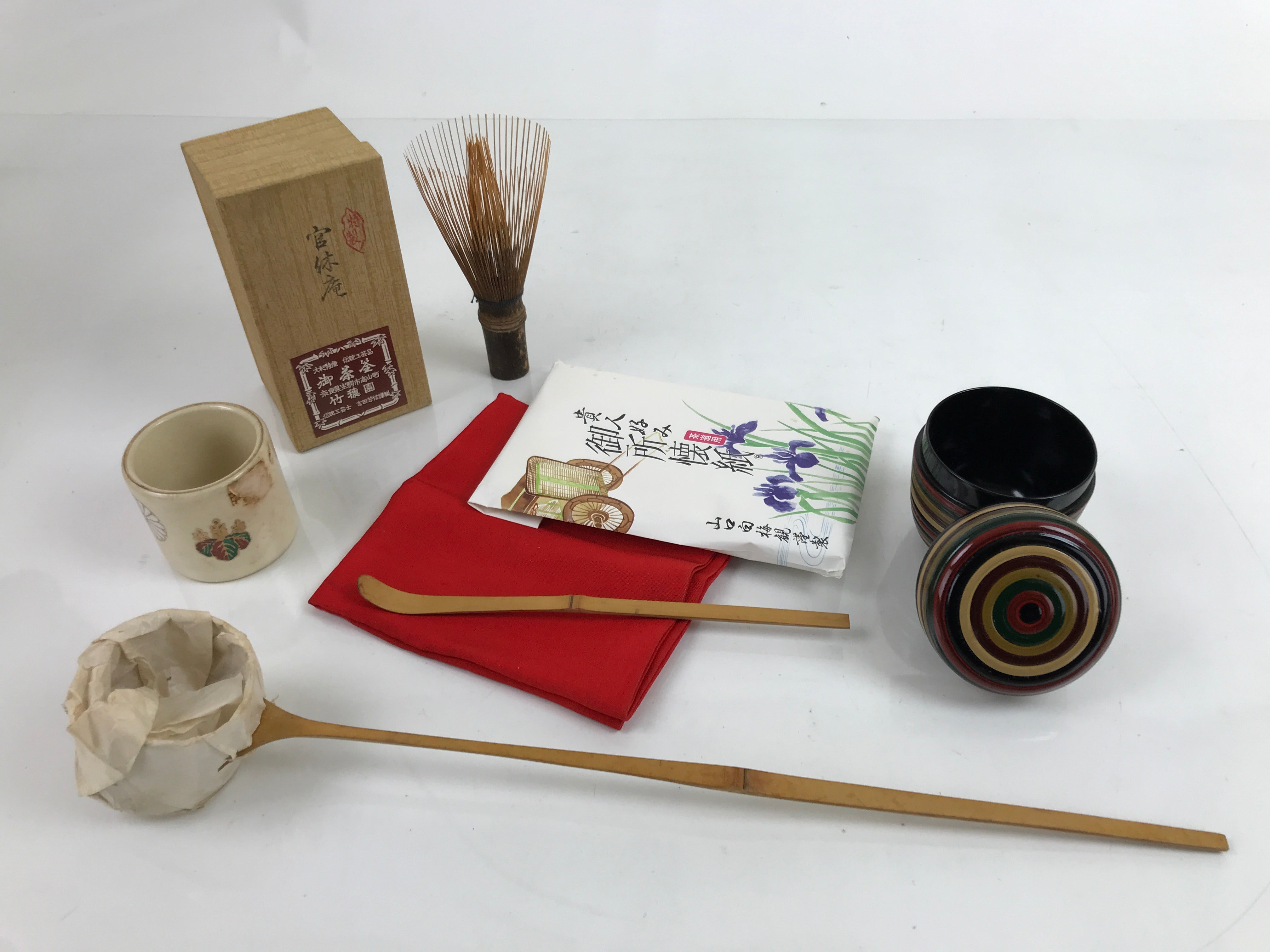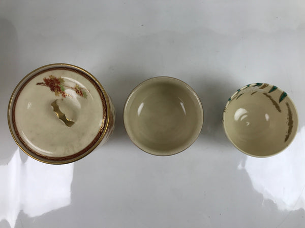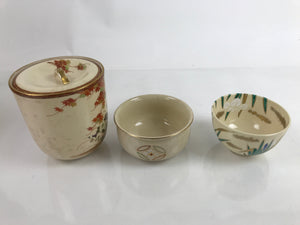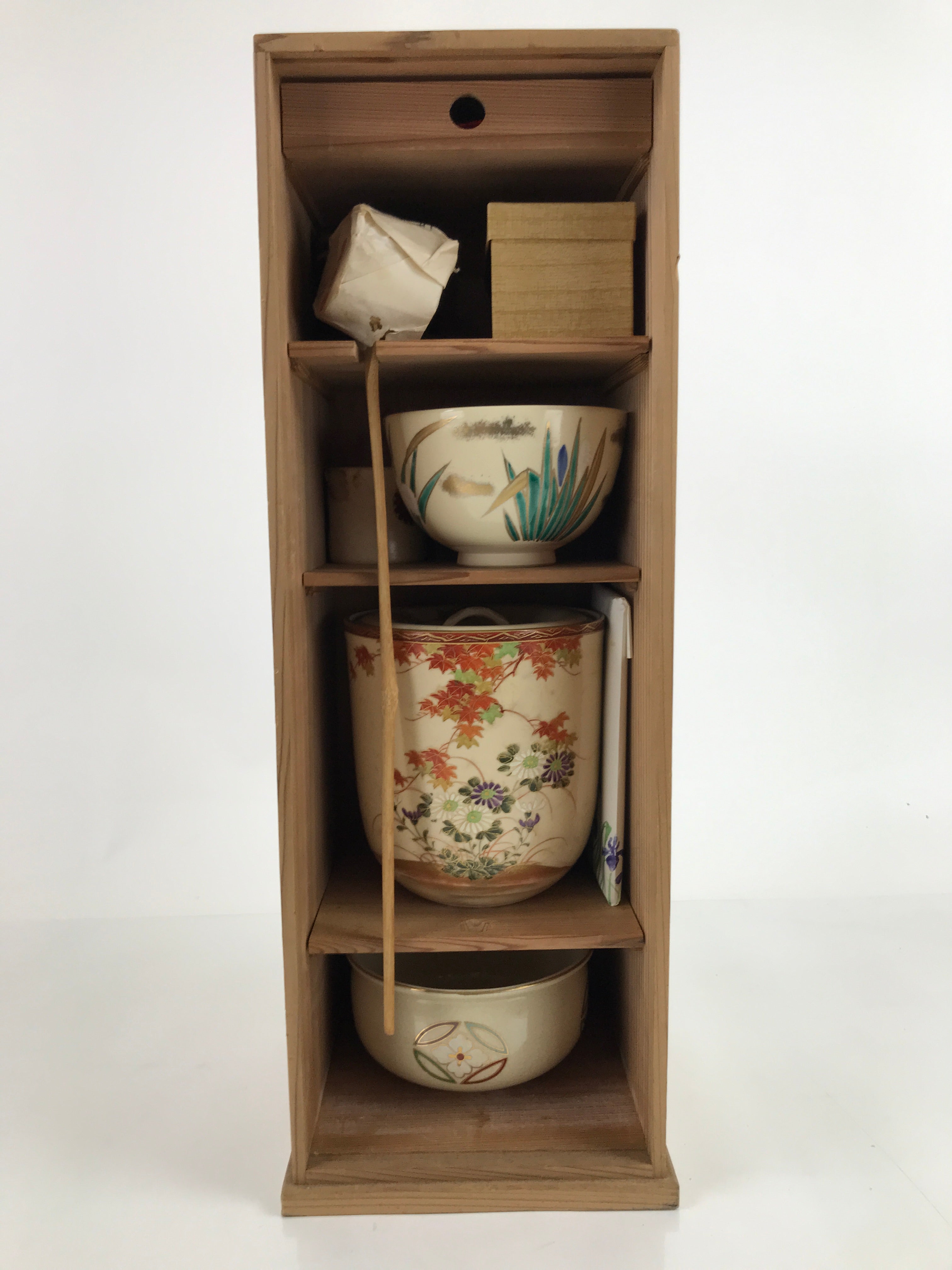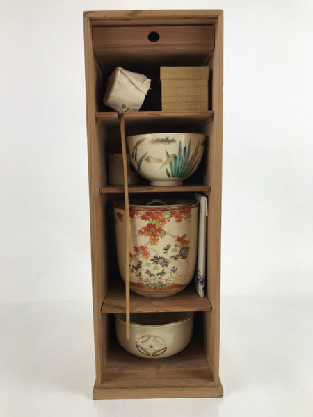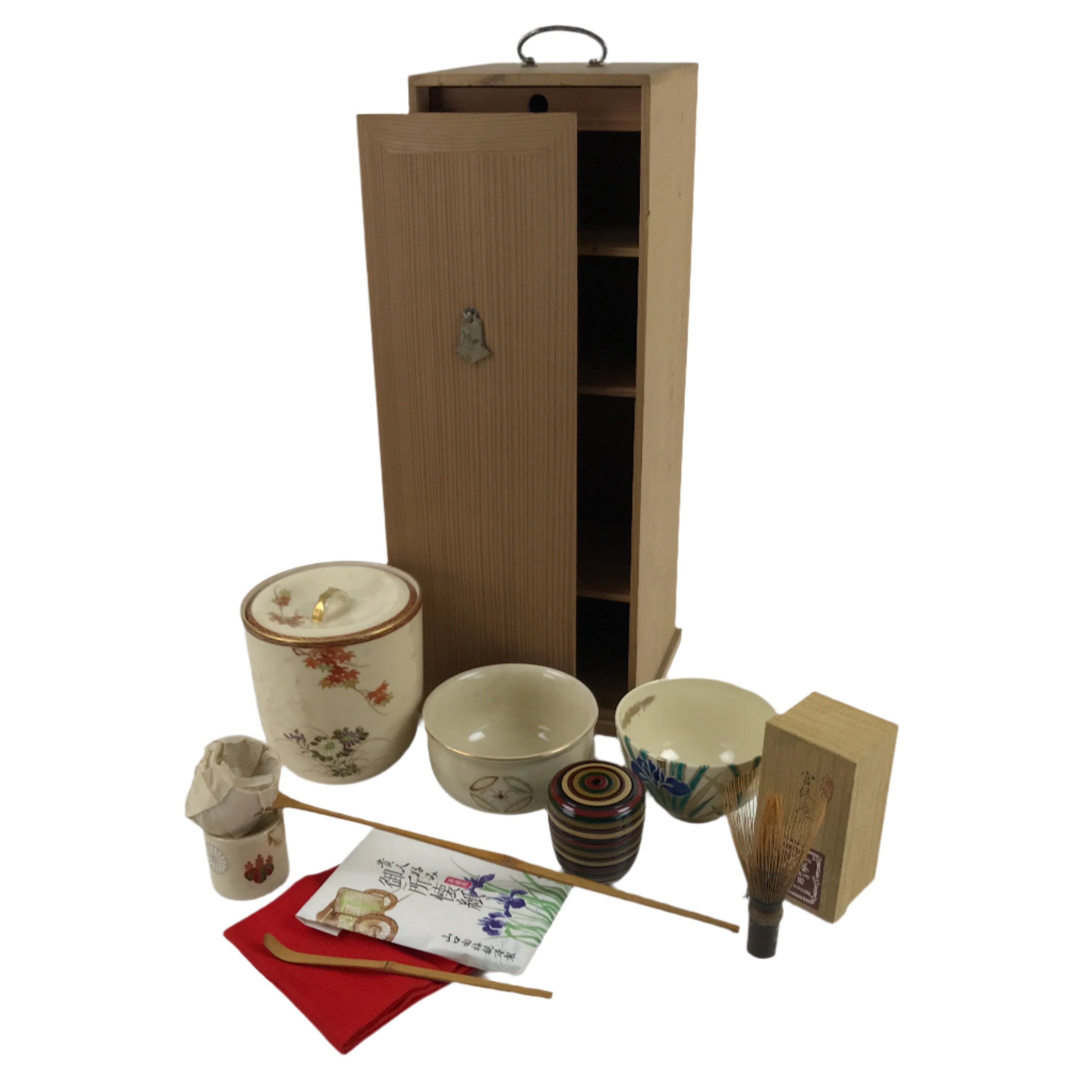 Japanese Tea Ceremony Set Chabako Wooden Box Vtg Pottery Chawan Sado PX748