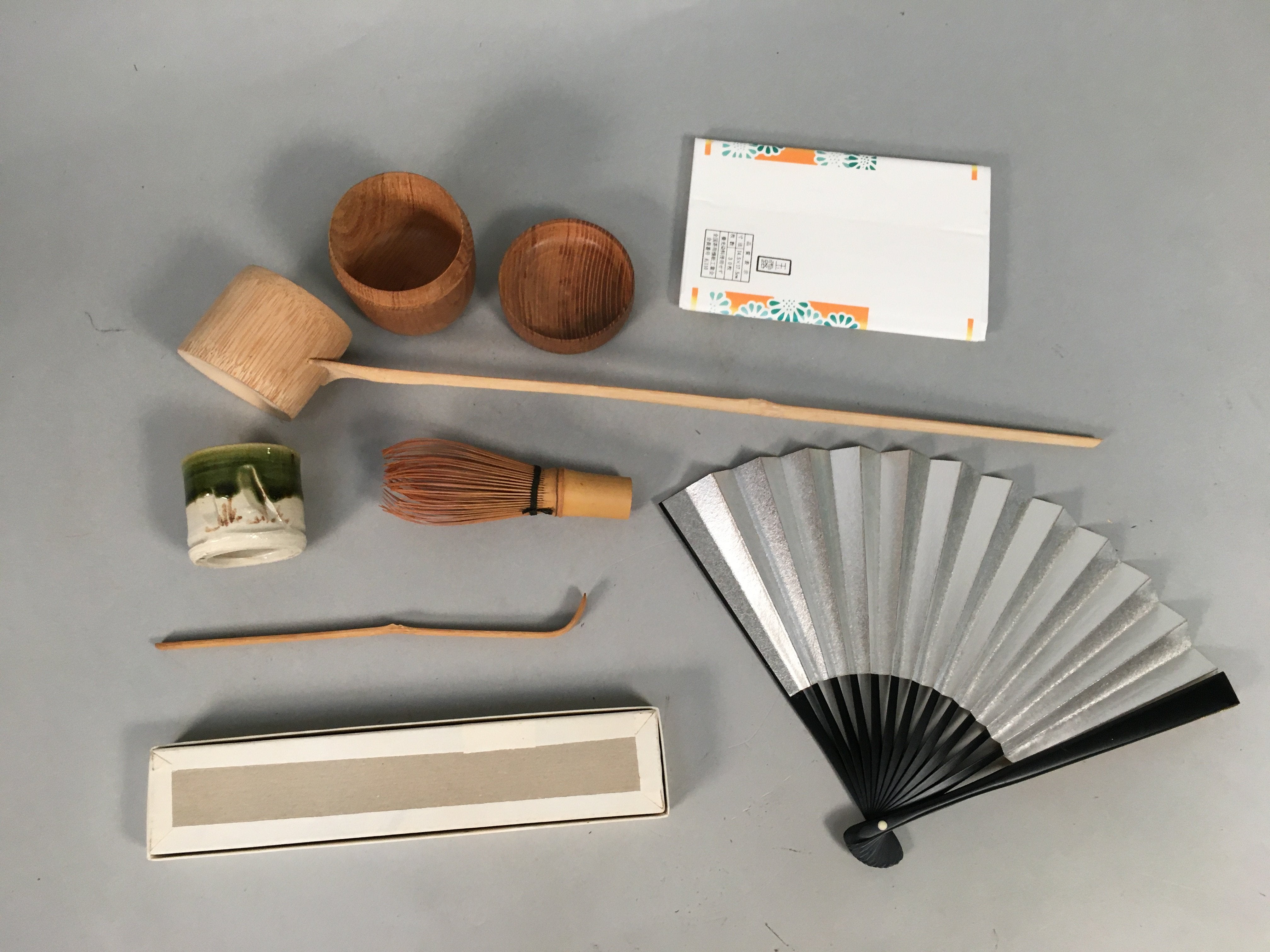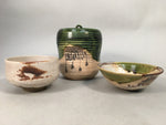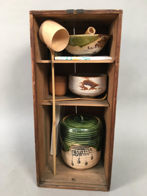 Japanese Tea Ceremony Set Chabako Wooden Box Vtg Chawan Mizusashi PX522
