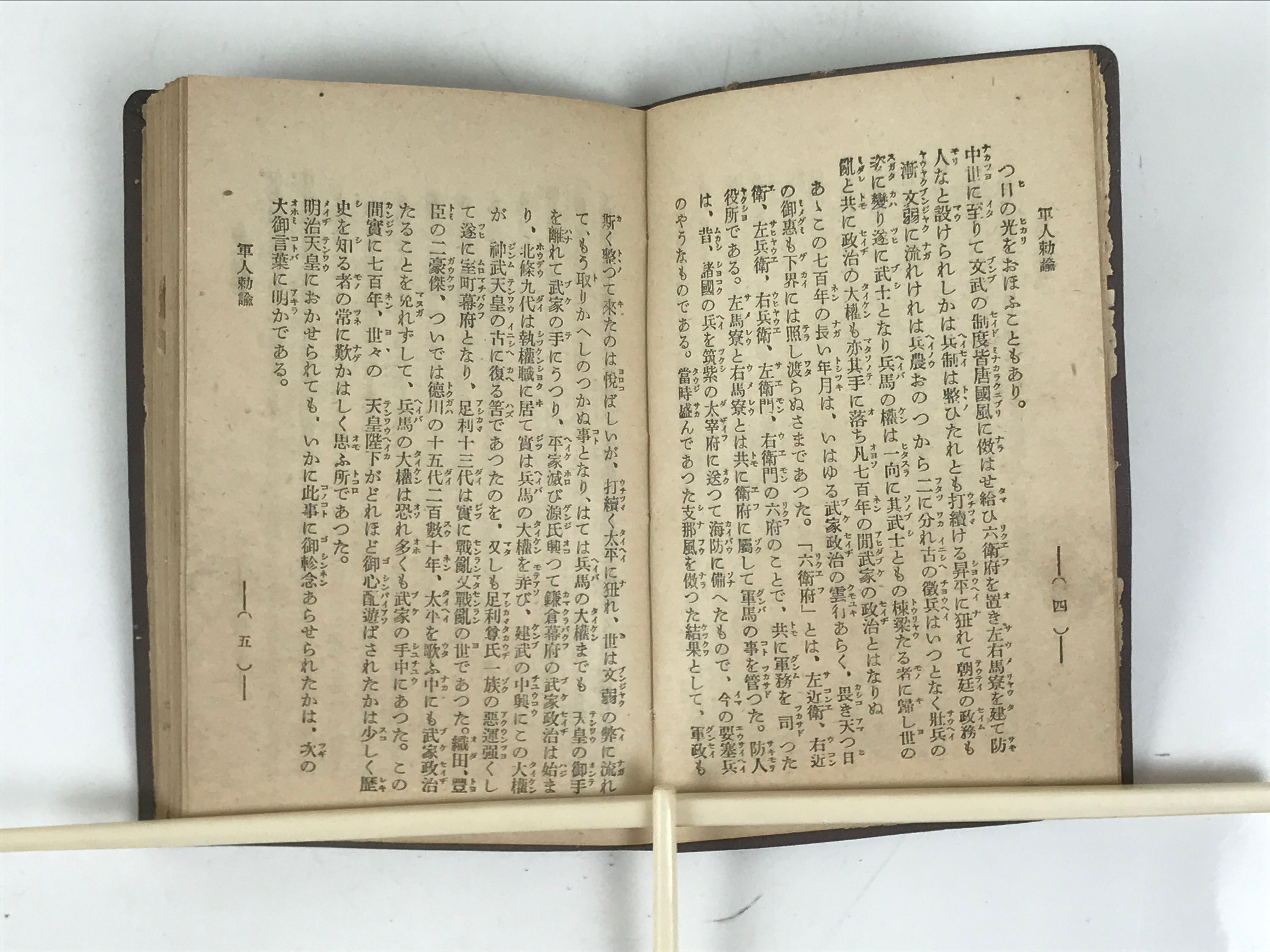 This is a vintage Japanese textbook for adolescents (junior high school and high school) featuring texts about the army and the military. This book is a separate volume from another textbook with the same title. It was issued by the Ministry of War.