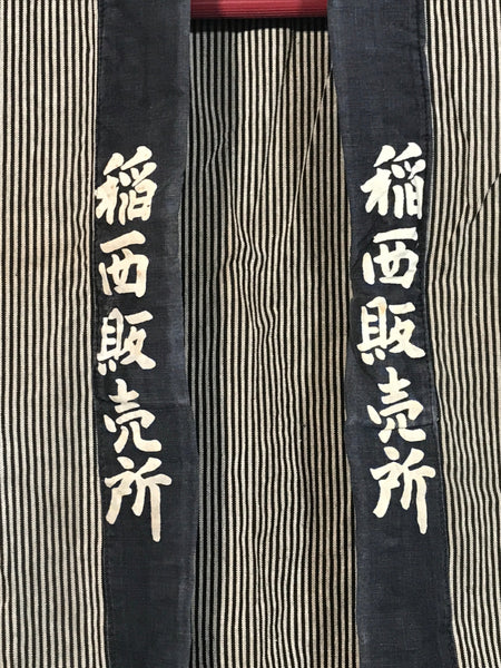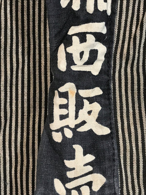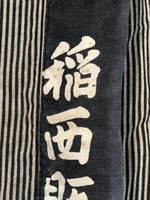 This is a vintage Japanese traditional festival clothes Happi. A happi is a traditional tube-sleeved Japanese coat, usually worn only during festivals. Happi typically feature symbols and/or text on the lapels (name of the festival or the participating association), with a larger design on the back of the coat.