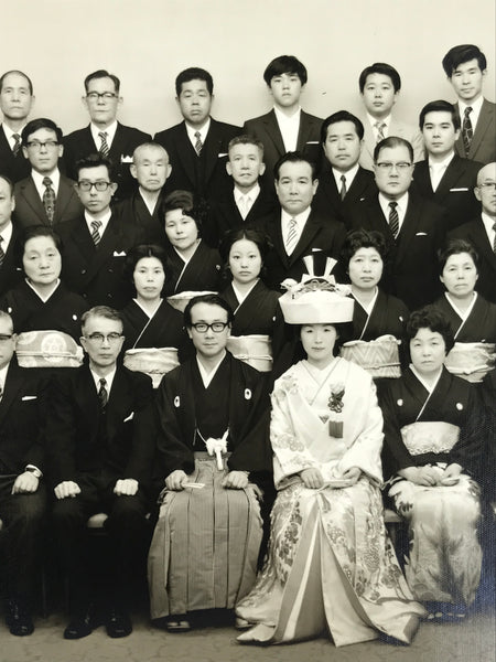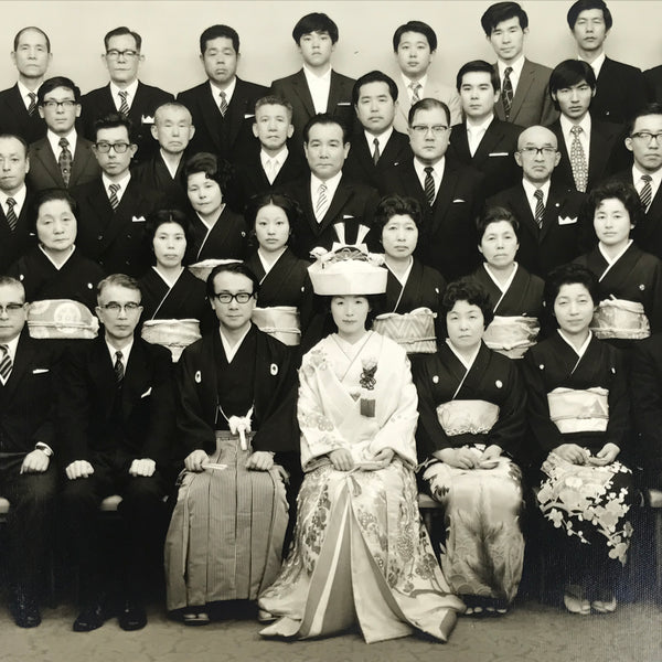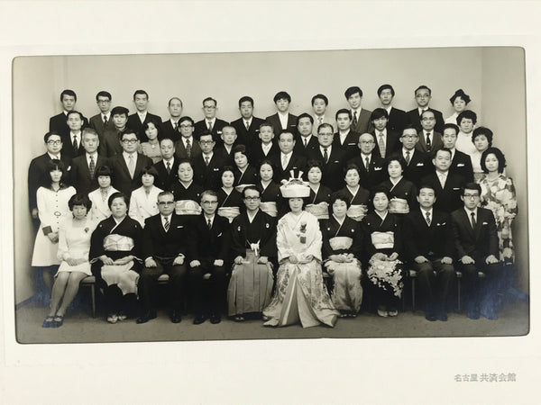 Japanese Wedding Photograph Vtg Kimono Bride Groom Family Showa Black White PH9