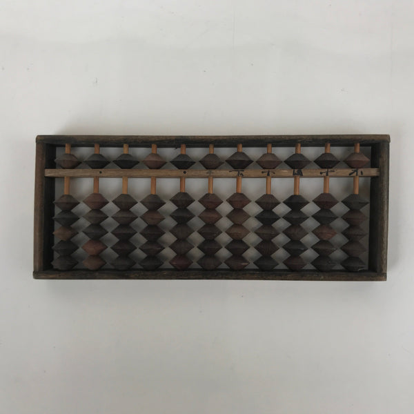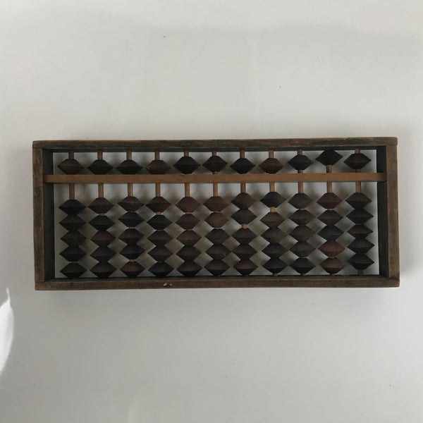 This soroban is made of wood with a dark brown color and is in excellent working order.
