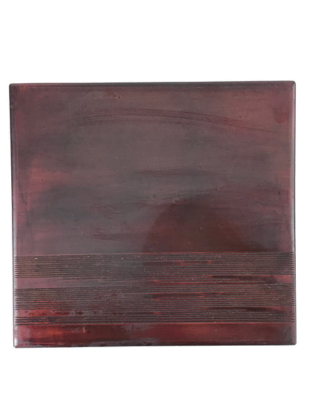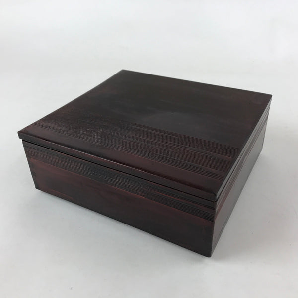 This is a vintage Japanese lacquerware wooden lidded bento box. It can be used as a lunch box and can also be used as a Kashiki. Kashiki is a bowl or container that holds sweets for served at Japanese tea ceremonies. This reddish box and lid have some engraved lines that give texture to the simple design.