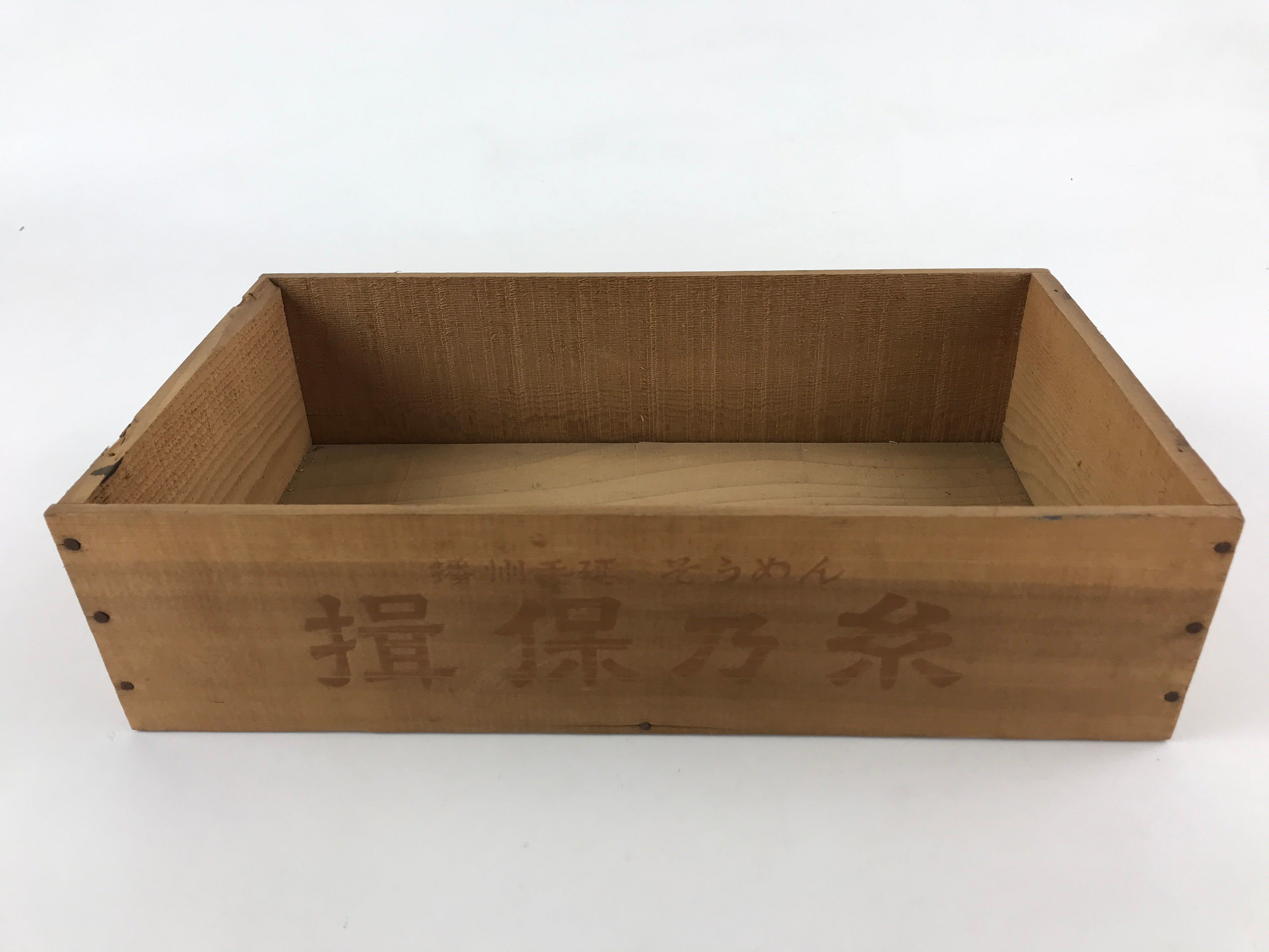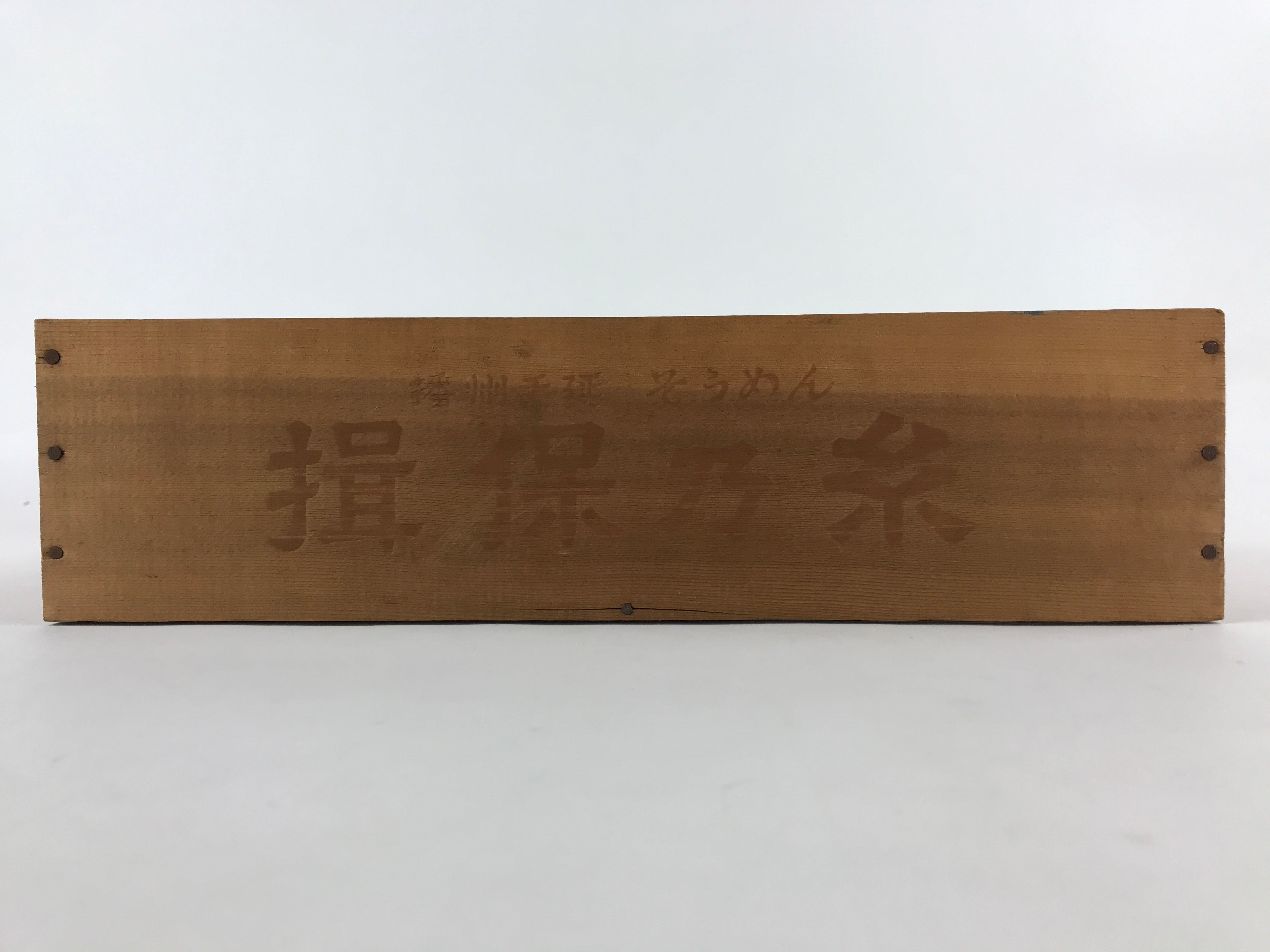 This vintage open rectangular box is originally made for transporting soumen (a type of thin noodle), but is perfect for storing trinkets or use for display or other crafts/projects. At a later time, it seems this piece was also repurposed as a place to put important paperwork.
