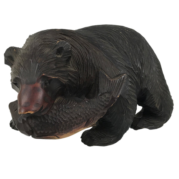Famously from Hokkaido and northern Japan, this intricately hand-carved bear statue with a fish in its maw is a traditional Ainu folk handicraft.