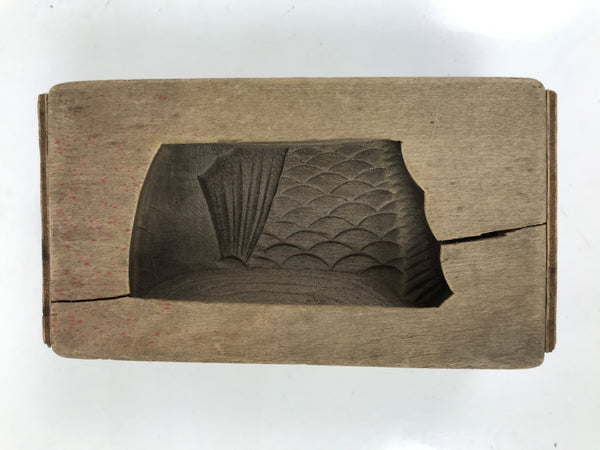 Japanese Wood Carved Kashigata Cake Mold Vtg Sweet Wagashi Cut Madai Fish Kg637