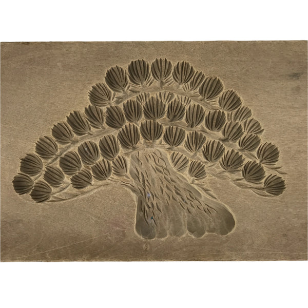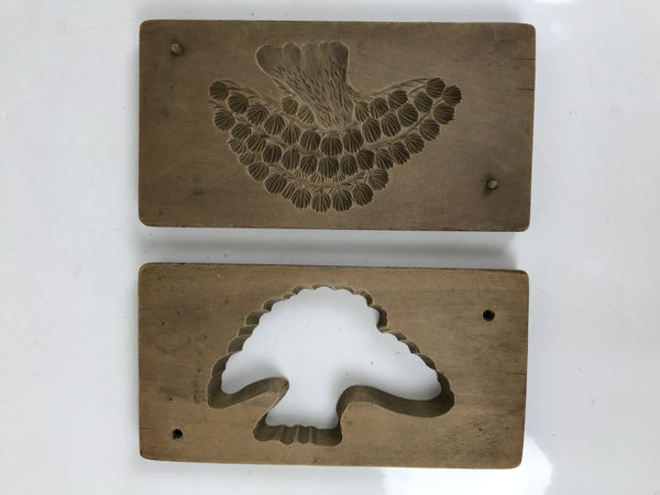 This two-panel kashigata mold is carved with the design of a full, manicured pine tree (matsu). This mold can be used to make sweets or as an eye-catching decorative item.