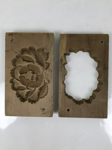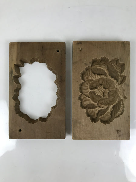Japanese Wooden Carved Kashigata Cake Mold Vtg Sweet Wagashi Peony Botan Kg626