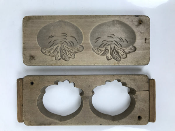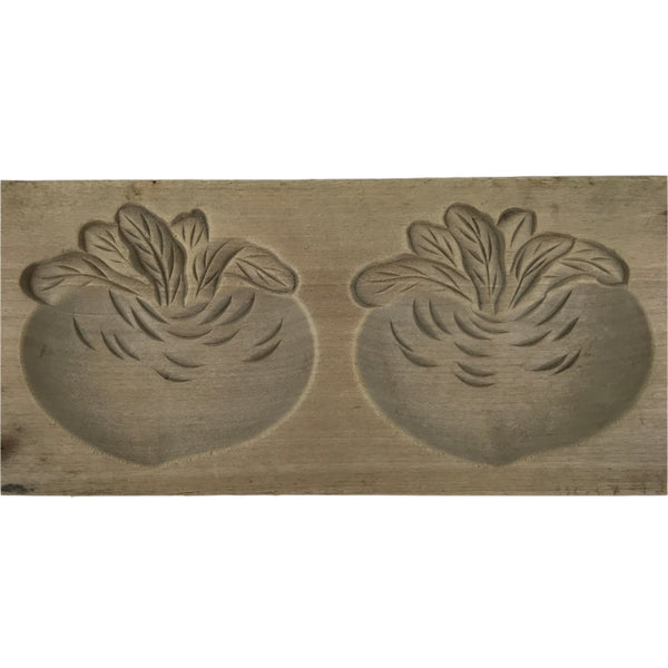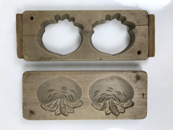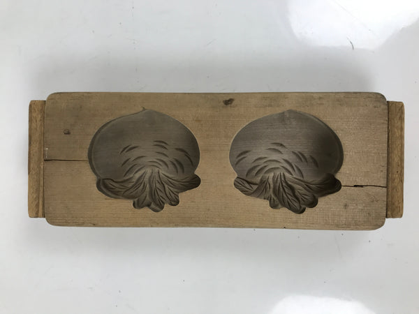 This two-panel kashigata mold is carved with the design of two turnips (kabura/kabu). This mold can be used to make sweets or as an eye-catching decorative item.