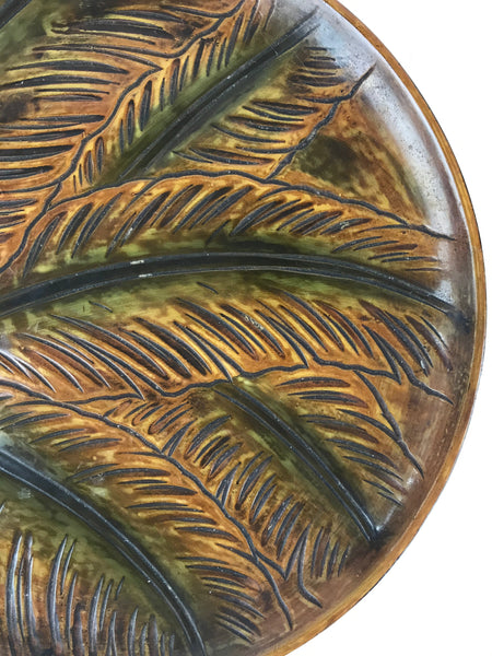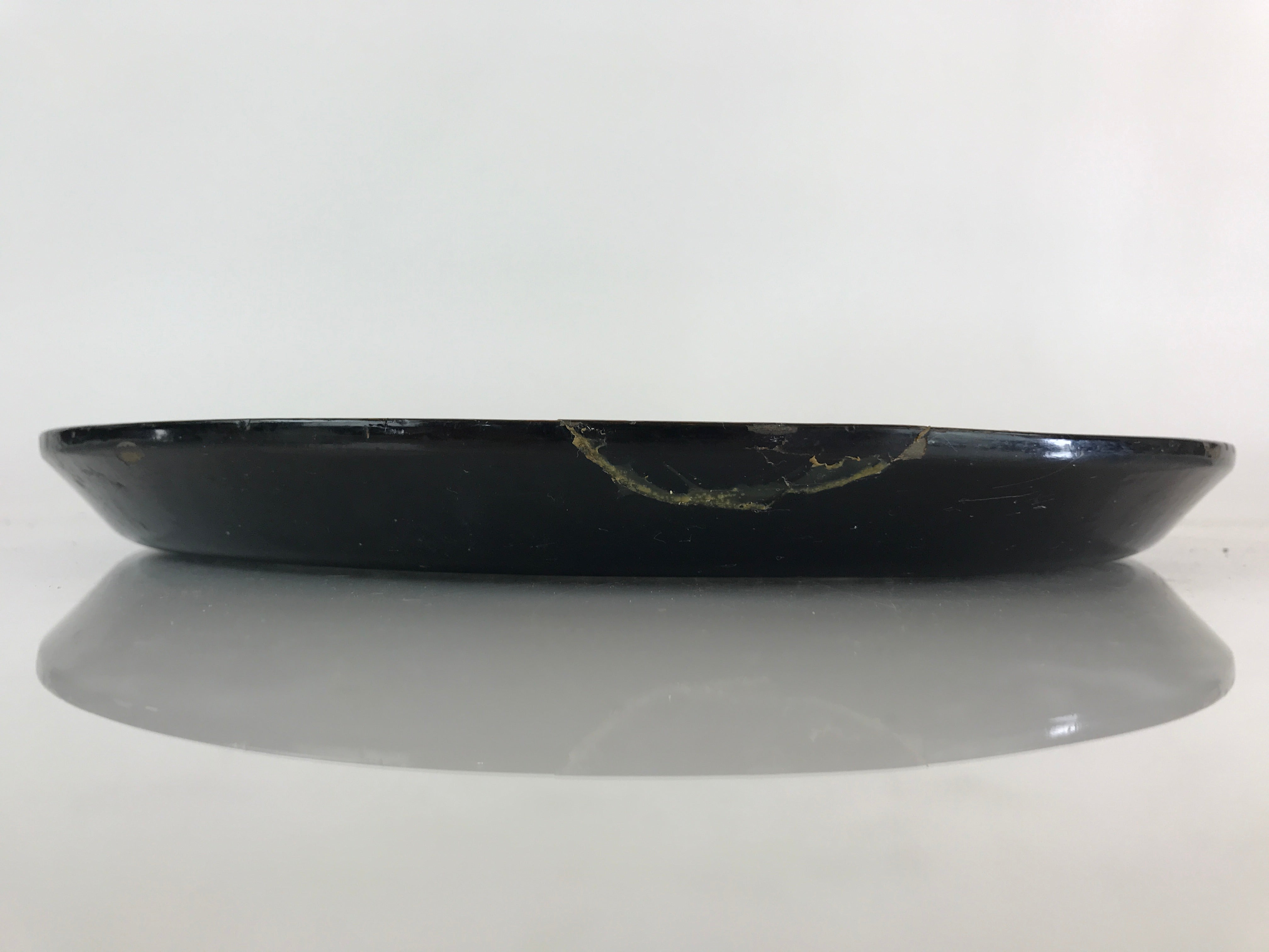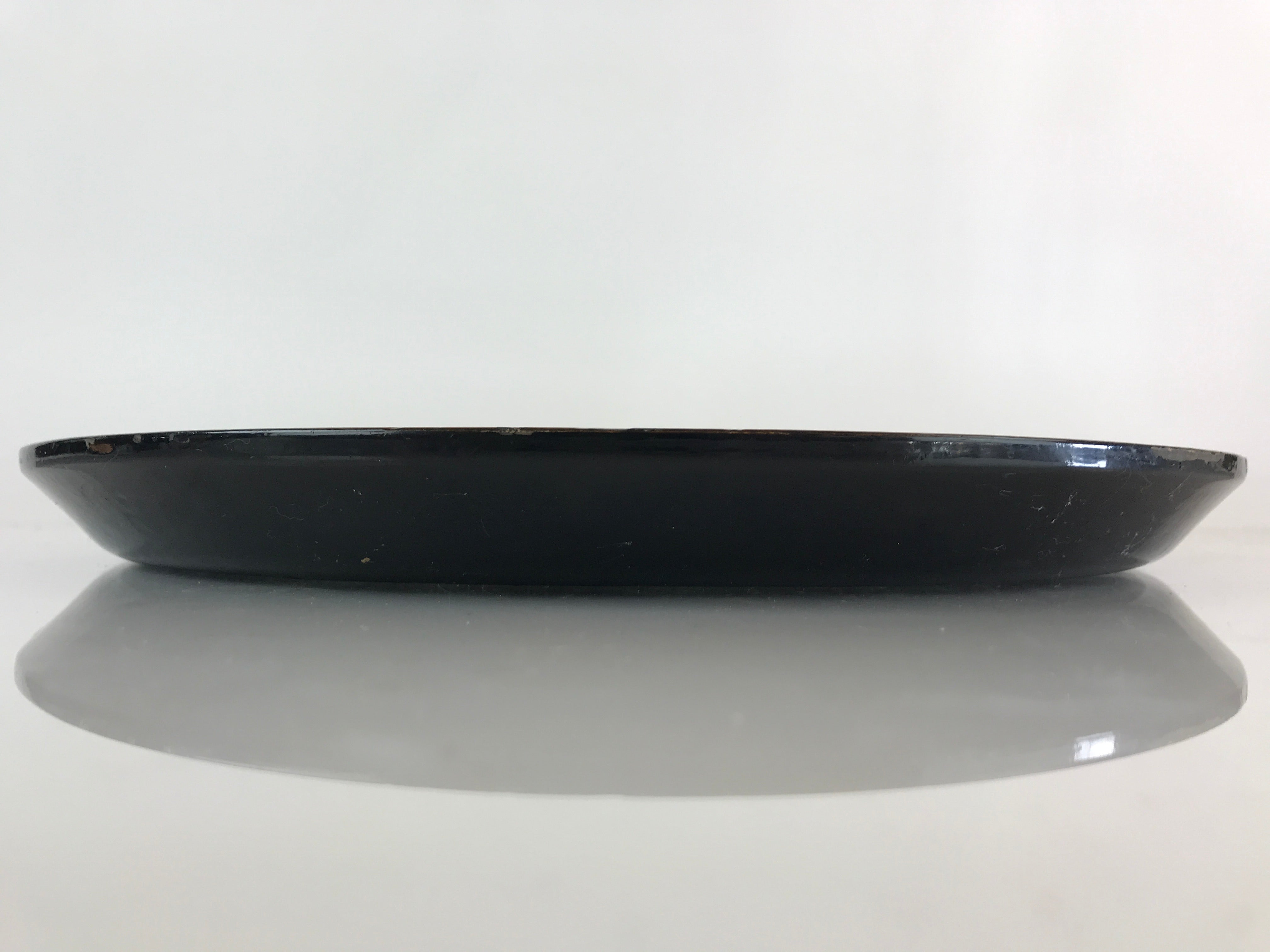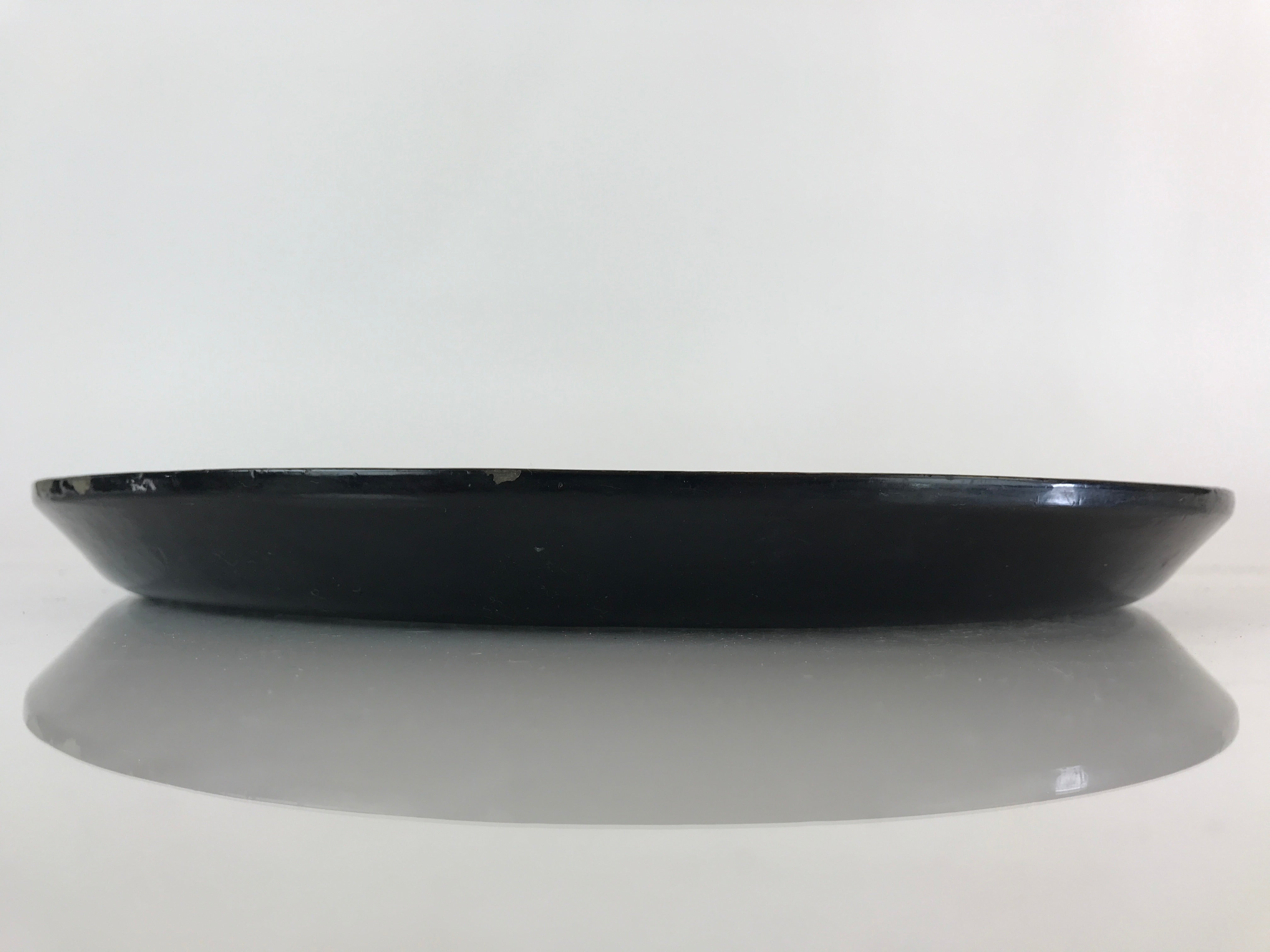 Japanese Wood Carving Tray Obon Vtg Round Wood Brown Leaf UR815