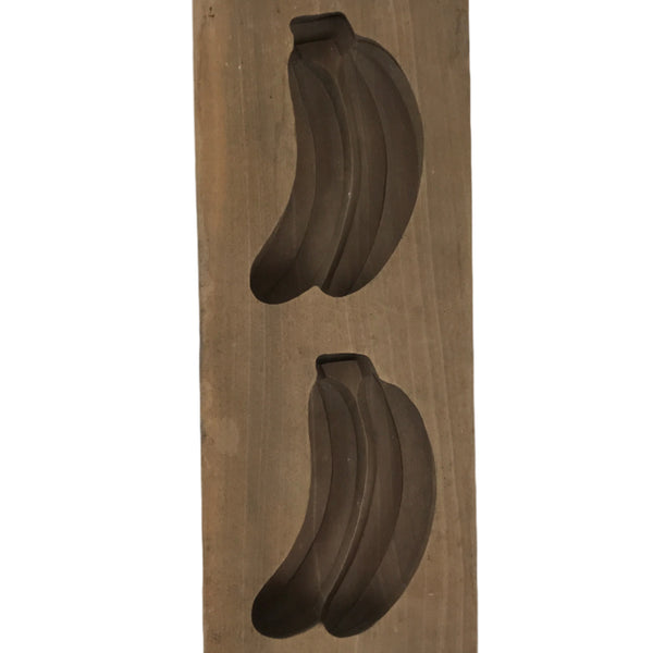This two-panel kashigata mold is carved with the design of two bunches of bananas. This mold can be used to make sweets or as an eye-catching decorative item.