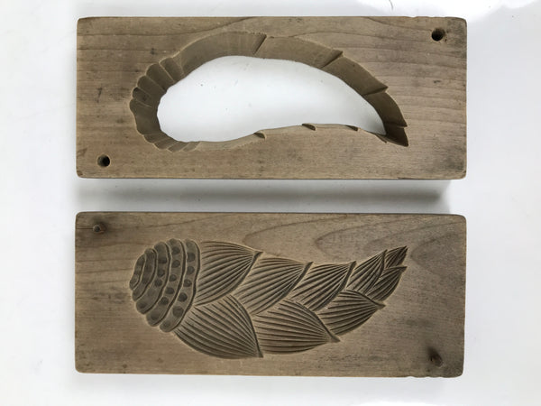 This two-panel kashigata mold is carved with the design of a bamboo shoot (takenoko). This mold can be used to make sweets or as an eye-catching decorative item.