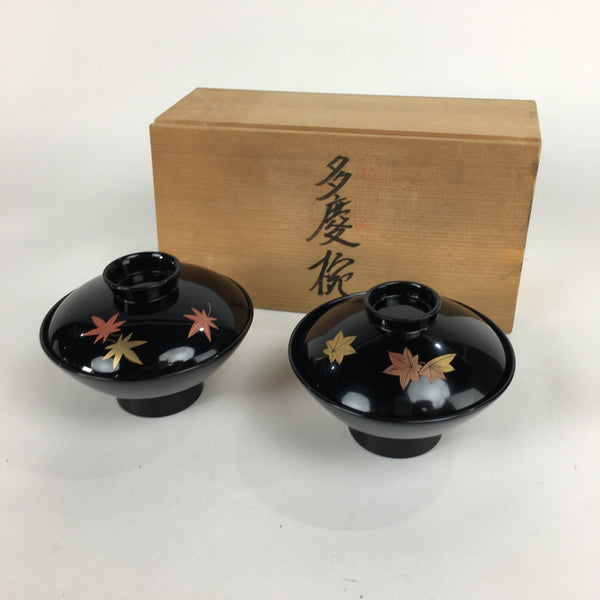 Vtg Japanese Wooden Lacquer Lidded Soup Bowl