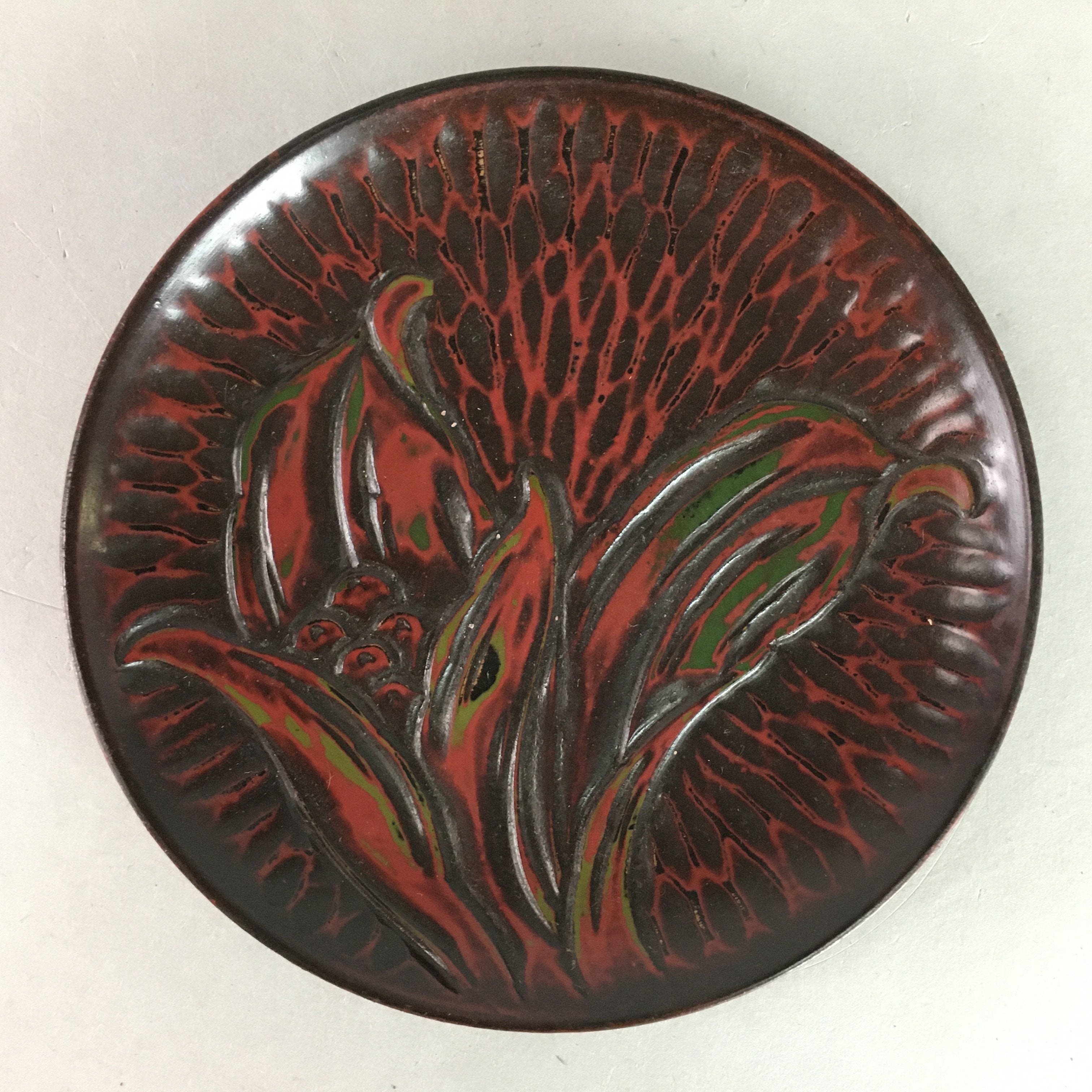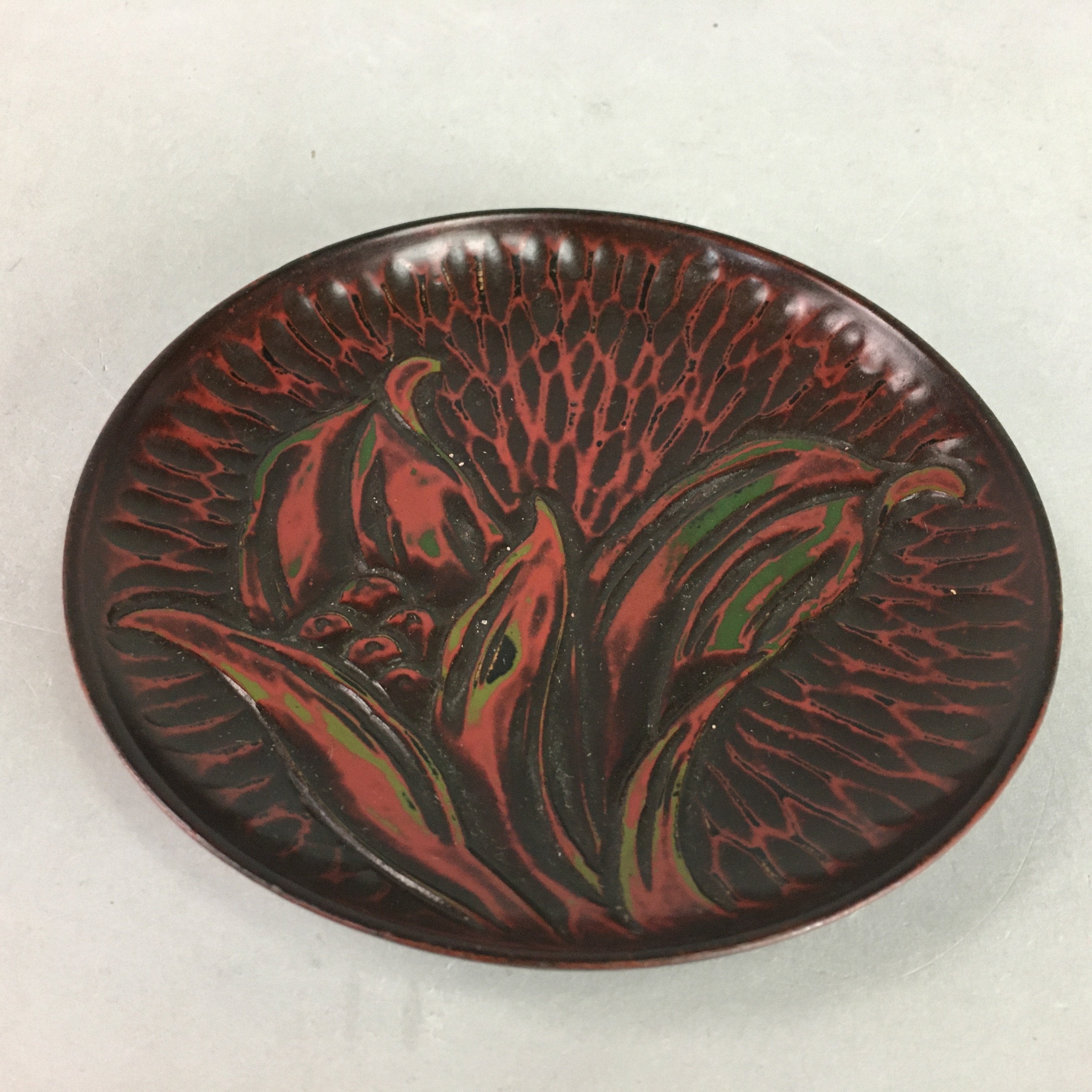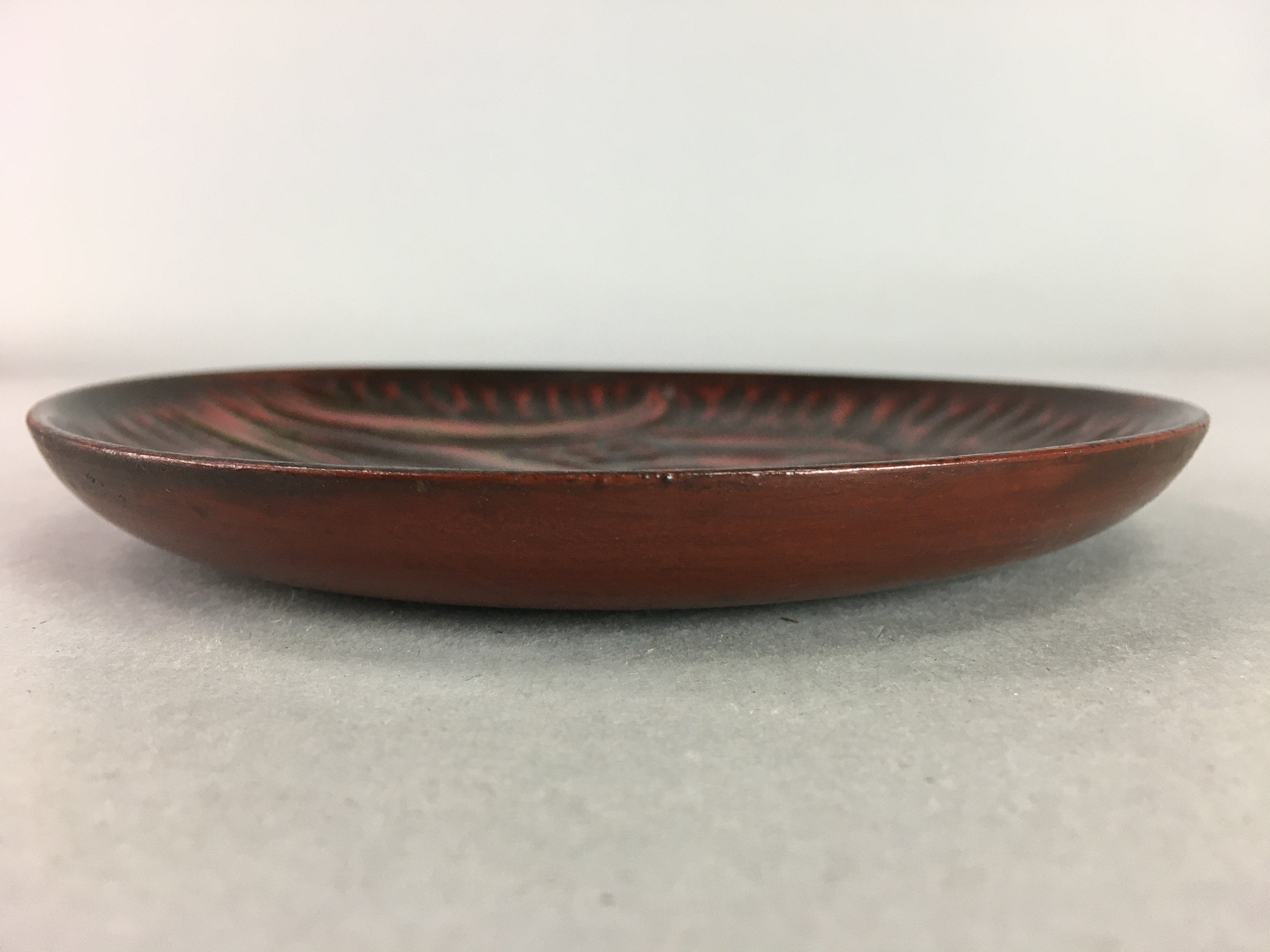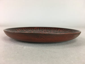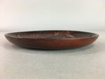 Japanese Wood Lacquer Plate Kamakura-Bori Vtg Brown Hand-carved Floral UR244