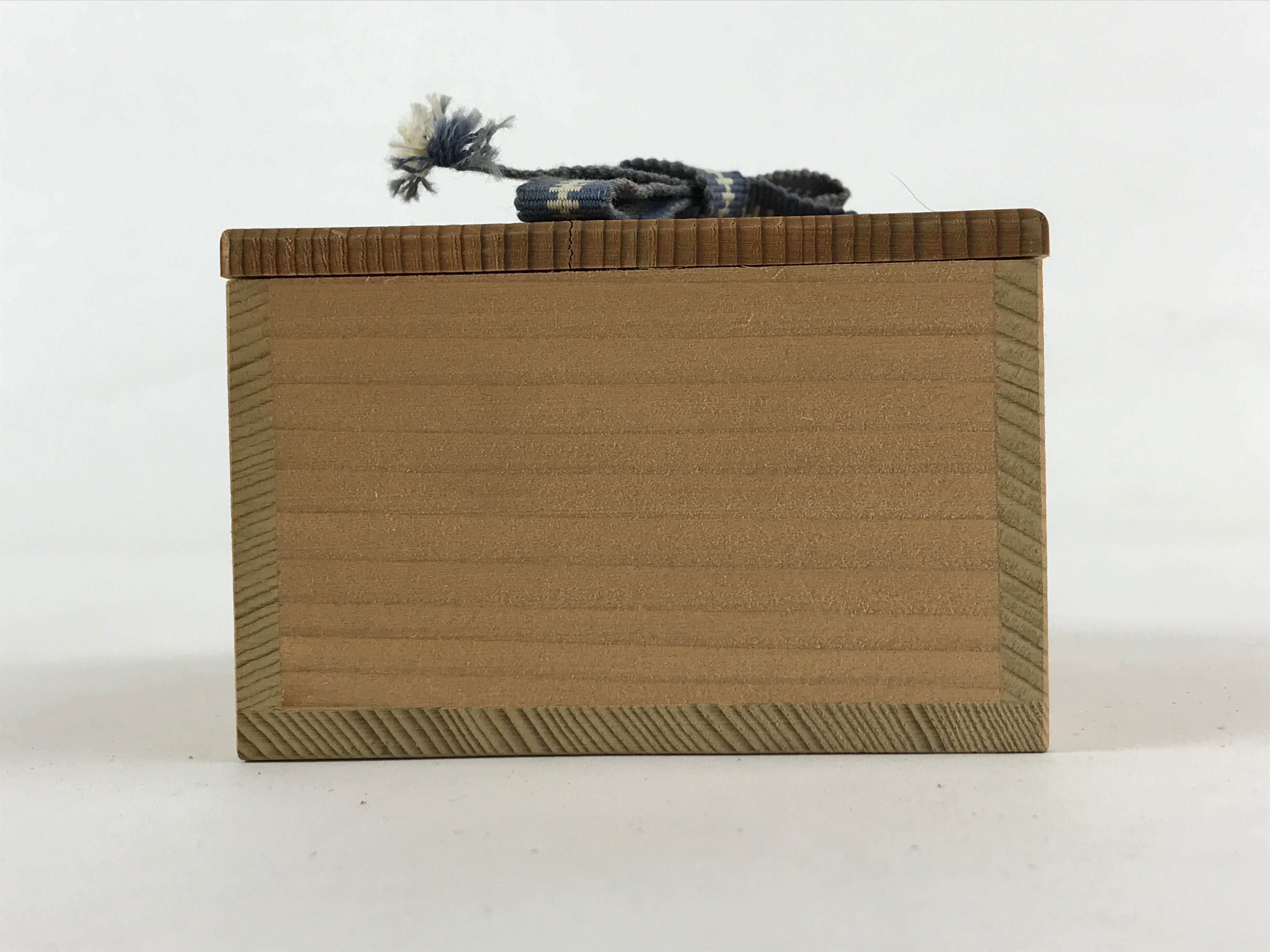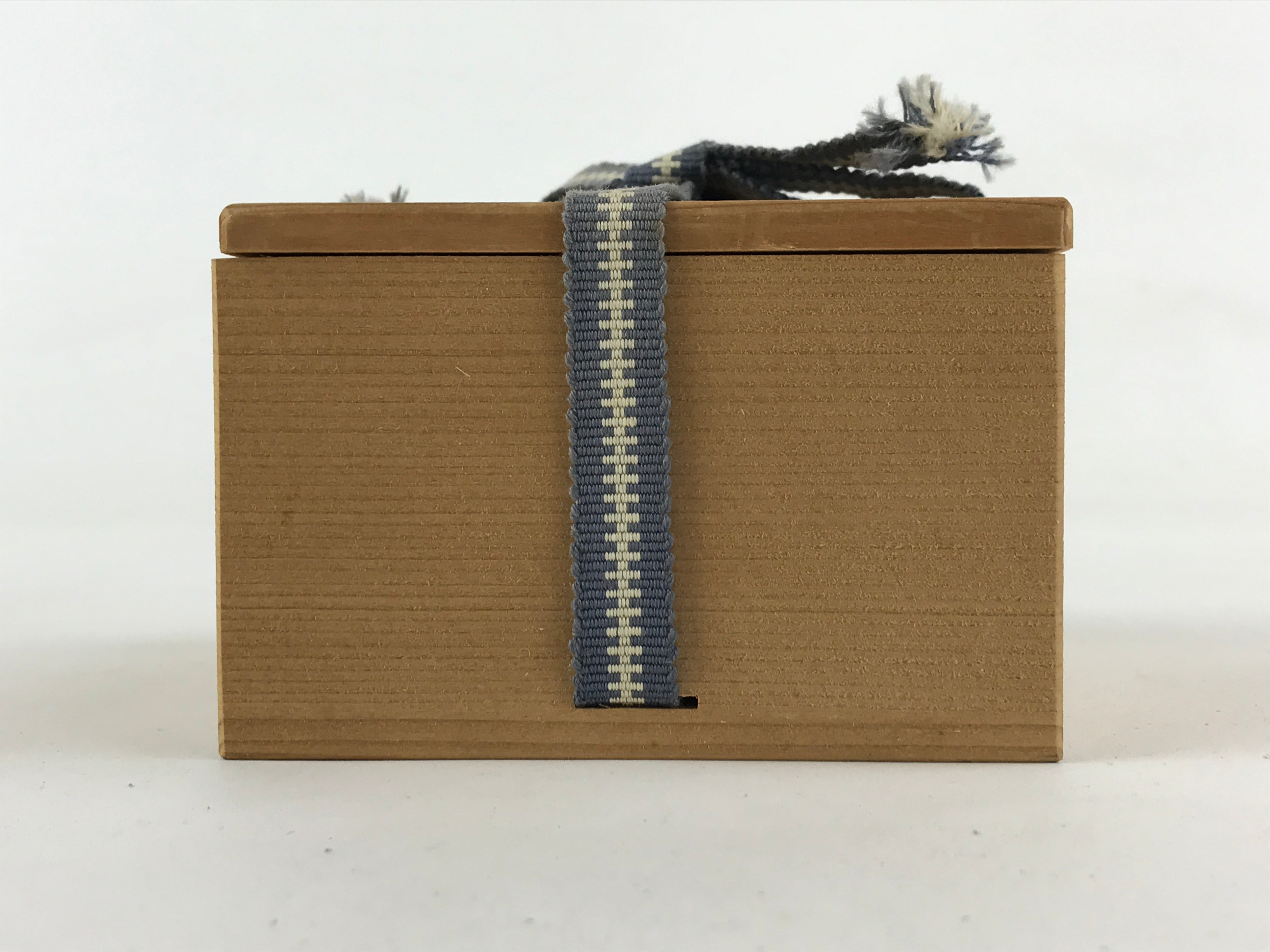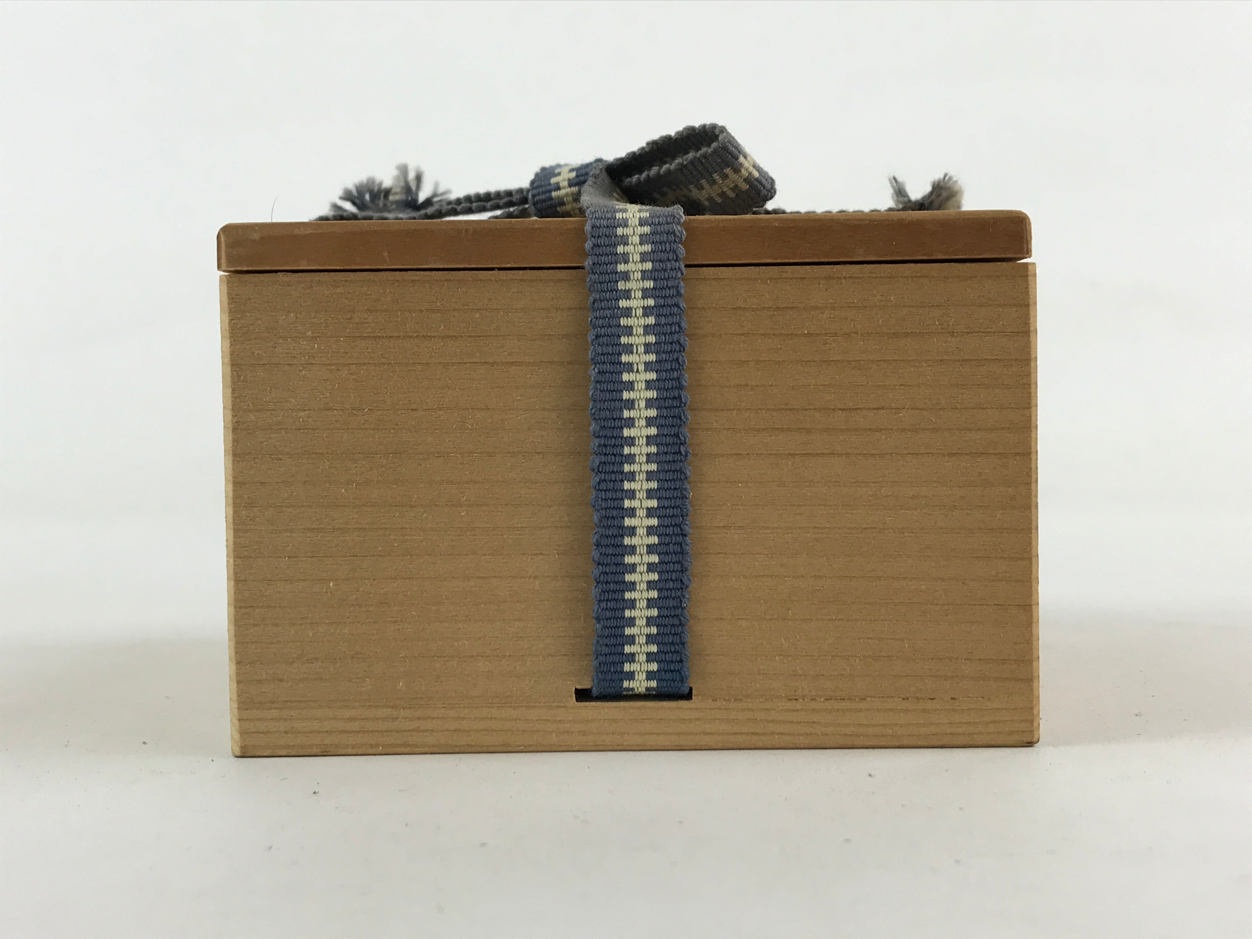 This small lidded square box is made for a sake cup, but is perfect for storing trinkets or use for display or other crafts/projects. It features a blue and white cord used to tie it closed.