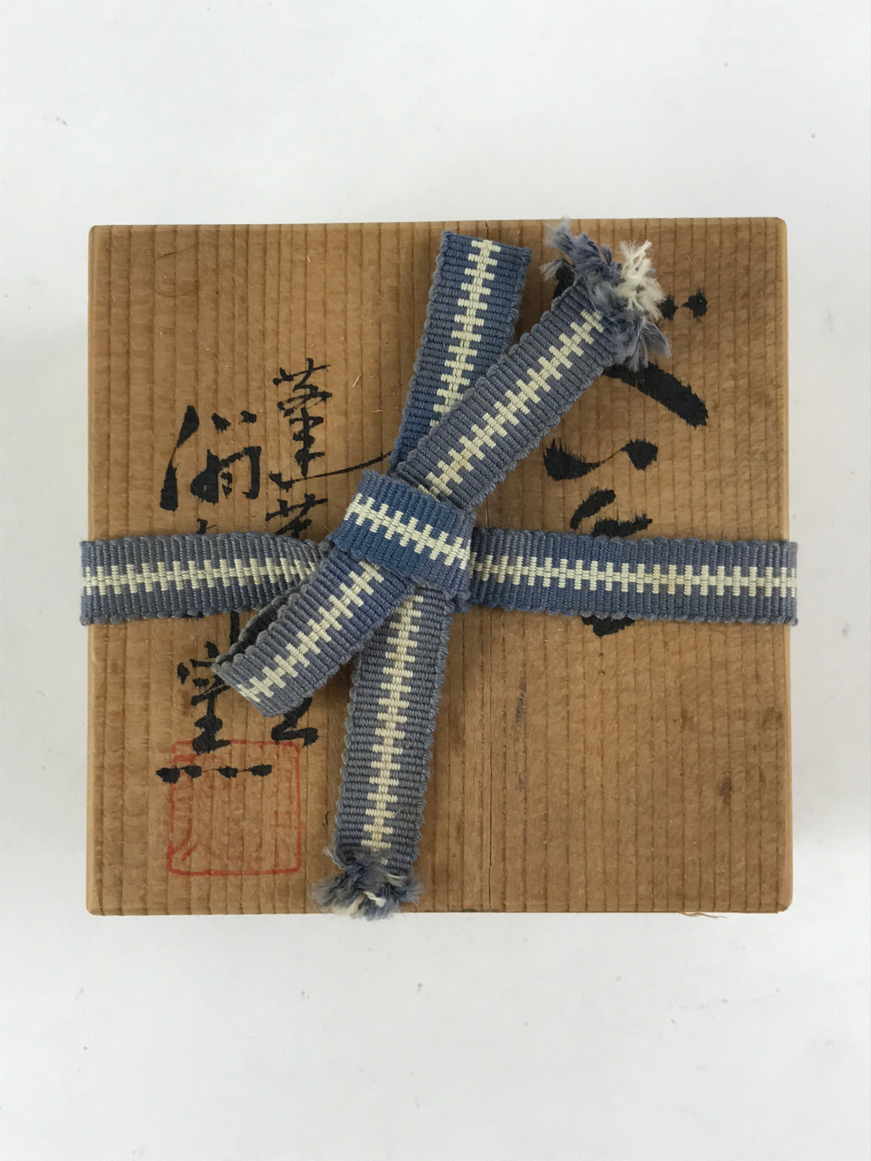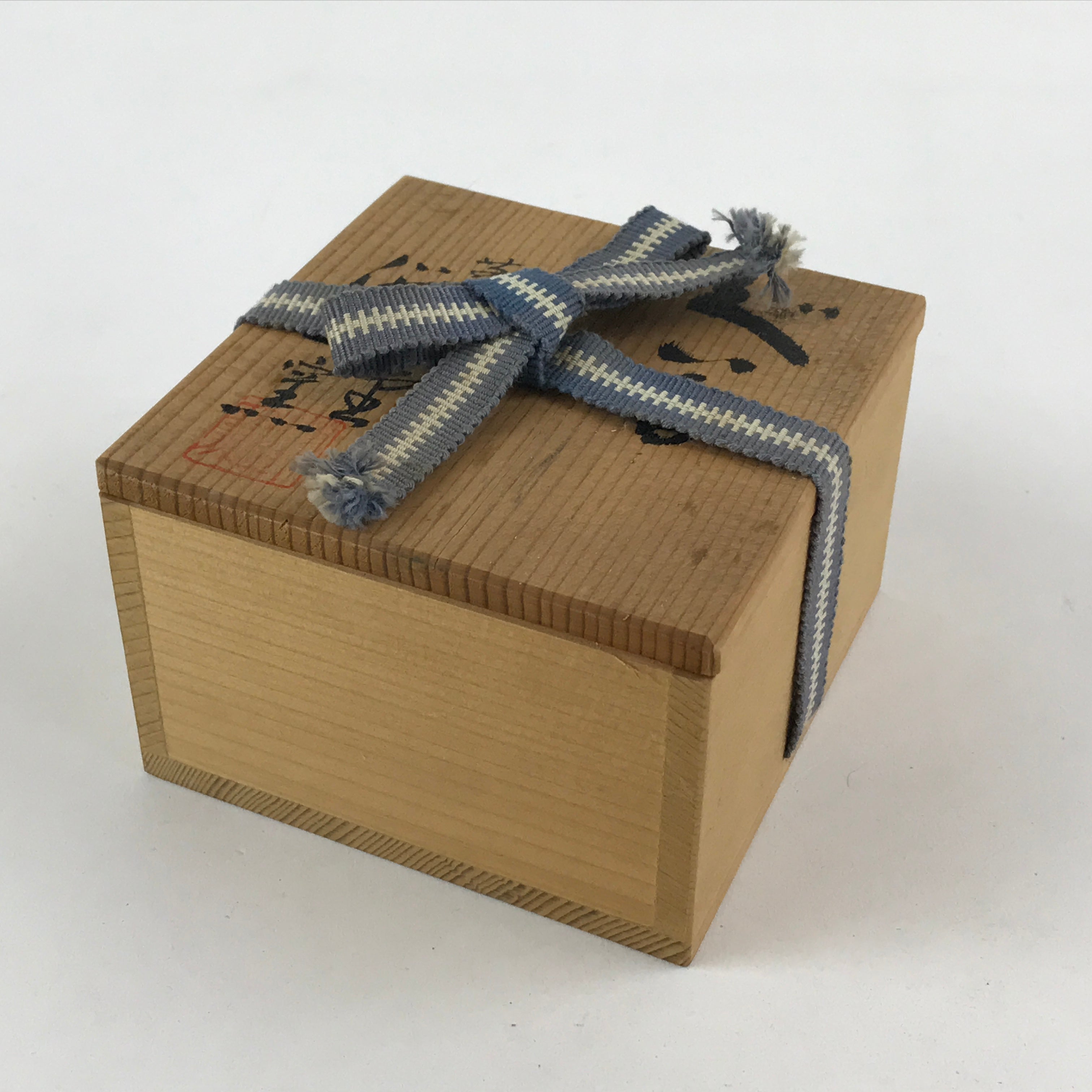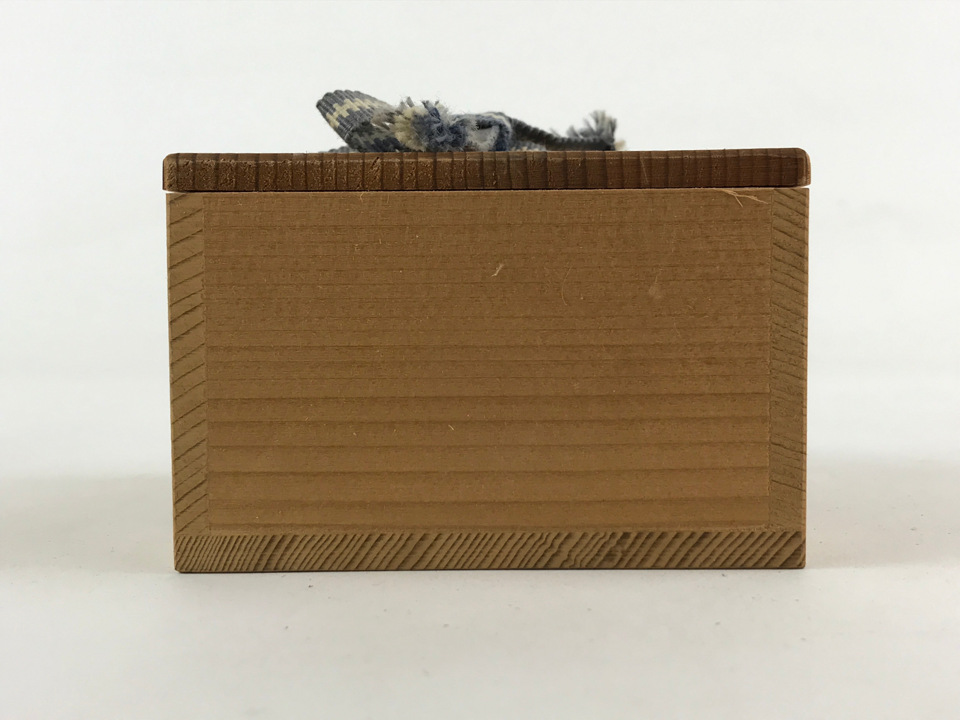 This small lidded square box is made for a sake cup, but is perfect for storing trinkets or use for display or other crafts/projects. It features a blue and white cord used to tie it closed.
