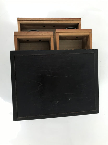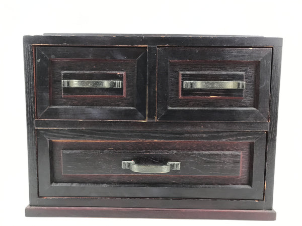 Japanese Wooden Tansu Storage Chest Vtg Haribako Trinket Box 3 Drawer Brown T405