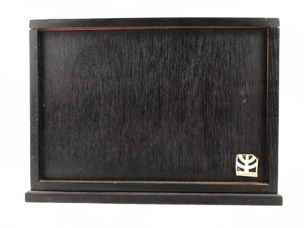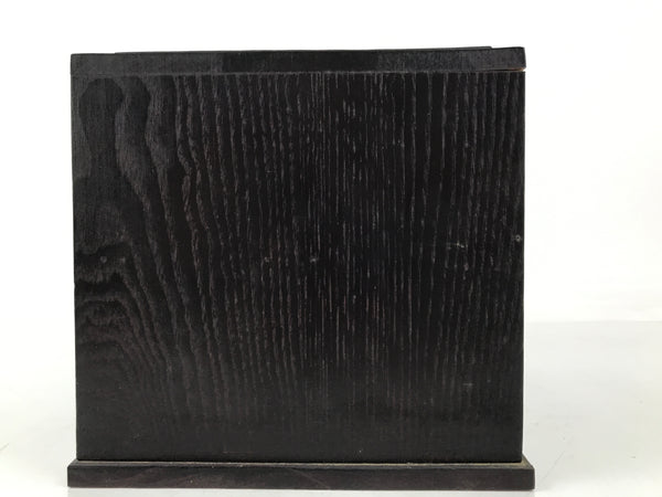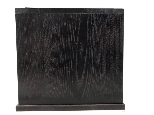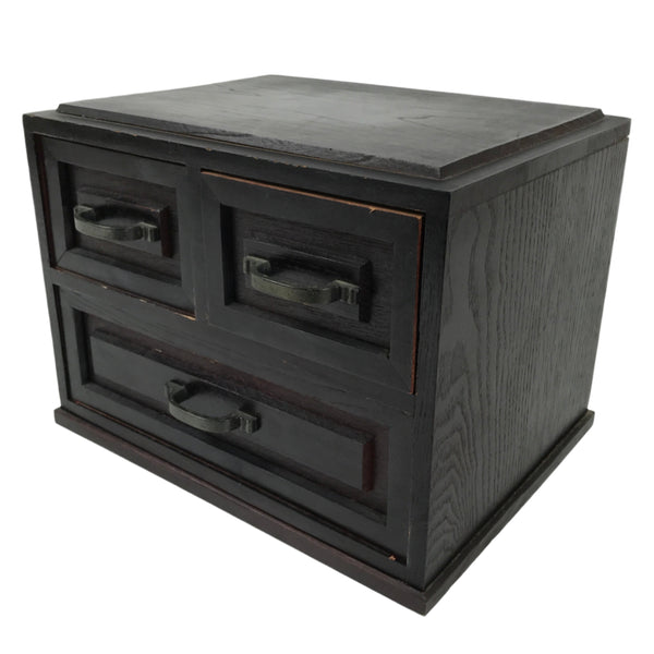 This is a Japanese storage chest, also called tansu. A rich dark brown color, this wooden chest has 3 small drawers with simple metal hardware. It is heavy and overall has a very angular design. This beautiful tansu chest can be used for storing sewing/crafting supplies, jewelry, or other trinkets.