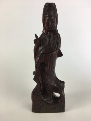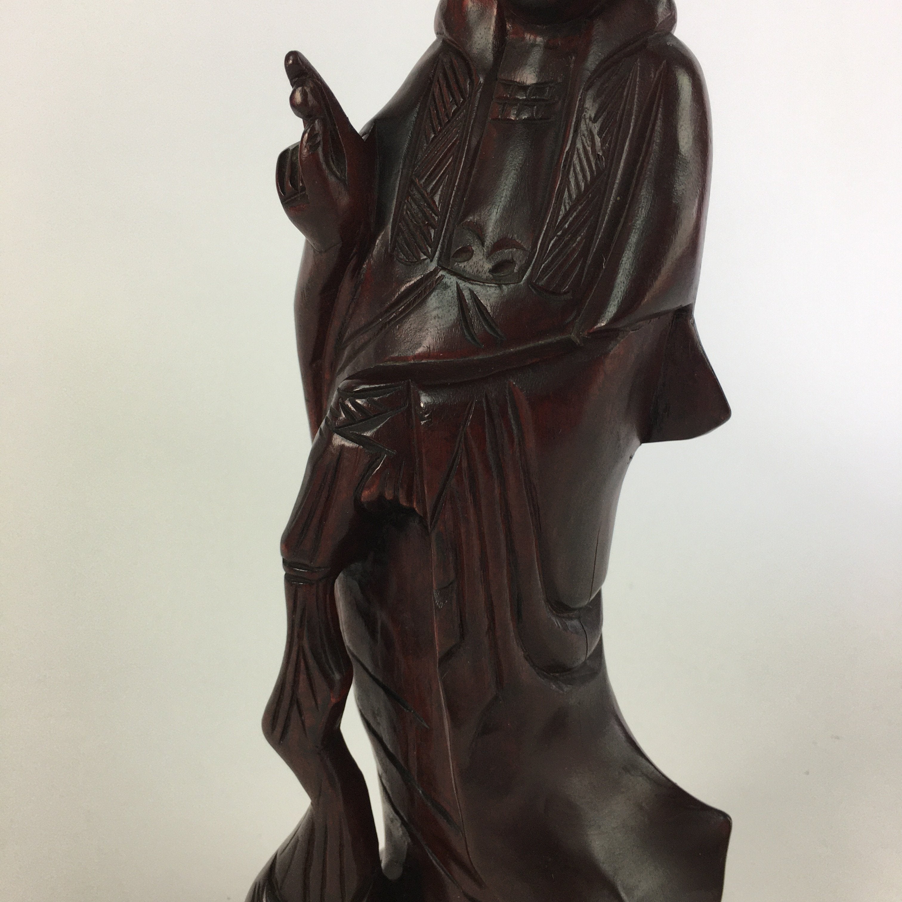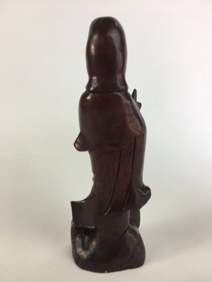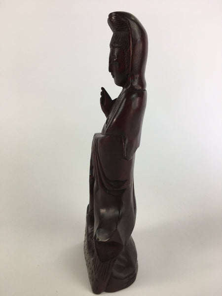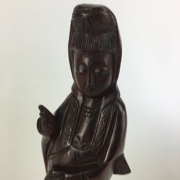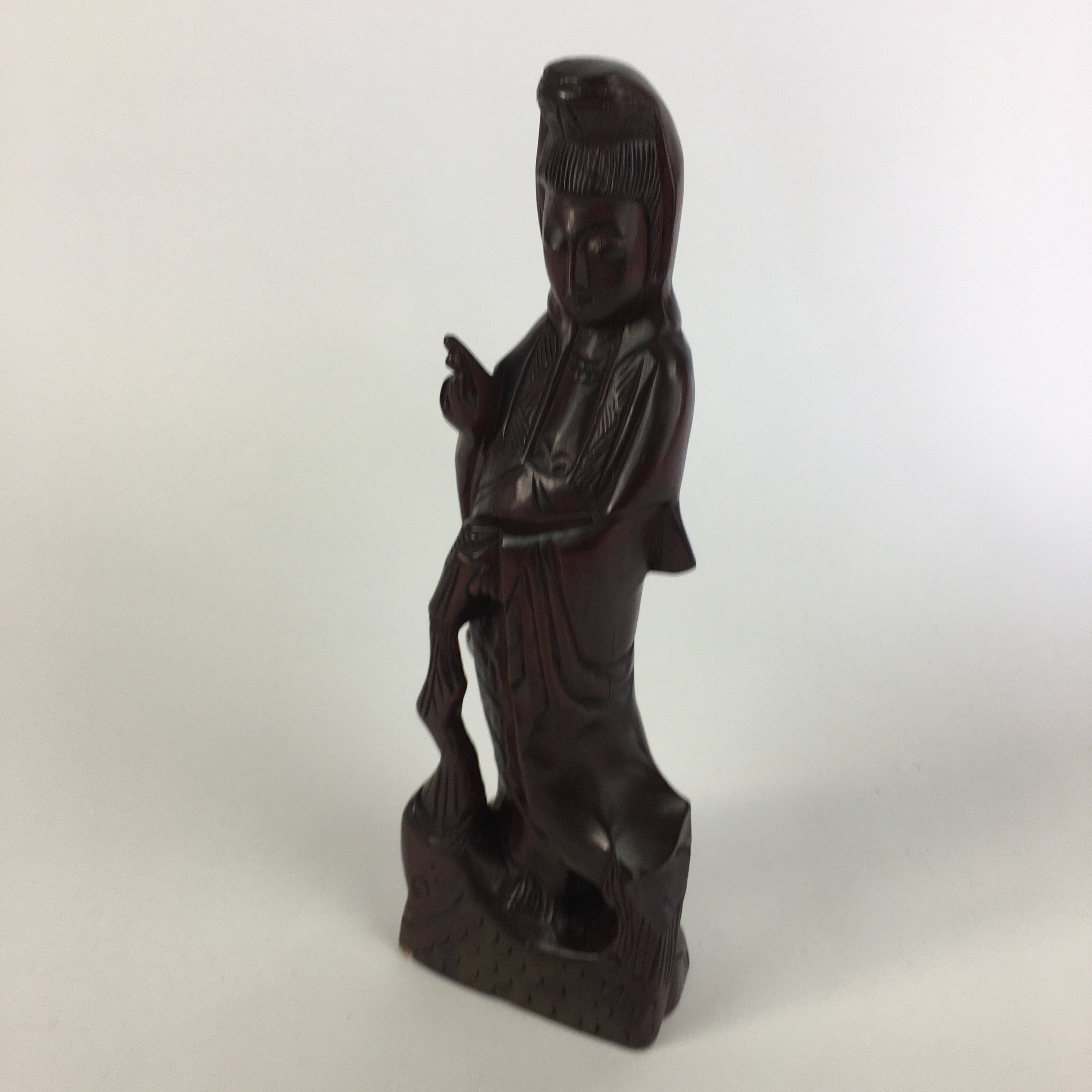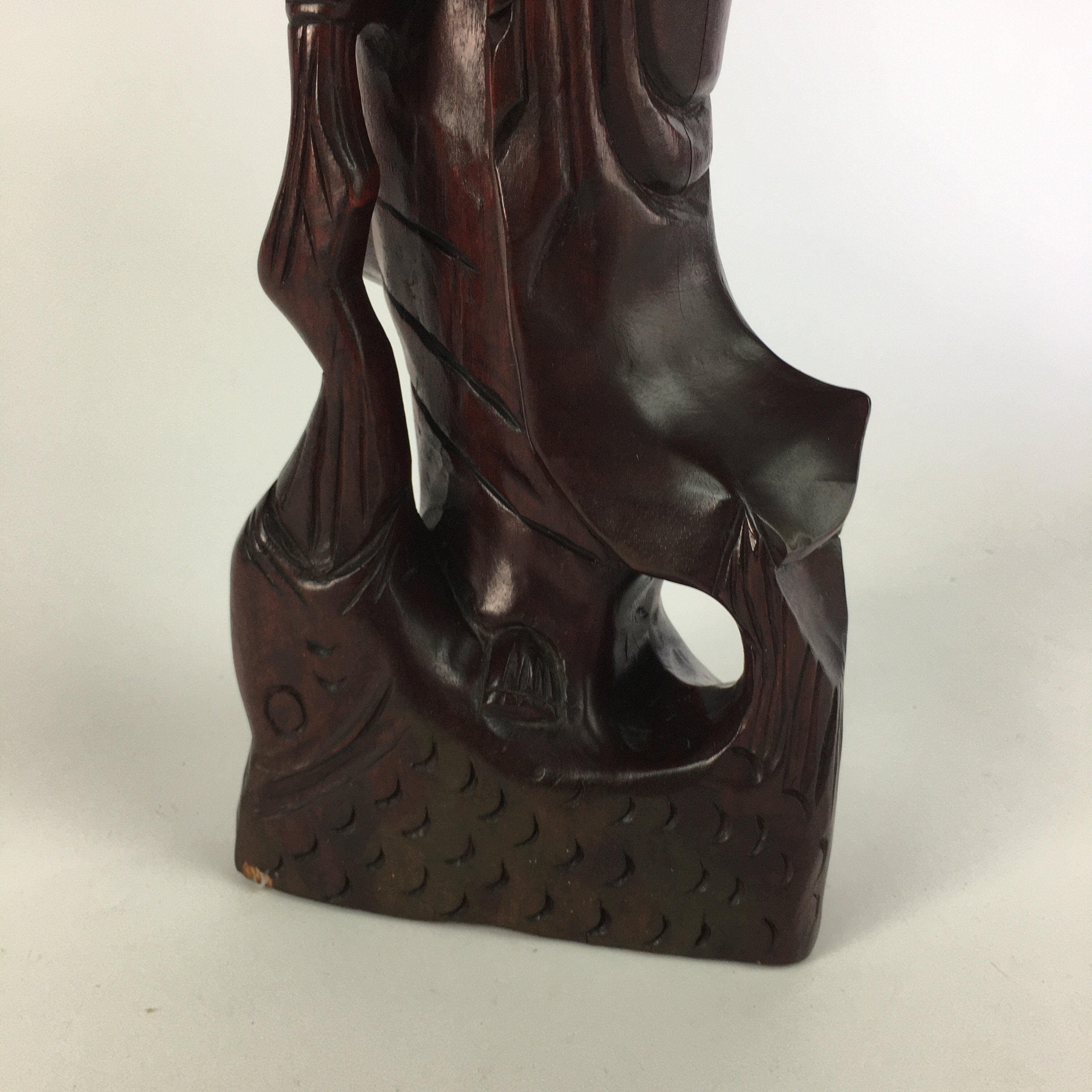 Japanese Wooden Buddhist Statue Vtg Figurine Kannon Bosatsu Fish BD628