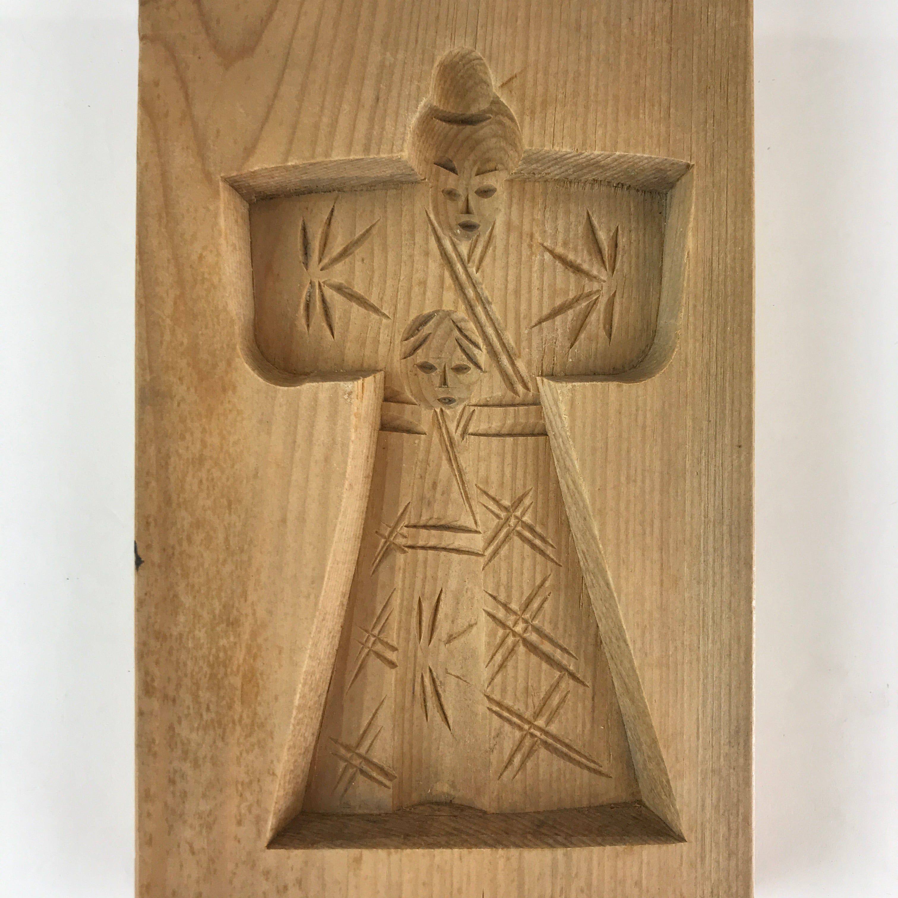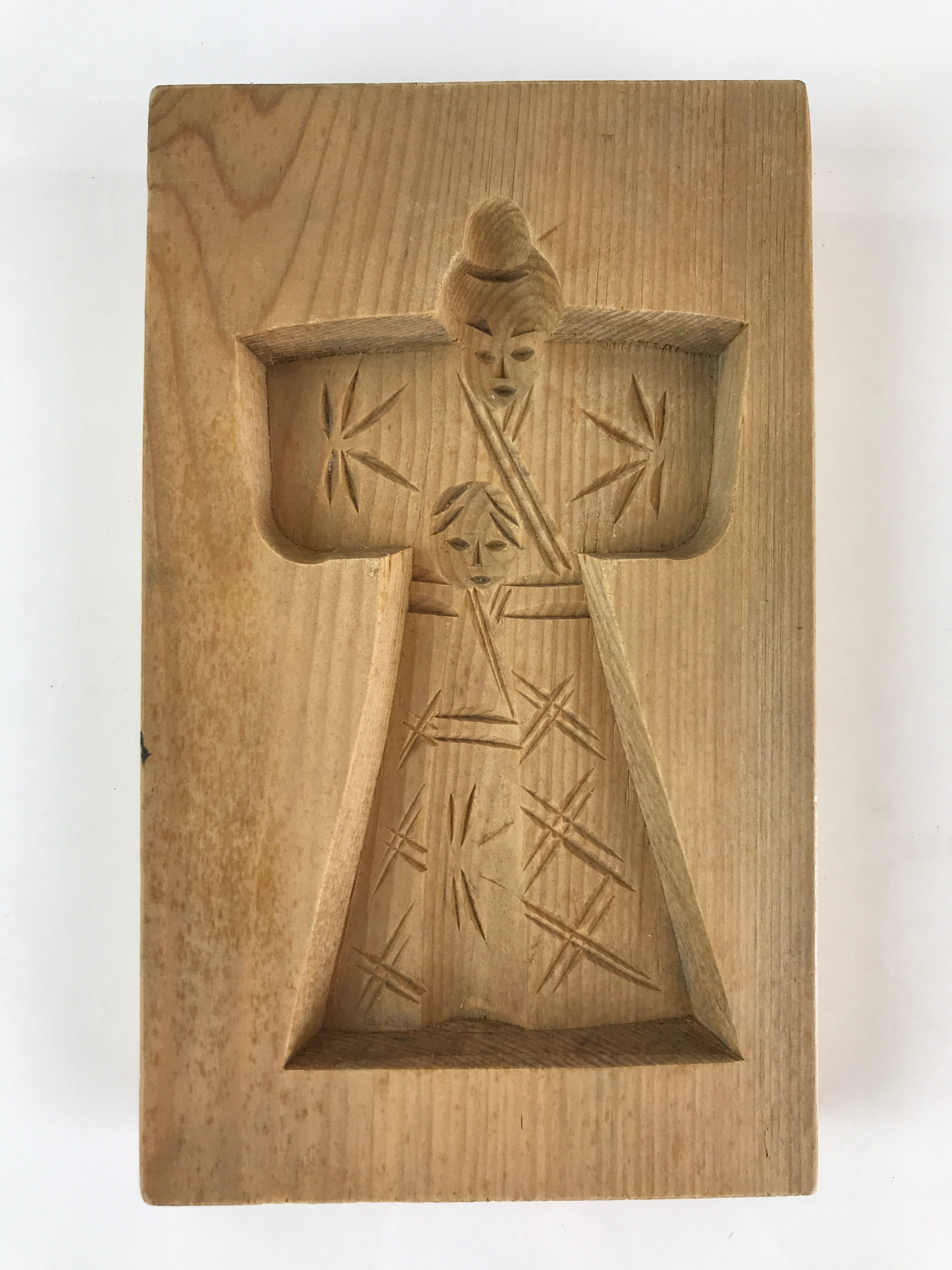 Japanese Wooden Cake Mold Kashigata Sweets Vtg Hina Doll Kg390