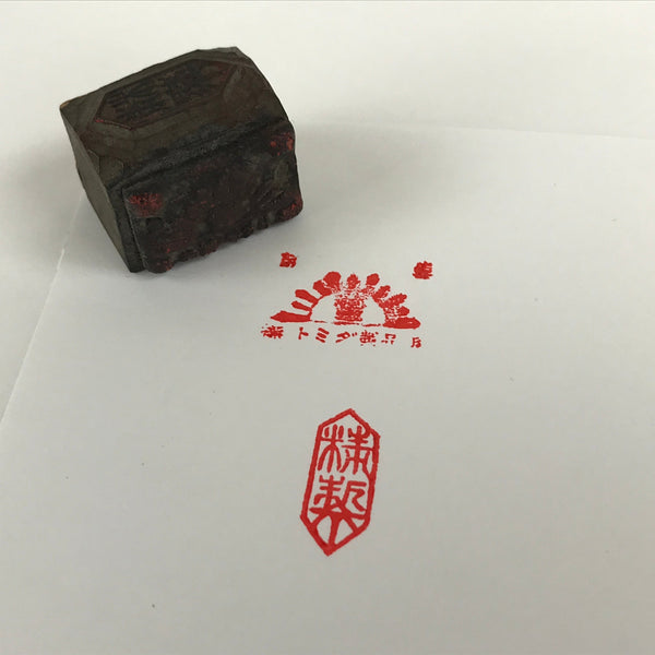 Japanese Wooden Carved Stamp Hanko Inkan Vtg Company Logo Office Supplies HS95