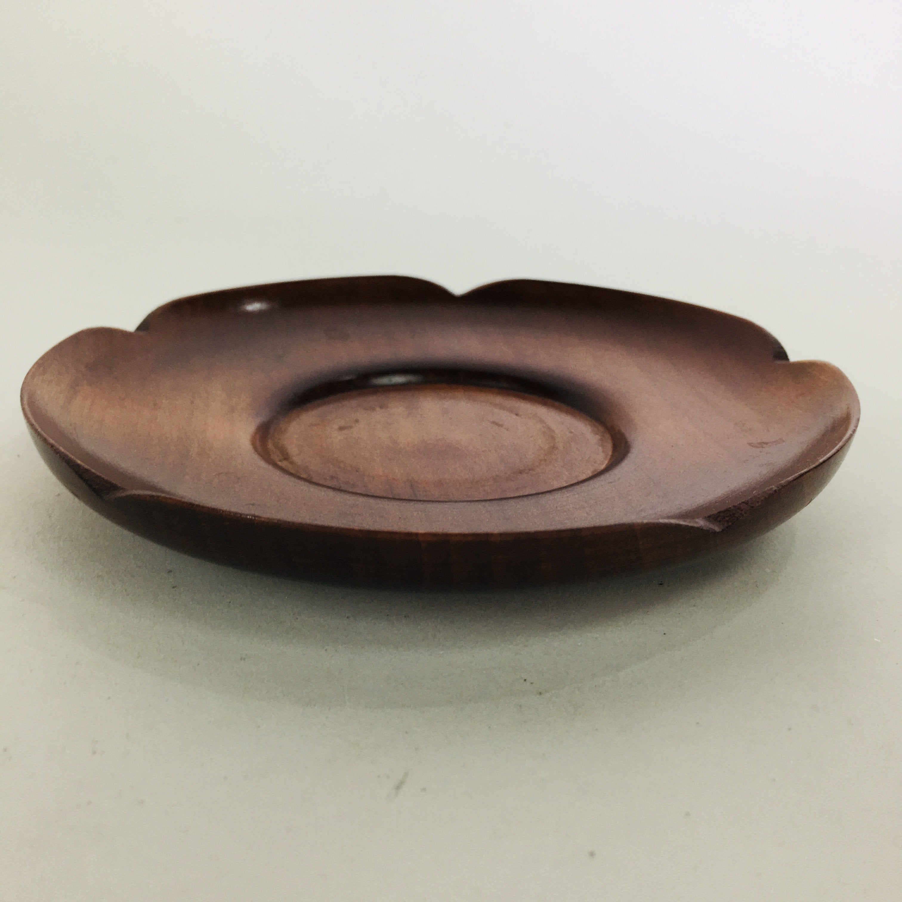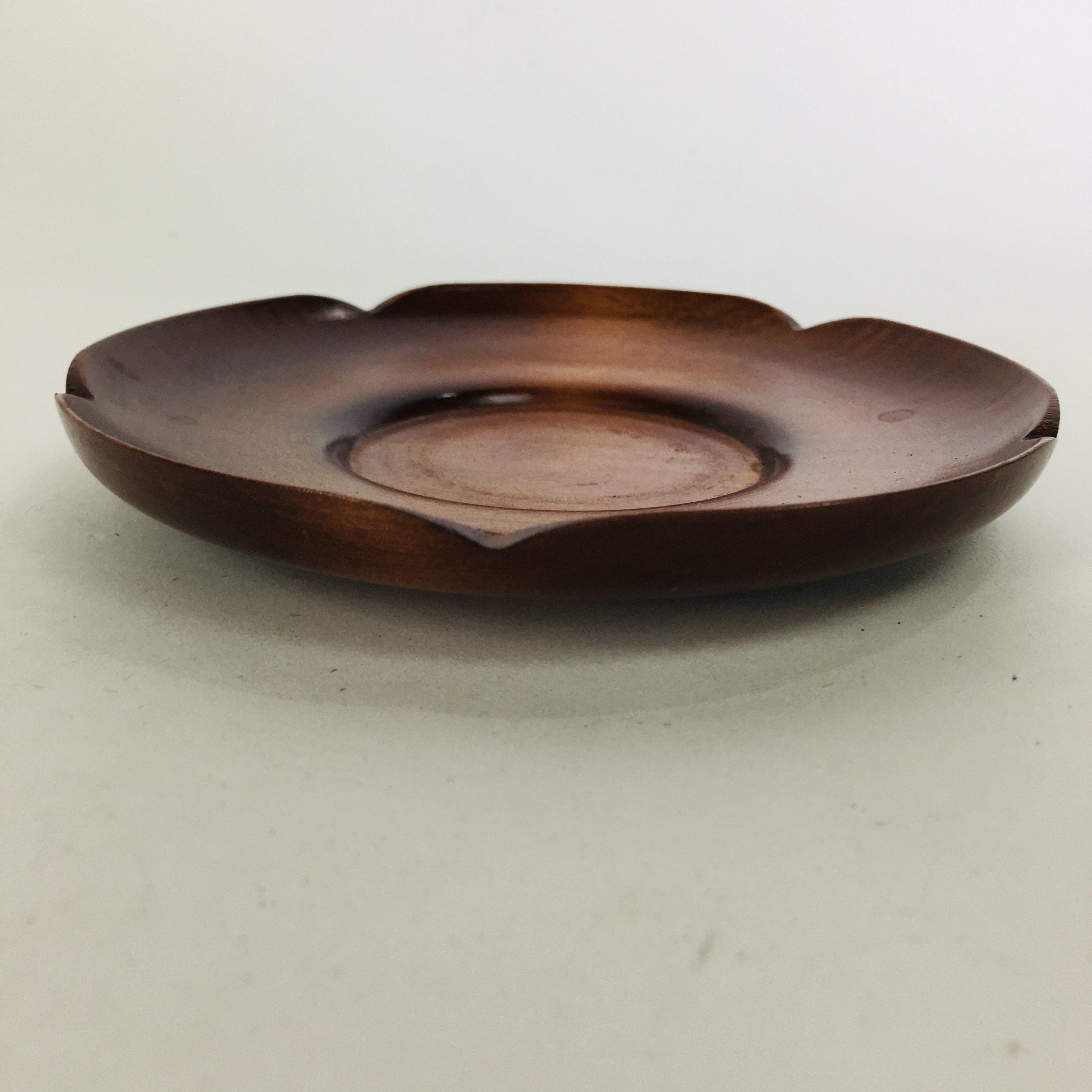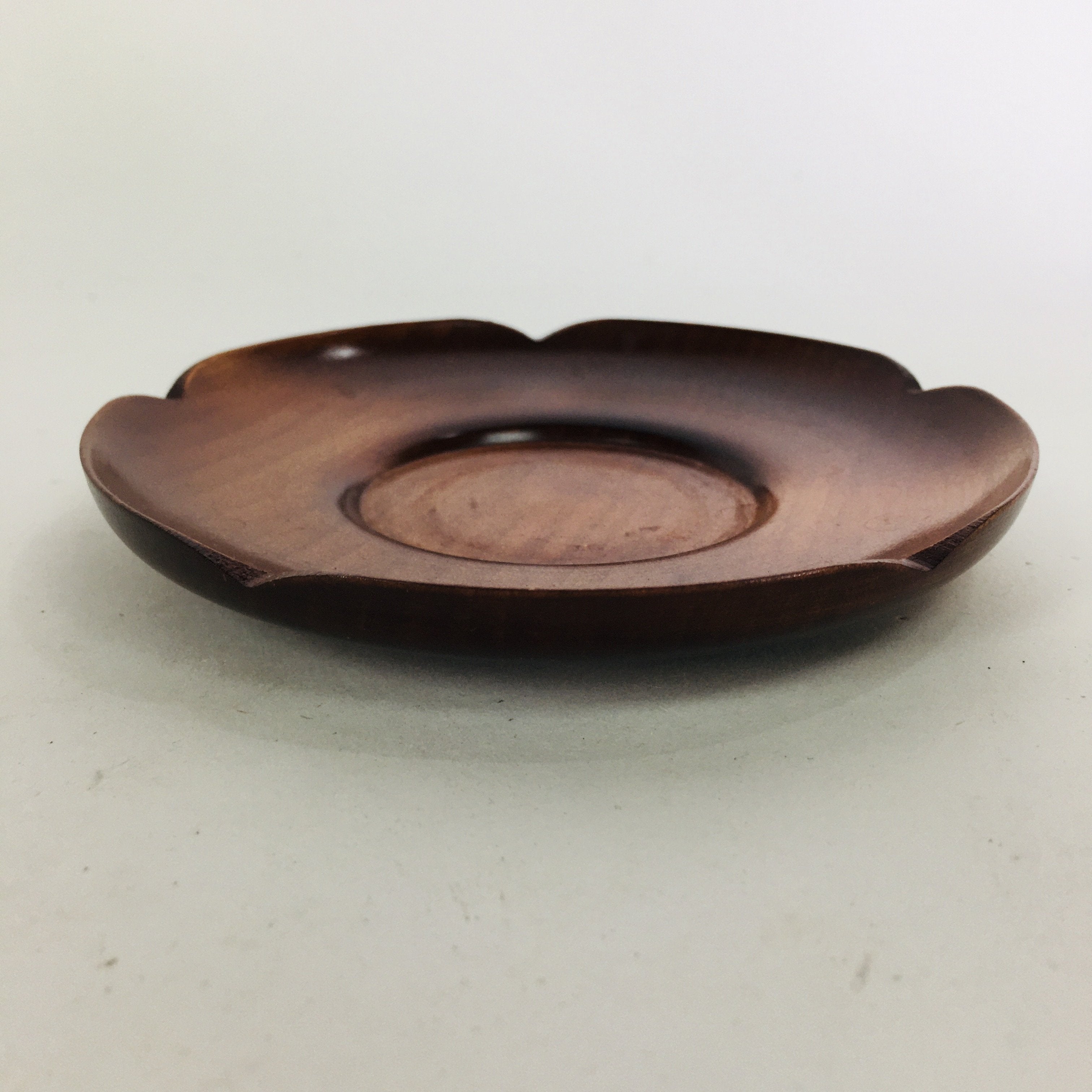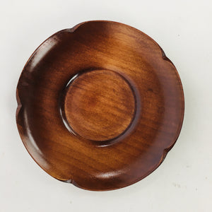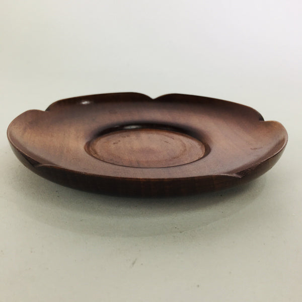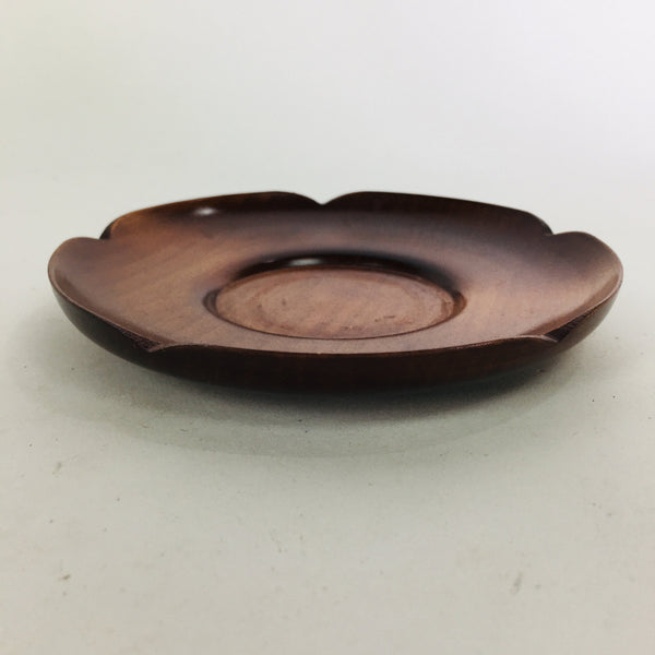 Japanese Wooden Lacquerware Drink Saucer Vtg Coaster Flower Shape Brown QT120
