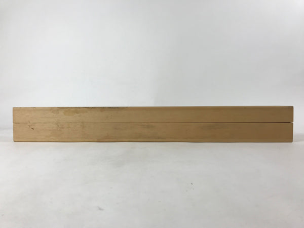 Hand-crafted and in a light color, this sturdy and slender wooden box is made to store a hanging scroll, or kakejiku. Inside are two wooden brackets used for securing a scroll in place. There are some hand-written inscriptions on the outside of the lid.
