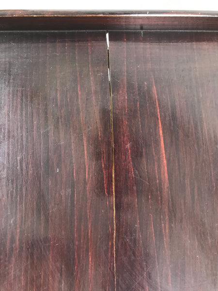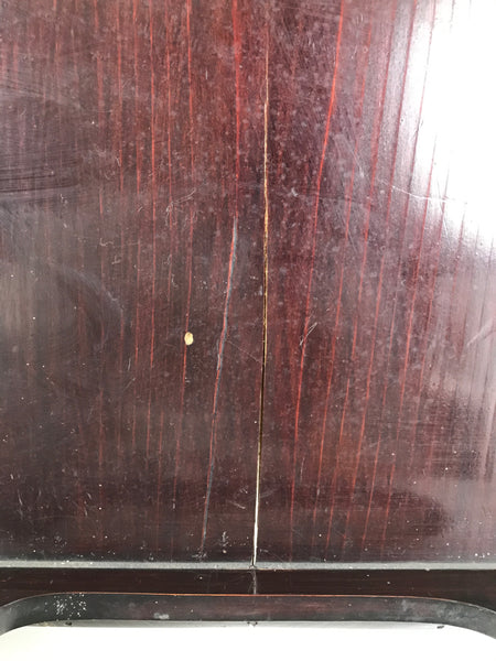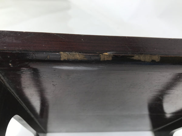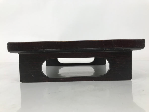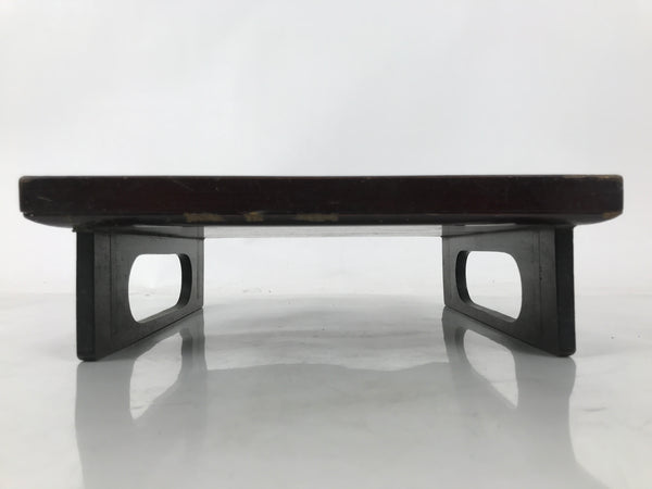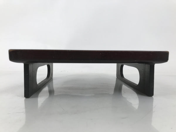 This is an antique Japanese lacquered wooden table or Ozen. This low square table has two panel legs. This item can be used as a small table or as a serving tray.