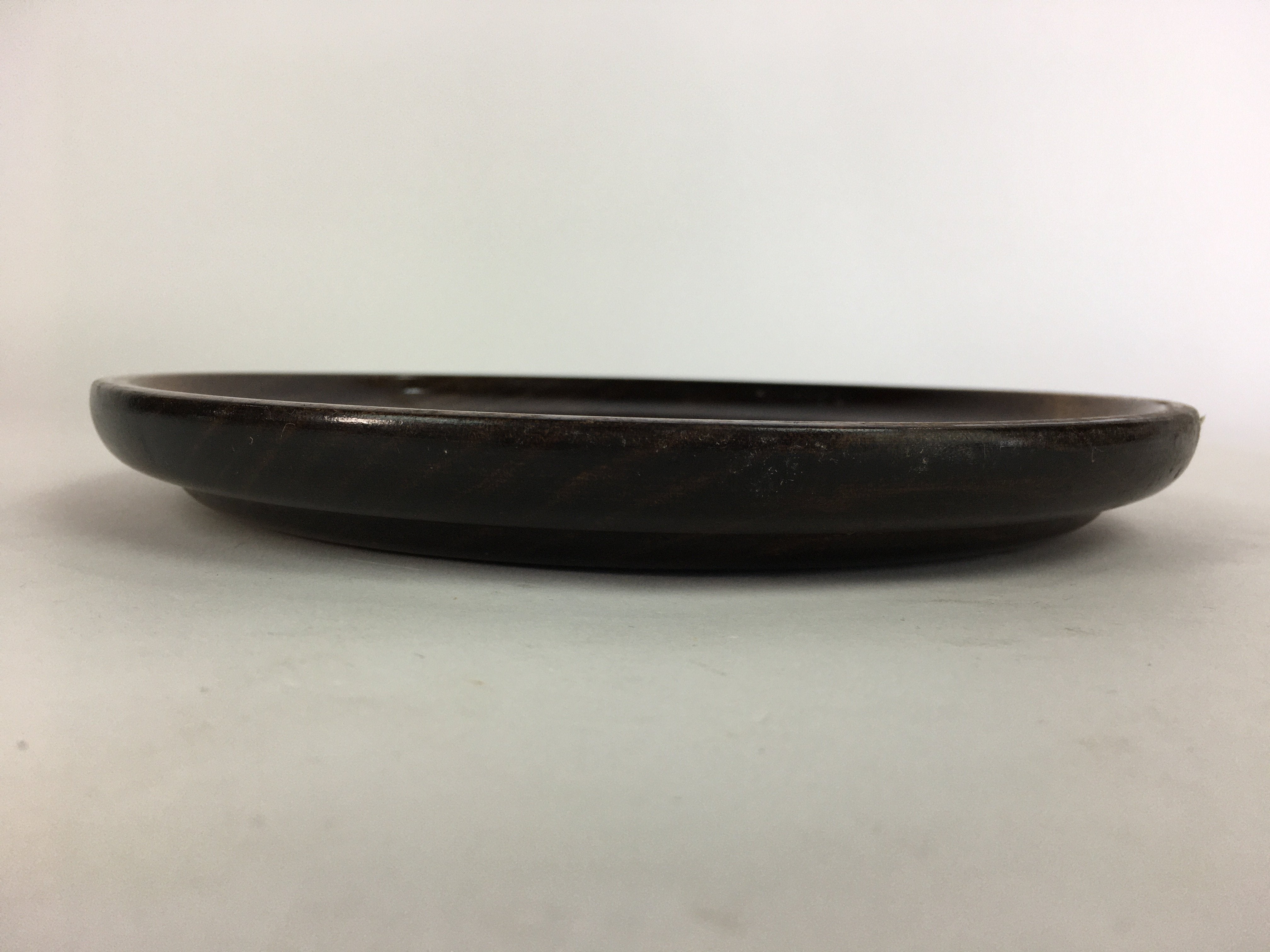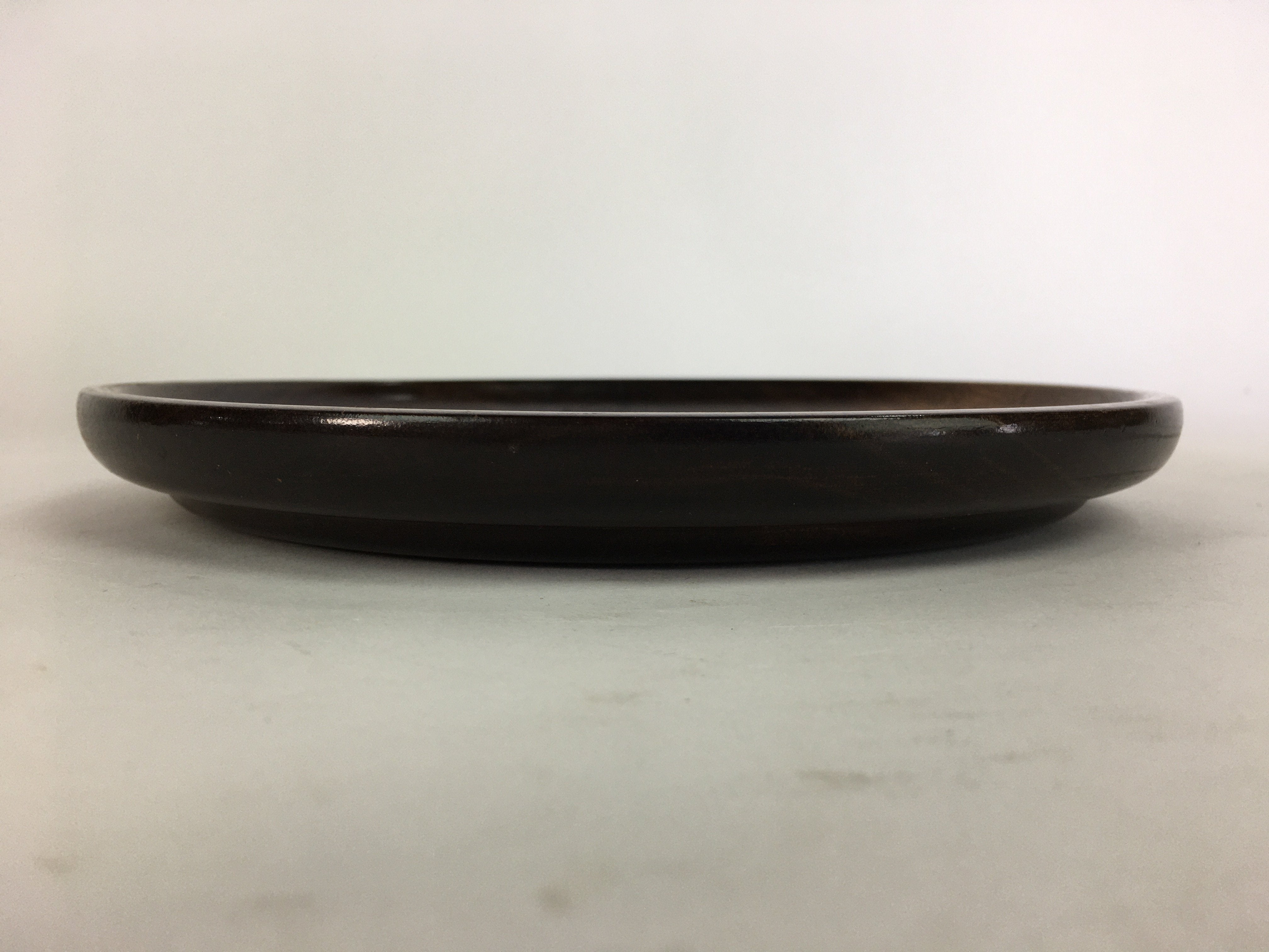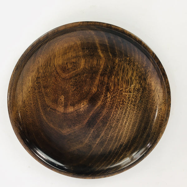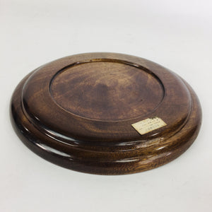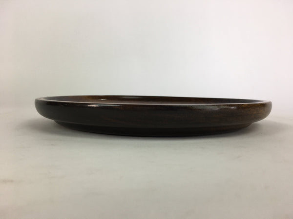 Japanese Wooden Lacquered Tray Obon Vtg Nurimono Brown Round Shape UR507
