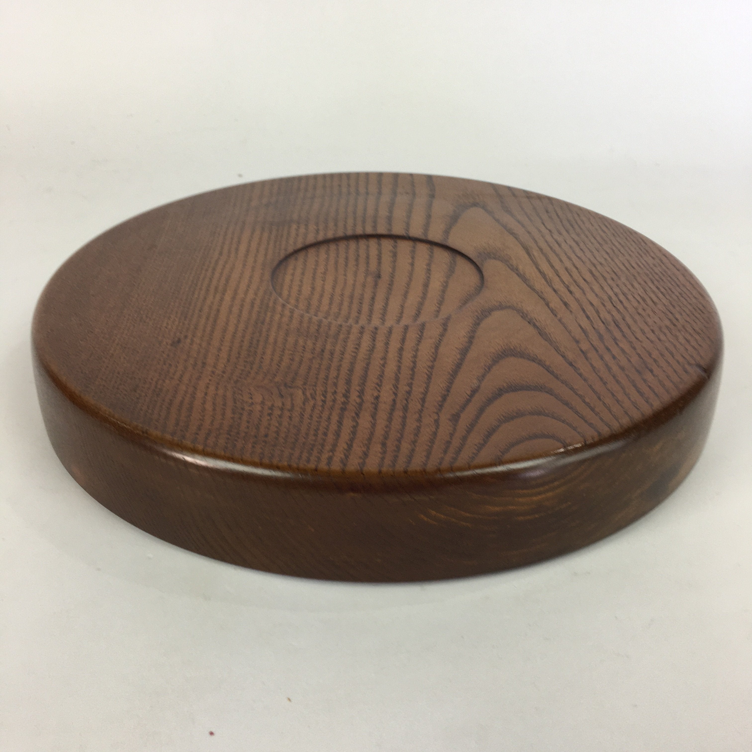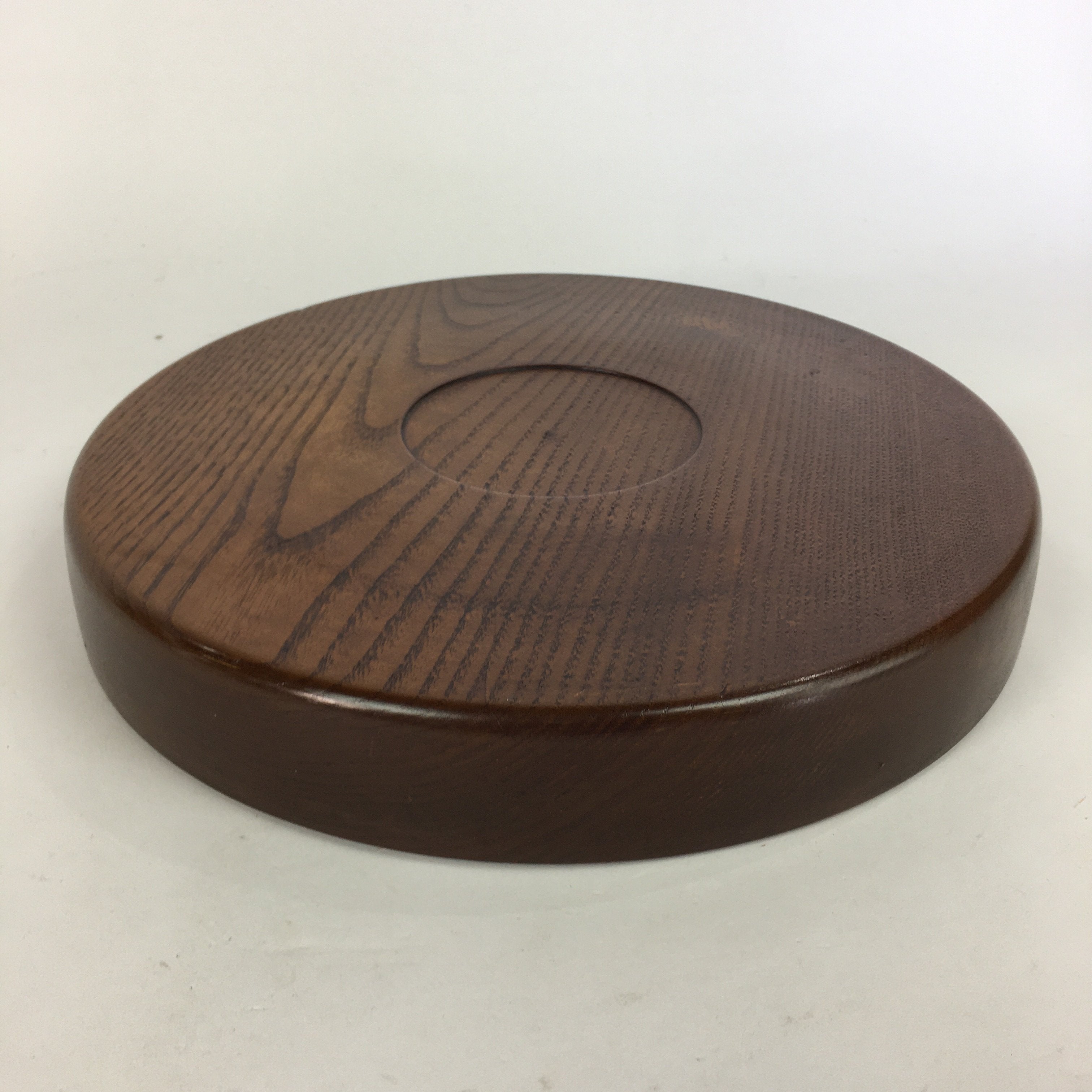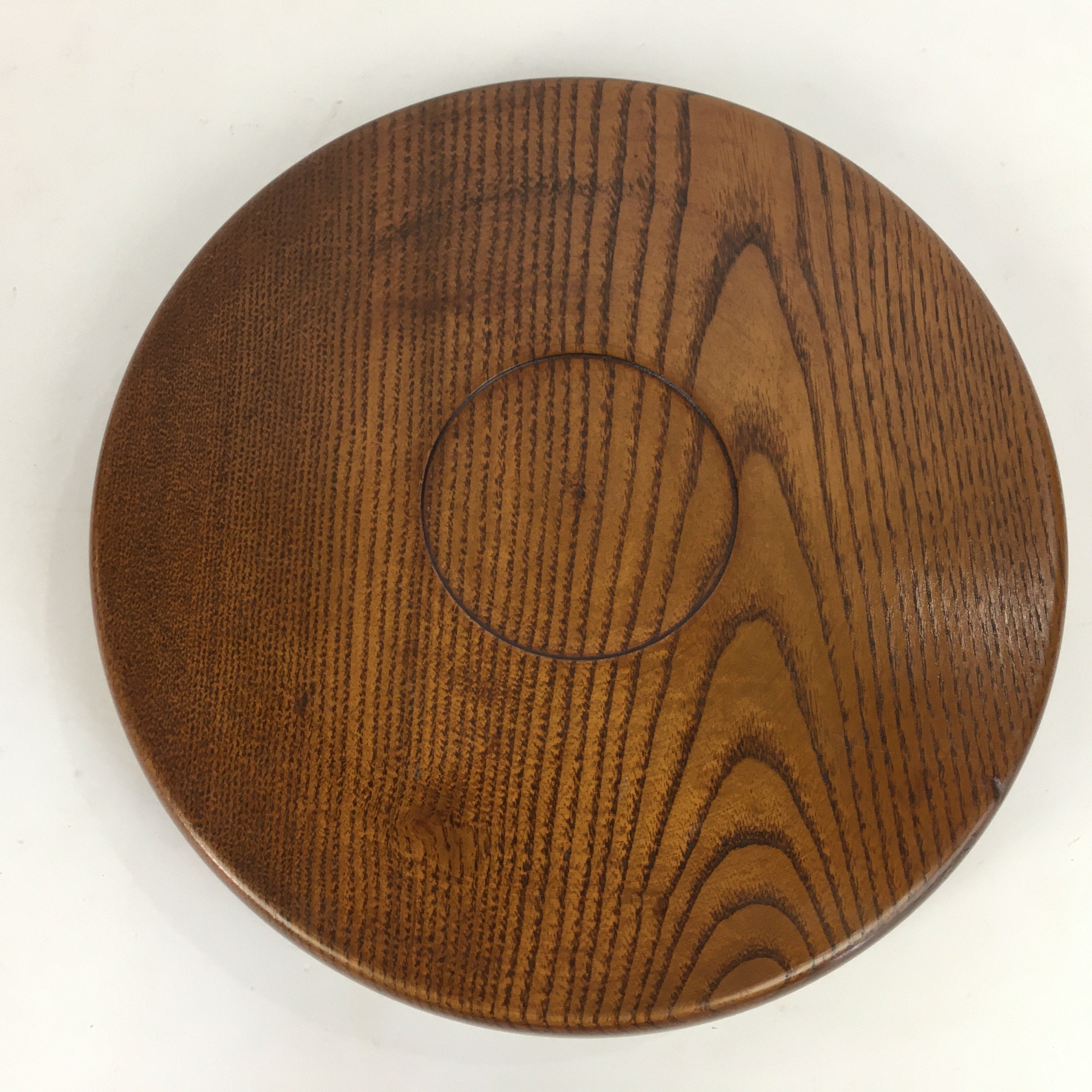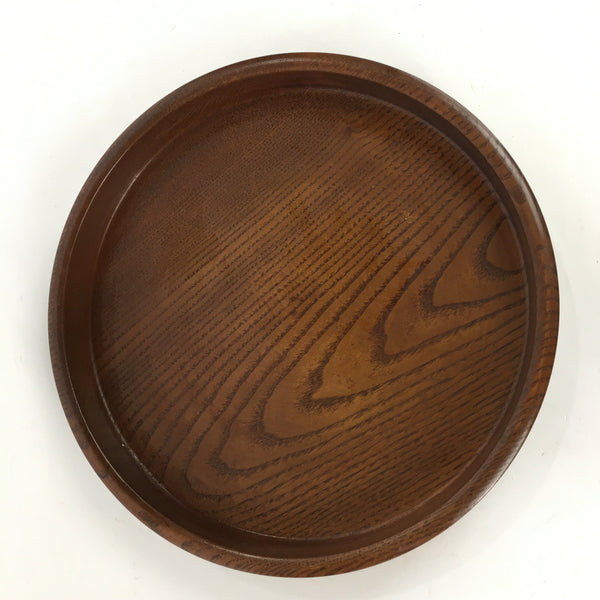 Japanese Wooden Lacquered Tray Obon Vtg Nurimono Brown Round Shape UR521